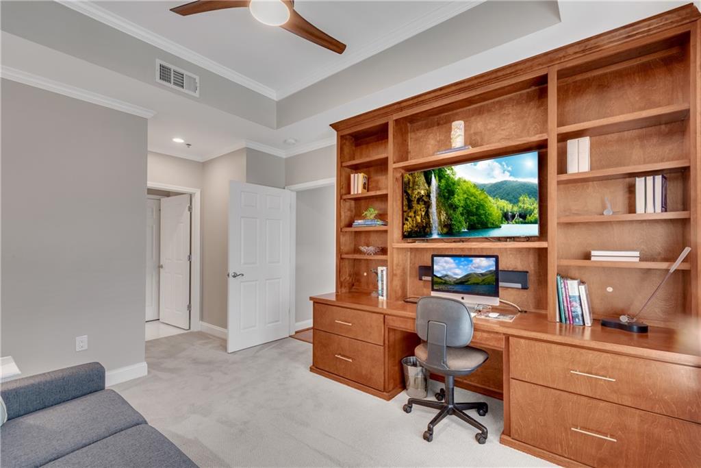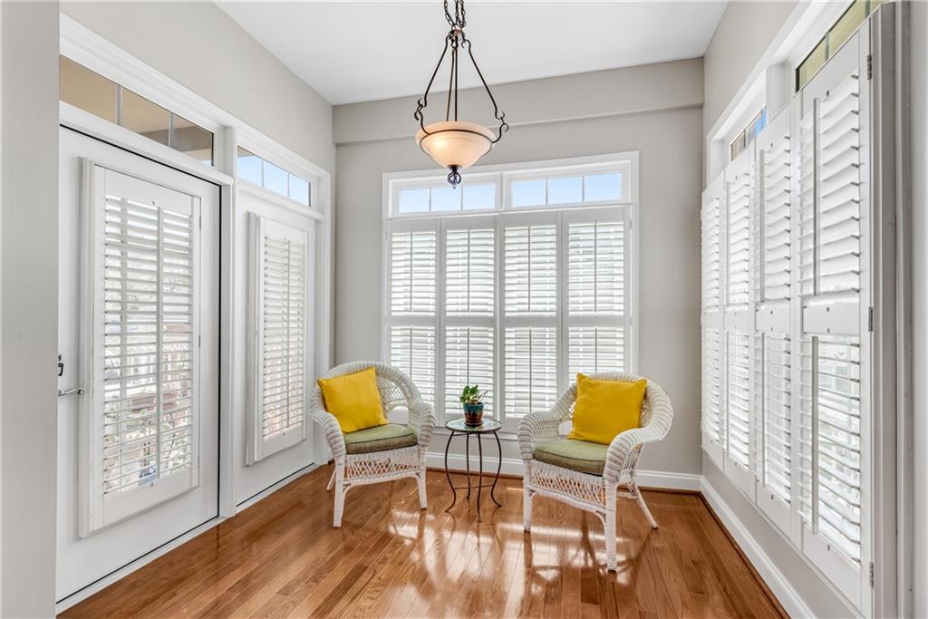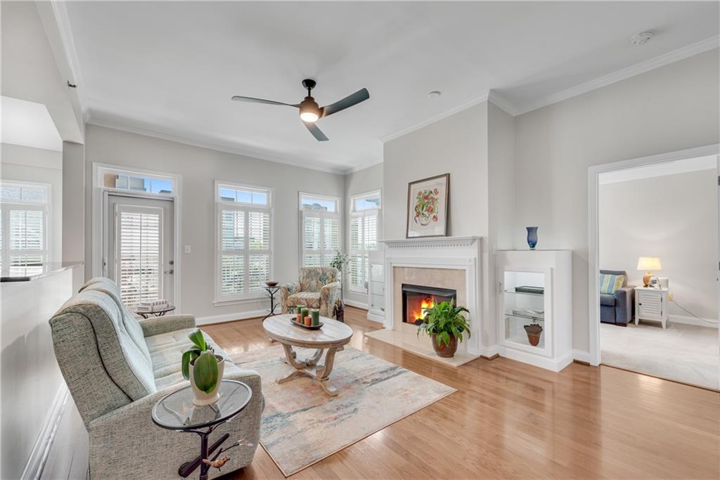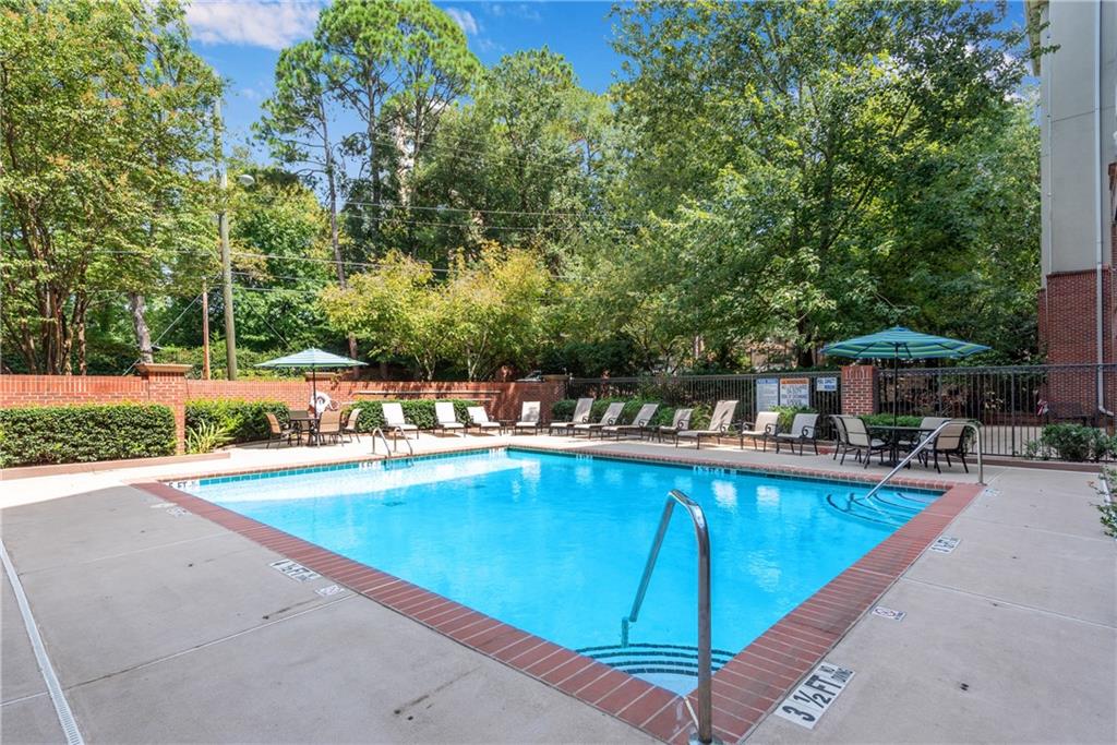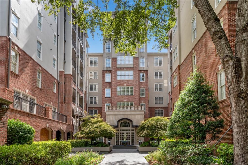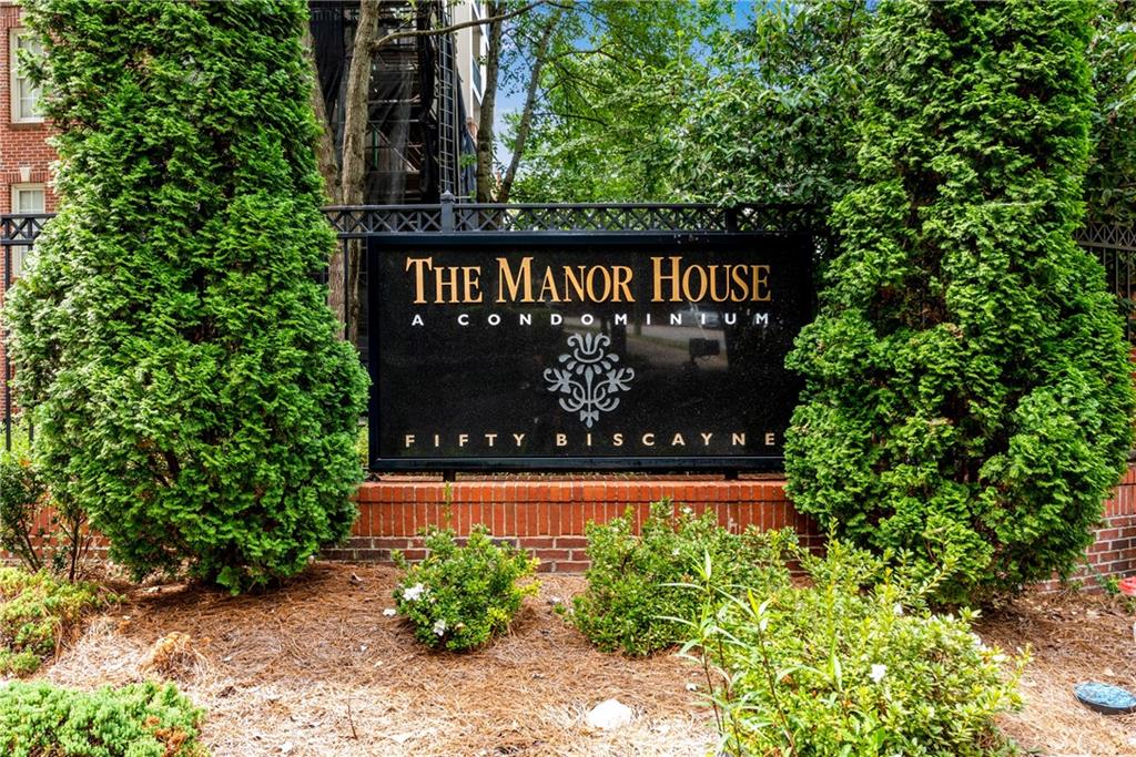 Immaculate Luxury condominium perched beautifully atop the sought after Manor House, nestled on a quiet tree lined street in the heart of Buckhead. You will love the open floorpan. The kitchen is the heart of the home and overlooks the fireside family room, dining room, a wall of windows with a cozy sunroom. Two outdoor areas, one for lounging and the other has a custom tool closet/workshop for convenience. The primary bedroom has french doors that open to the balcony. Large secondary bedroom/library has gorgeous built in bookshelves. There is also a laundry closet and powder room. The home has been freshly painted in a neutral pallete, new Quinn double paned smart guard Low E/Argon insulated windows, UV Air Purification, newer carpet in bedrooms and gleaming hardwoods throughout the home. No columns in this home. Two deeded parking spaces and climate controlled storage unit. The Manor House has modern high end amenities, 24 hour concierge, gated and covered parking, pool, library, active HOA, gym and pool. Conveniently located near shopping, restuarants, Piedmont Hospital, Bobby Jones Golf Course, Bitsy Grant Tennis Center, Beltline and public transportation. Welcome Home!