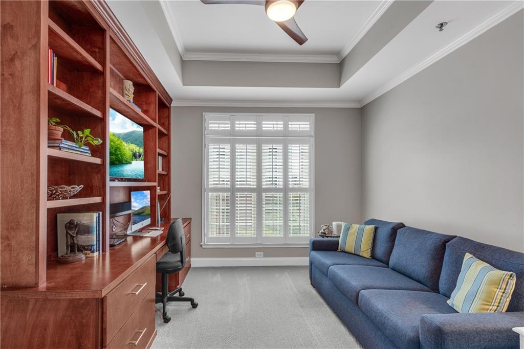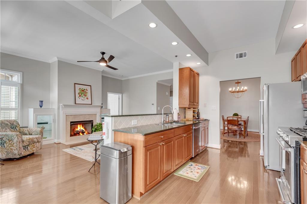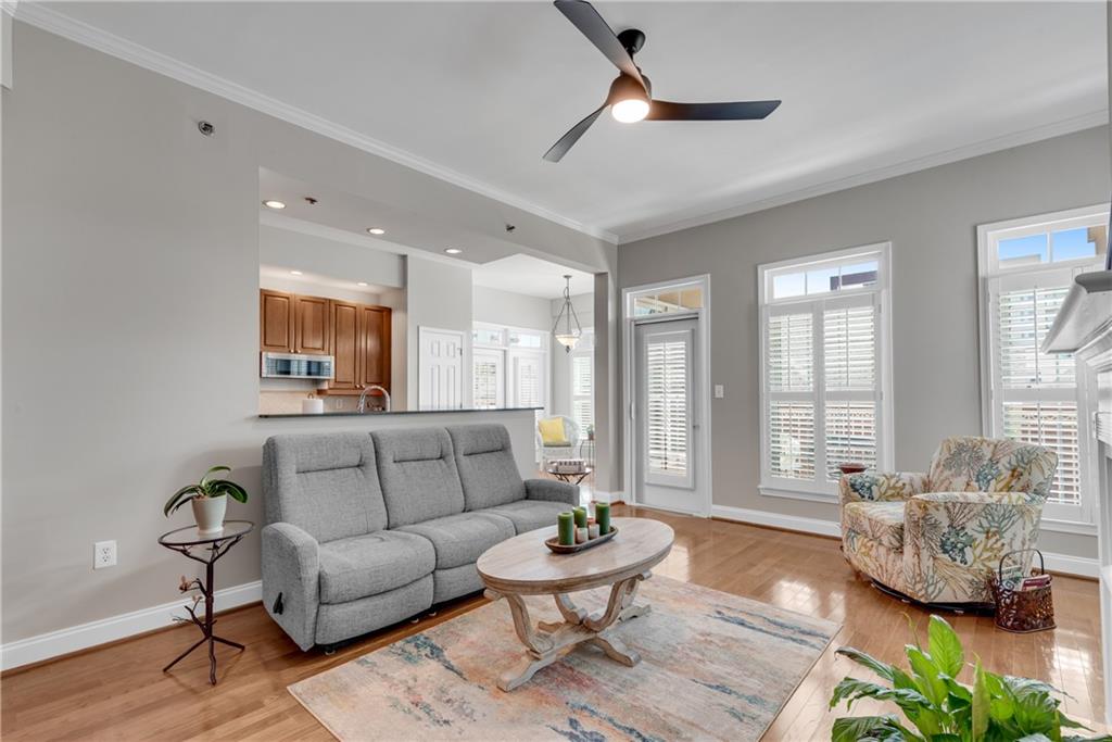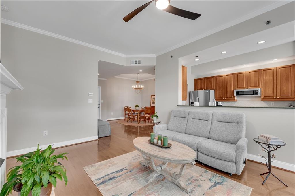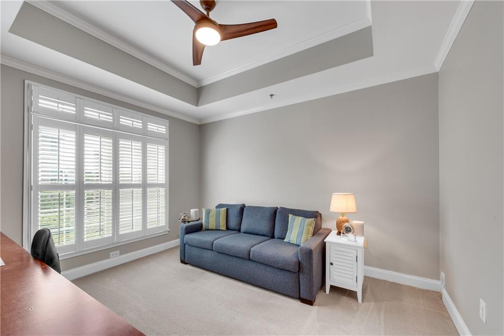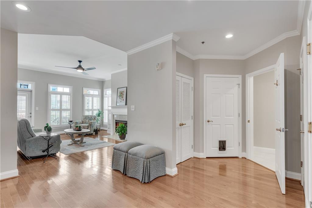 Immaculate Luxury condominium perched beautifully atop the sought after Manor House, nestled on a quiet tree lined street in the heart of Buckhead. You will love the open floorpan. The kitchen is the heart of the home and overlooks the fireside family room, dining room, a wall of windows with a cozy sunroom. Two outdoor areas, one for lounging and the other has a custom tool closet/workshop for convenience. The primary bedroom has french doors that open to the balcony. Large secondary bedroom/library has gorgeous built in bookshelves. There is also a laundry closet and powder room. The home has been freshly painted in a neutral pallete, new Quinn double paned smart guard Low E/Argon insulated windows, UV Air Purification, newer carpet in bedrooms and gleaming hardwoods throughout the home. No columns in this home. Two deeded parking spaces and climate controlled storage unit. The Manor House has modern high end amenities, 24 hour concierge, gated and covered parking, pool, library, active HOA, gym and pool. Conveniently located near shopping, restuarants, Piedmont Hospital, Bobby Jones Golf Course, Bitsy Grant Tennis Center, Beltline and public transportation. Welcome Home!