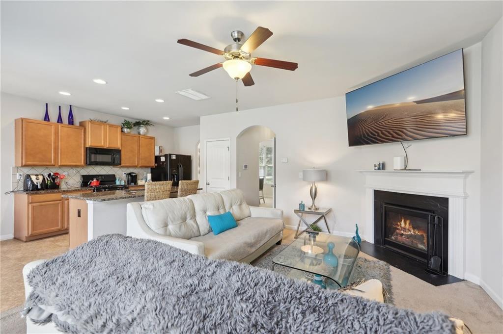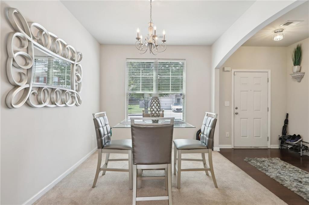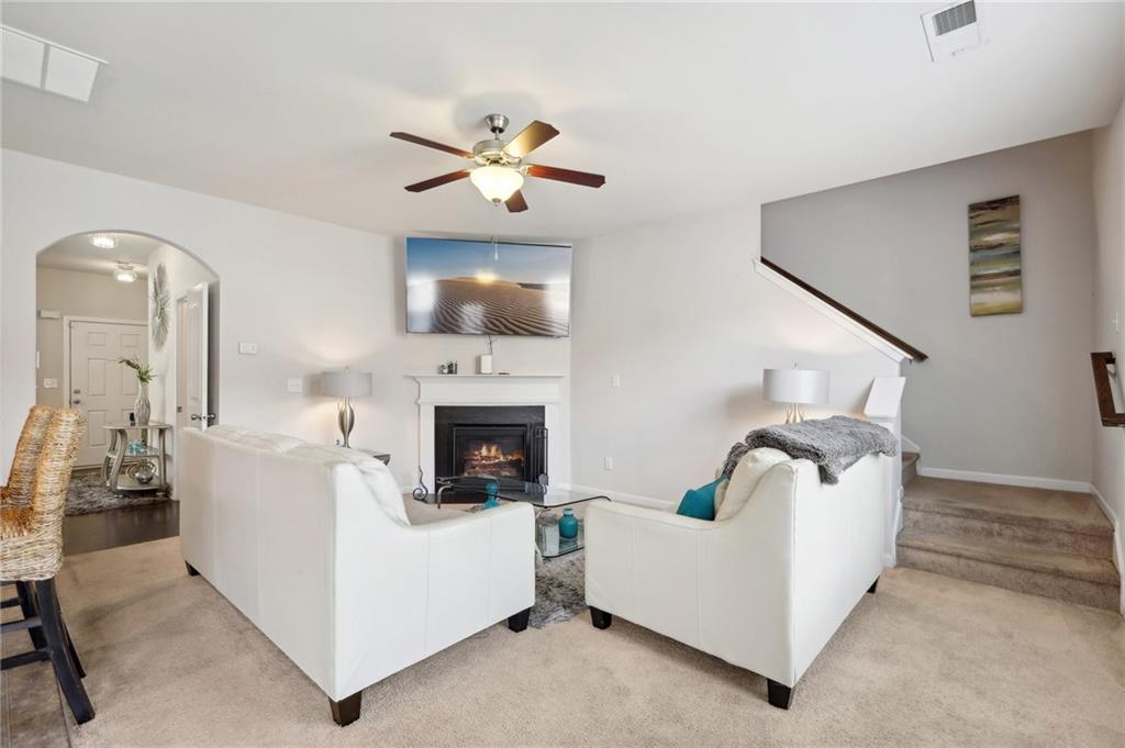 Welcome to this beautiful 3-bedroom, 2.5-bath home featuring timeless elegance and modern comforts. Step into a welcoming foyer that flows into a separate dining room, perfect for entertaining. The main level boasts rich hardwood floors throughout, arched doorways, and an open-concept living area with a cozy fireplace. The kitchen is a chef's dream with its stylish island, breakfast bar, and ample counter space. A convenient half bath completes the main floor. Upstairs, the luxurious primary suite features a stunning trey ceiling, an ensuite bathroom with a separate shower, soaking tub, and a spacious walk-in closet. Two additional well-appointed bedrooms share a hall bath, and the laundry room is conveniently located on this level. Outside, enjoy the fully fenced, spacious backyard with a patio—ideal for outdoor relaxation or entertaining. With a 1-car garage and thoughtful design throughout, this home offers the perfect blend of style and function. Don't miss out on this gem!