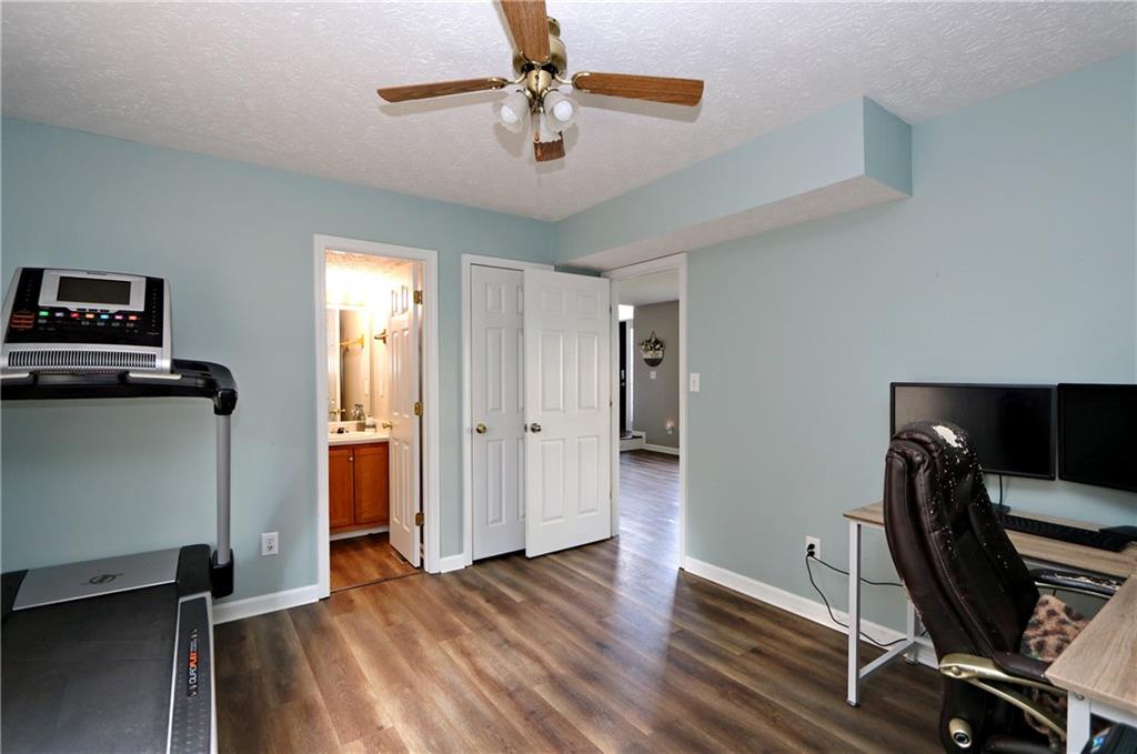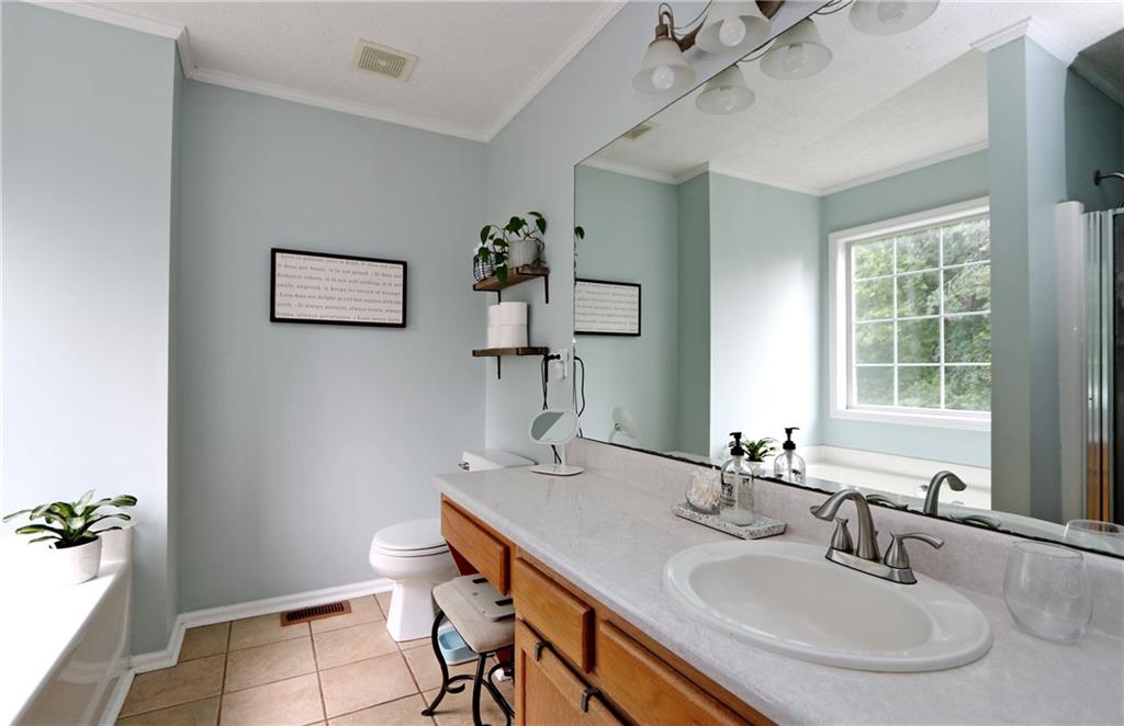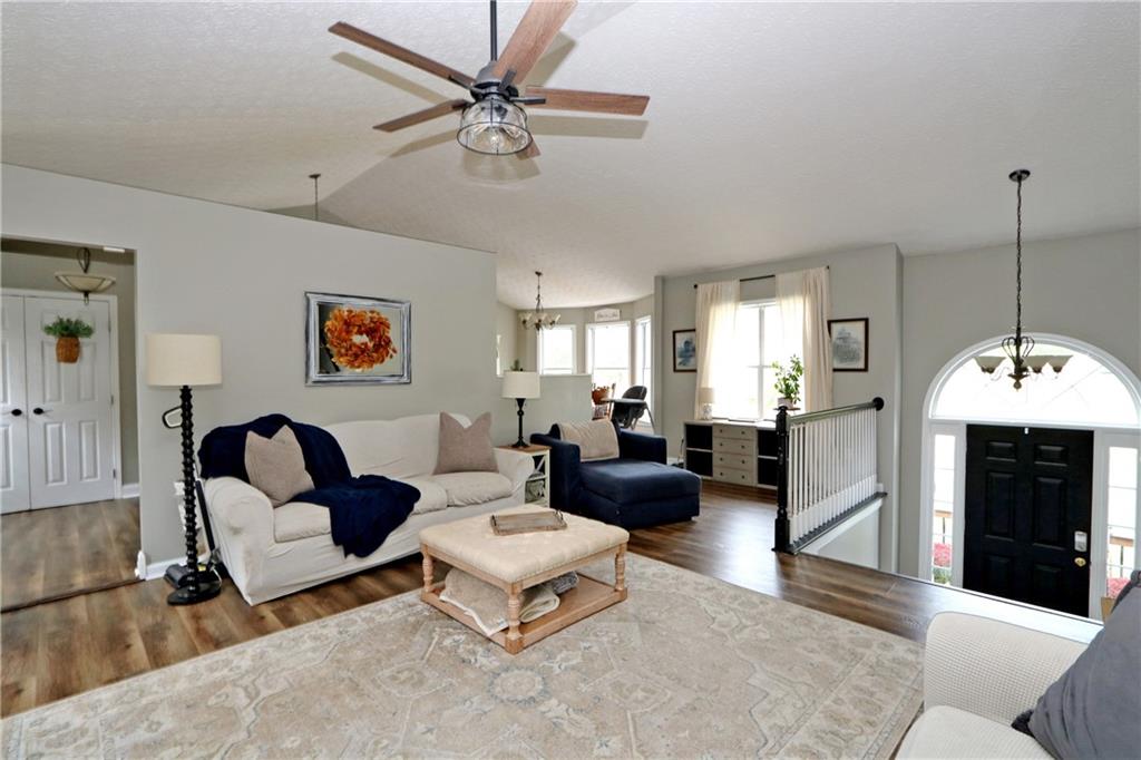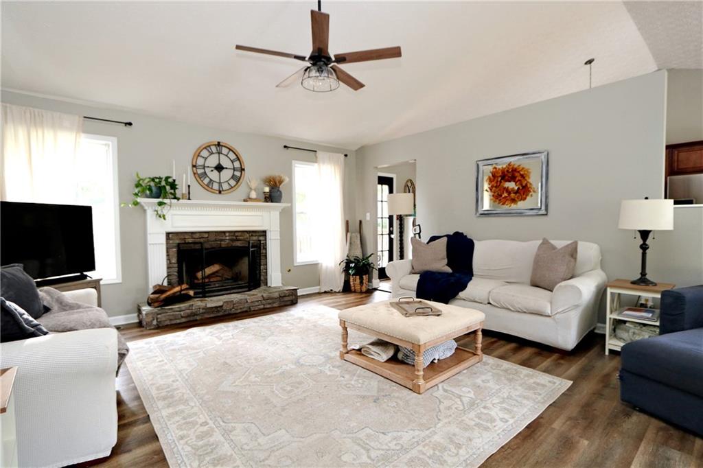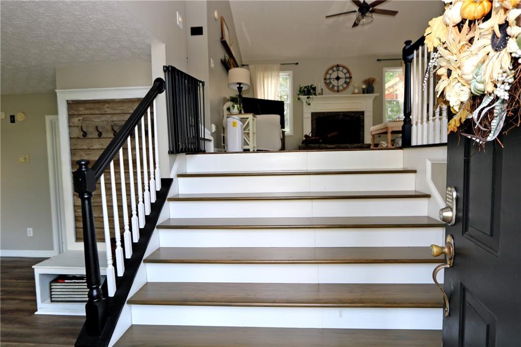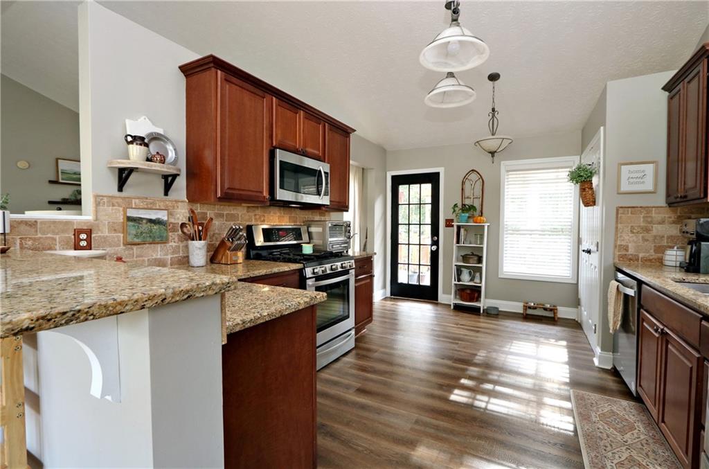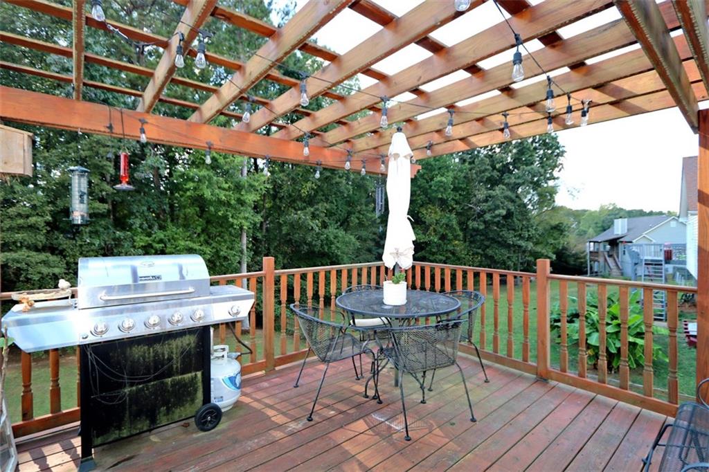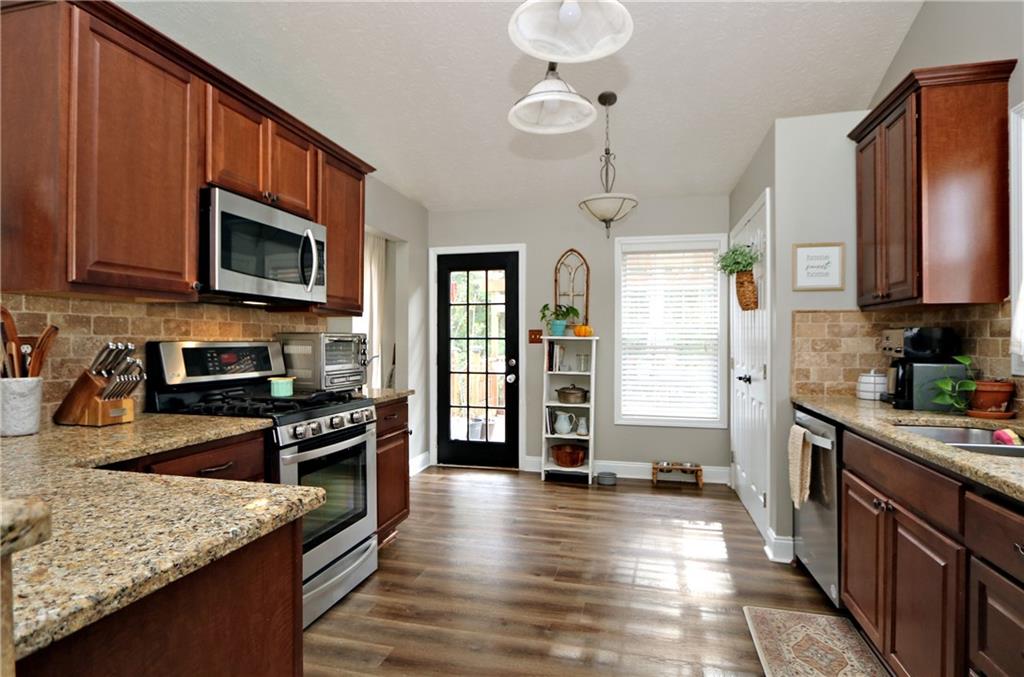 NO HOA!! Absolutely adorable home with perfect backyard! Very bright and open! Nice den with cozy fireplace. Super kitchen with eat-in area with pretty bay window and has new dishwasher. Refrigerator in kitchen stays with the home! There is also a gas stove and a microwave. Stainless steel appliances. Huge Pantry! New LVP flooring upstairs 2021, downstairs 2024. Carpet in bedrooms. Deck has pretty pergola and overlooks that beautiful fenced backyard! Primary bedroom is very nice with renovated bath. Secondary bedrooms good size as well! Super bonus room for whatever you want to do with it! Also seller has an office downstairs or you could use it for a workout room as well!