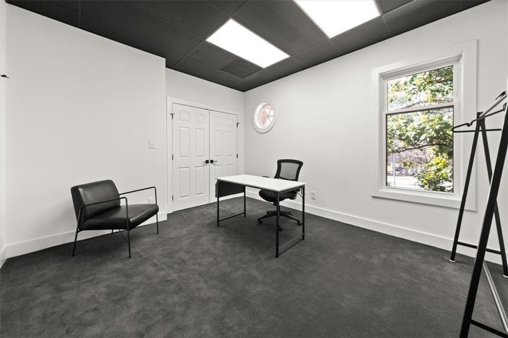 This newly updated office suite offers a spacious and functional layout with a large meeting room, three private rooms, one bathroom, and a kitchenette area complete with a small drink refrigerator and sink. Special features include blackout blinds, green screens, and a variety of backdrops, making it a perfect fit for a YouTube studio, creative professionals, CPAs, law offices, or medical spas. The suite is located upstairs in a well-maintained office complex, ensuring a quiet and professional environment. Additional amenities include a Tesla car charger and ample parking for added convenience. Situated in a prime location, the office is just minutes from I-285, GA-400, Perimeter Mall, Northside Hospital, Emory St. Joseph’s, and Children’s Healthcare of Atlanta. This unbeatable location offers easy access for clients and staff, making it an excellent choice for your business. Schedule a tour today!