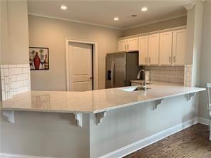 - KitchenBreakfast Bar, Cabinets White, Solid Surface Counters, View to Family Room