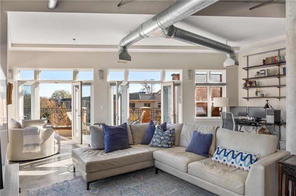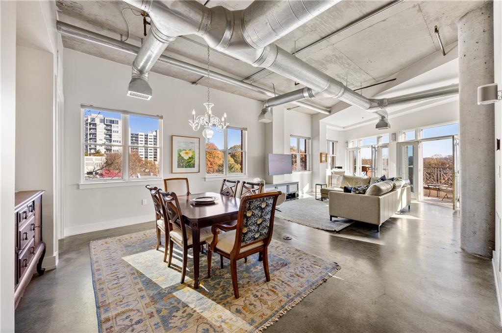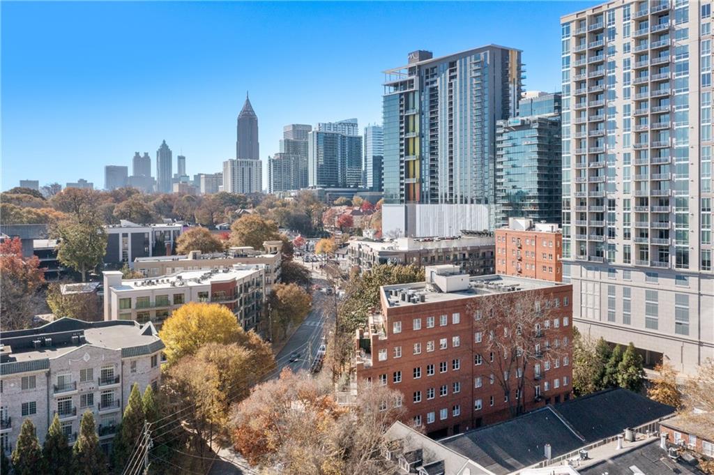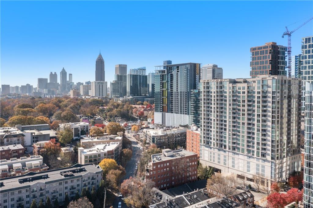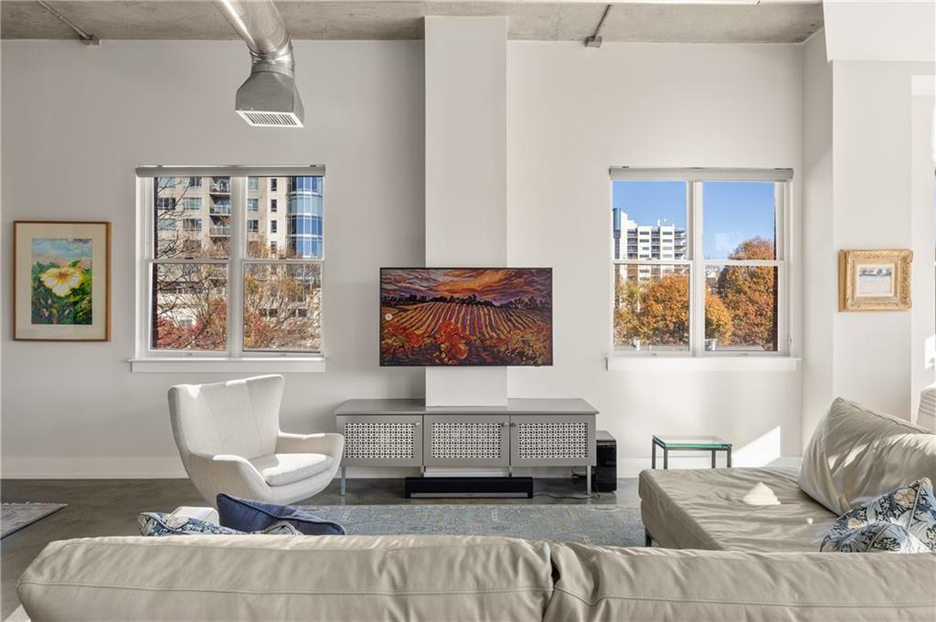 This completely renovated 1,595 sqft corner loft at Lofts@The Park II offers stunning views of Piedmont Park and the city skyline from its expansive terrace. One of only four units in the building with a large outdoor patio, this loft features 11-foot concrete ceilings, exposed ductwork, and concrete floors throughout. A brand-new HVAC system ensures year-round comfort. The sleek chef's kitchen includes stainless steel appliances, an island, and a bar, while the Owner’s Suite is bathed in natural light with picturesque park views. The spa-like bath offers a soaking tub, separate shower, double vanity, and stacked washer/dryer. A spacious walk-in closet provides ample storage, and there’s potential to add a second bedroom. Two assigned, secure parking spaces are included. Located just steps from Piedmont Park and within walking distance to Colony Square, the Atlanta BeltLine, Ponce City Market, and all that makes Midtown so special. MUST-SEE!