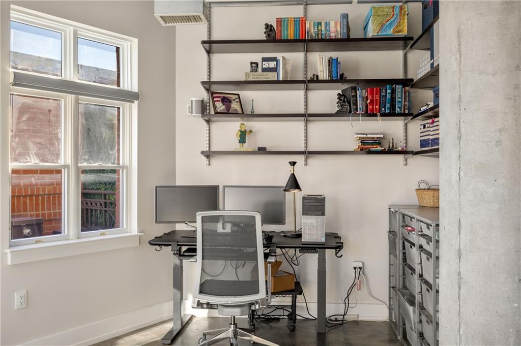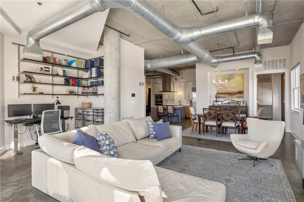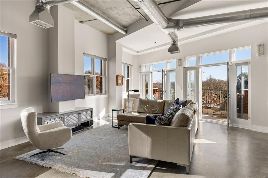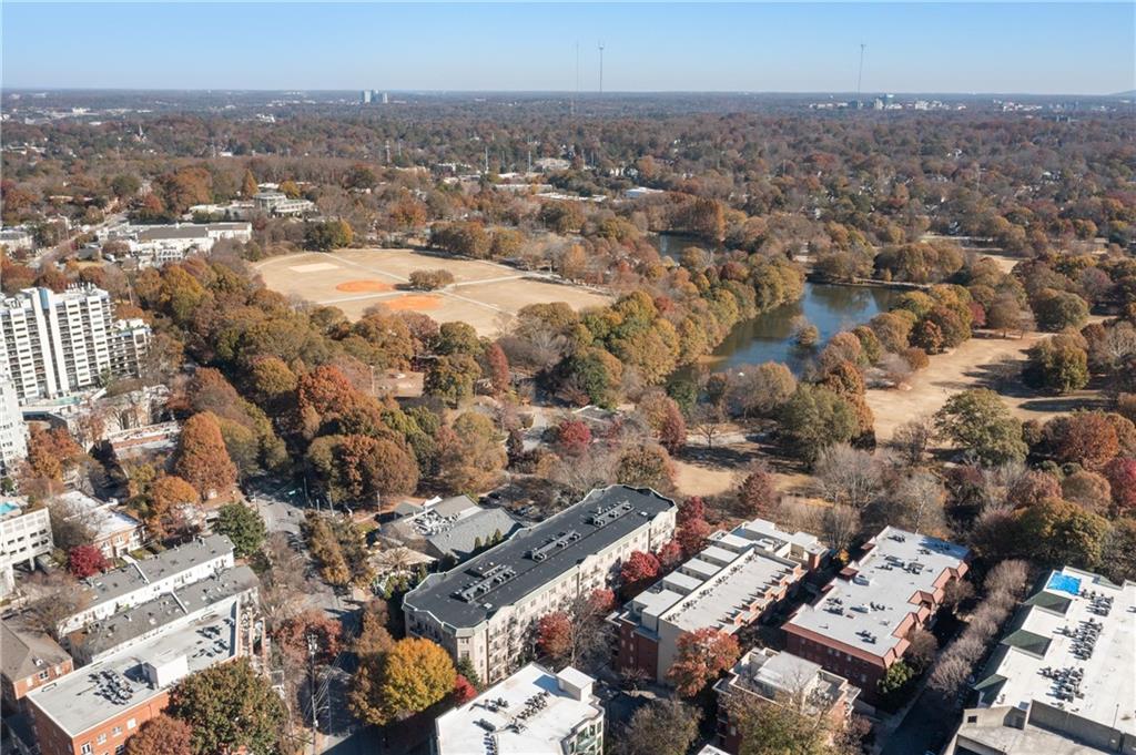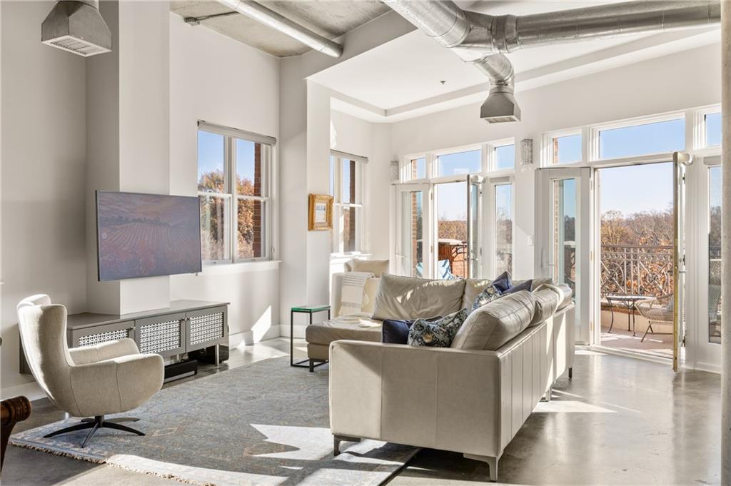 This completely renovated 1,595 sqft corner loft at Lofts@The Park II offers stunning views of Piedmont Park and the city skyline from its expansive terrace. One of only four units in the building with a large outdoor patio, this loft features 11-foot concrete ceilings, exposed ductwork, and concrete floors throughout. A brand-new HVAC system ensures year-round comfort. The sleek chef's kitchen includes stainless steel appliances, an island, and a bar, while the Owner’s Suite is bathed in natural light with picturesque park views. The spa-like bath offers a soaking tub, separate shower, double vanity, and stacked washer/dryer. A spacious walk-in closet provides ample storage, and there’s potential to add a second bedroom. Two assigned, secure parking spaces are included. Located just steps from Piedmont Park and within walking distance to Colony Square, the Atlanta BeltLine, Ponce City Market, and all that makes Midtown so special. MUST-SEE!