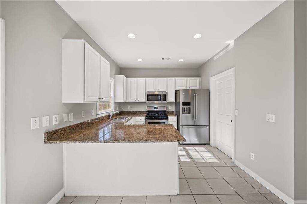 - KitchenCabinets White, Eat-in Kitchen, Pantry, Stone Counters