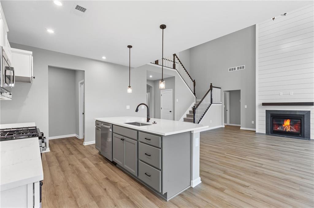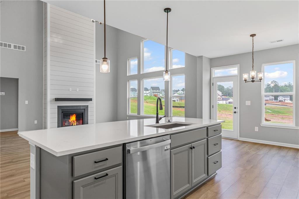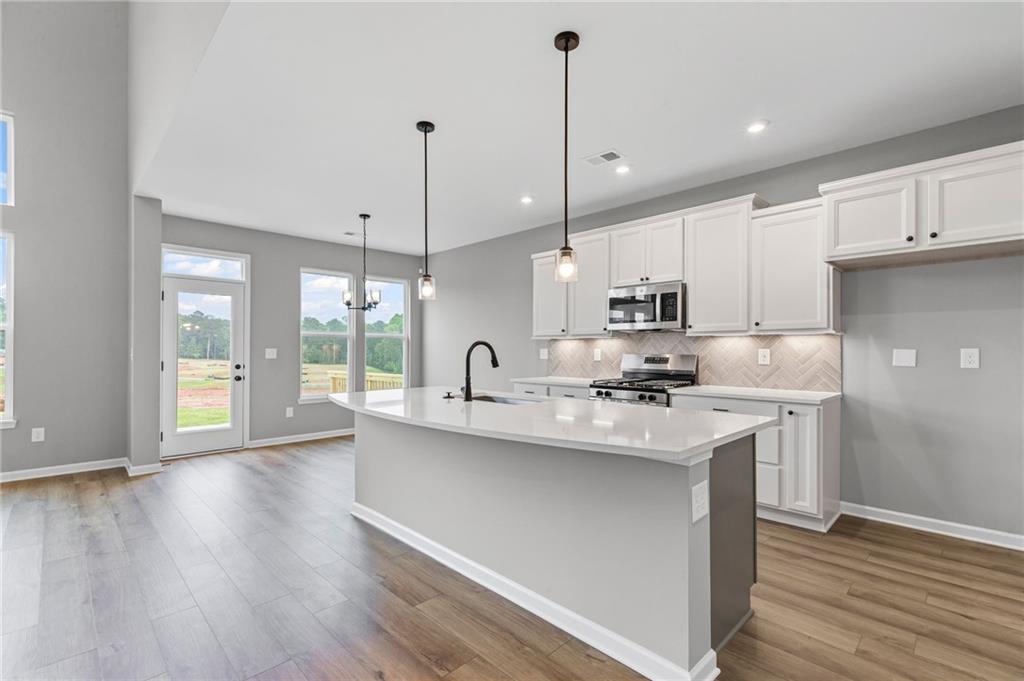 - KitchenBreakfast Room, Kitchen Island, Pantry Walk-In, Stone Counters, View to Family Room