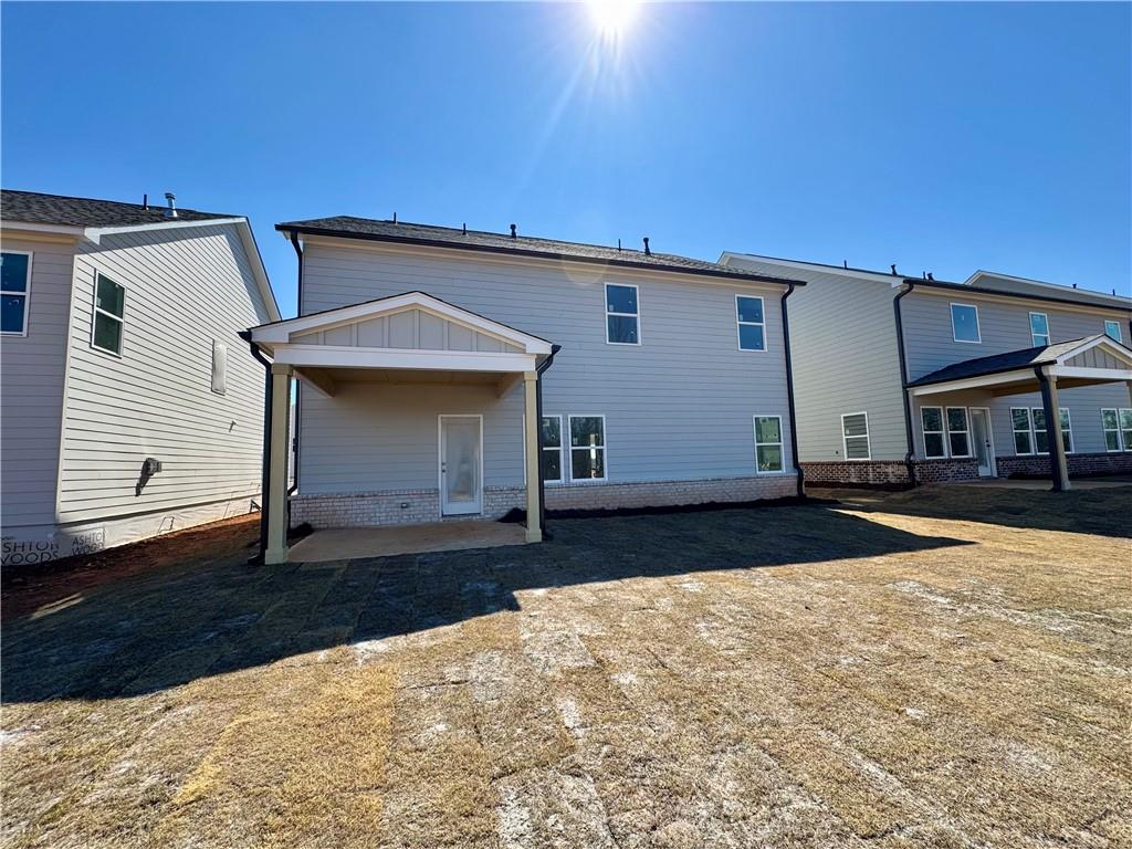 Our popular Pearson design is a 2,801 sq. ft. home, created for modern living with 5 bedrooms, 4 bathrooms, a study & a huge loft. The bright kitchen featuring white cabinets, a designer tile backsplash & stainless appliances flows seamlessly into a sunlit family room and breakfast area. This home boasts a guest suite with a full bath on the main floor & a study that can be used as an office, living room or formal dining space. The covered patio is located off the breakfast room & provides a nice space to enjoy your outdoor space. Upstairs, you'll find a serene Primary Suite with a trey ceiling & an elegant bath featuring a tile shower, double vanities & a large walk-in closet. 3 additional bedrooms, 2 full baths, a spacious laundry room & a fantastic loft complete the 2nd floor. Located in the heart of Flowery Branch near the scenic shores of Lake Lanier, Eastlyn Crossing offers a stunning collection of single-family homes and townhomes in a vibrant community. Enjoy the charm of historic downtown Flowery Branch, where you can stroll through unique boutiques, relax in cozy cafés, and browse the local farmer’s market. Spend your days exploring nearby attractions, from Alberta Banks Park’s tennis courts and playgrounds to the recreational opportunities at Lake Lanier Islands, including hiking trails, golf, waterslides, and lakeside dining. Closer to home, residents can relax by the cabanas at the pool or enjoy a friendly game on the pickleball courts. At Eastlyn Crossing, you’ll find the perfect balance of comfort, connection, and adventure. This home has a projected delivery date of April 2025. For further details and information on current promotions, please contact an onsite Community Sales Managers. Please note that renderings are for illustrative purposes, and photos may represent sample products of homes under construction. Actual exterior and interior selections may vary by homesite.