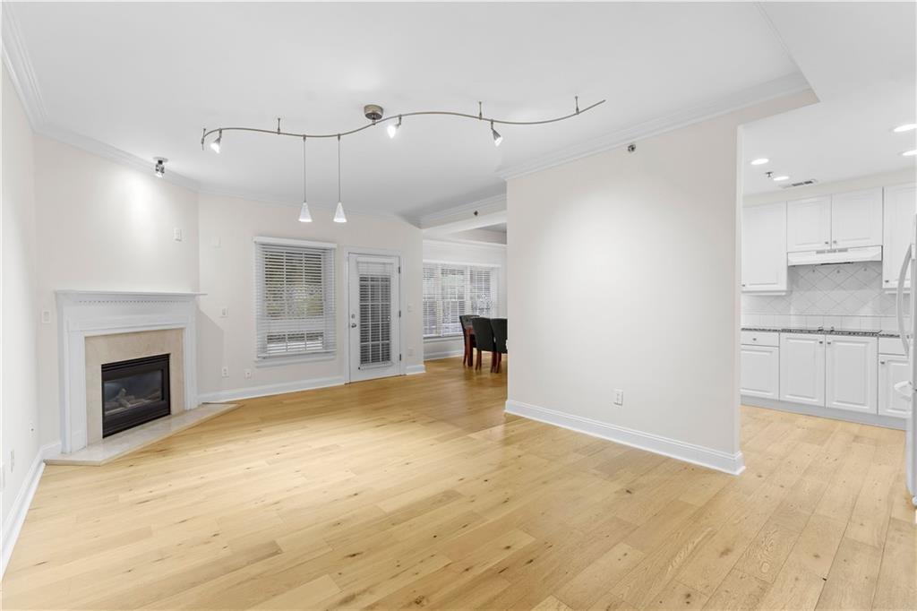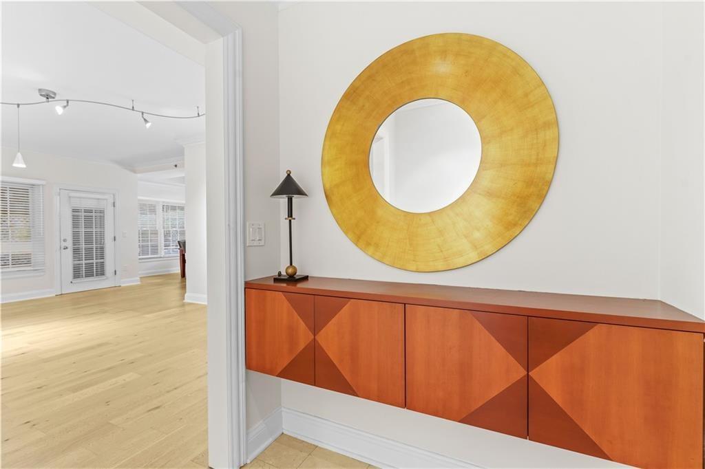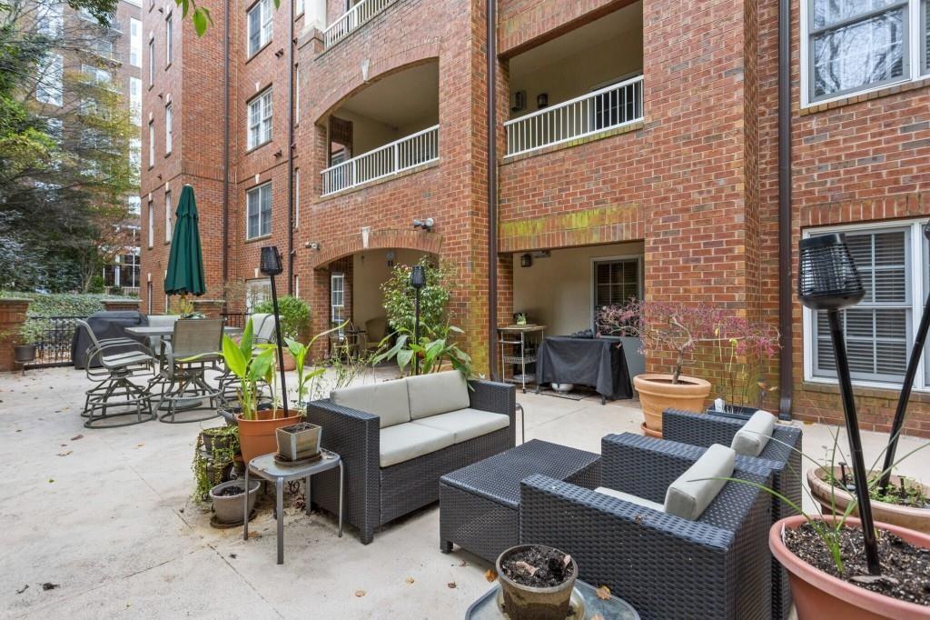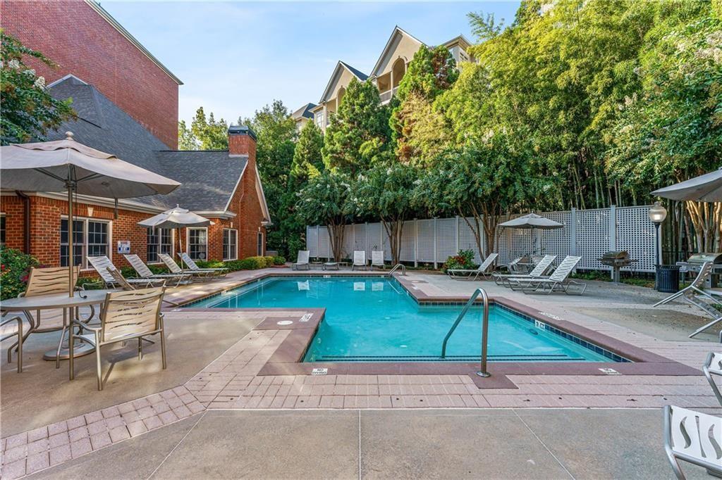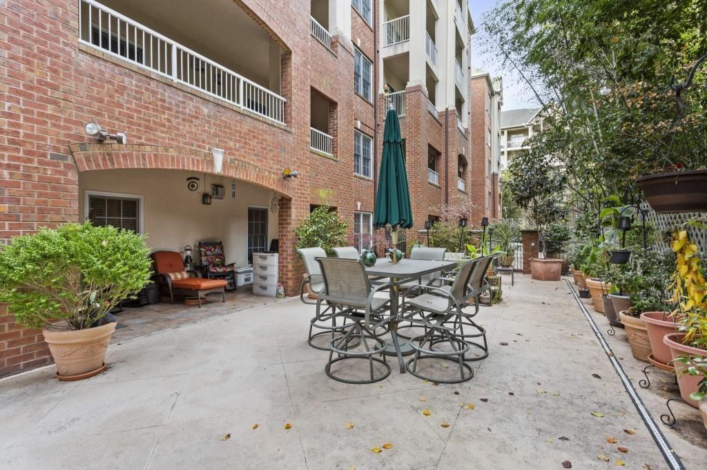 Welcome to your dream condo in the heart of South Buckhead! This rare first-floor unit offers a massive, nearly 1,000sqft, private terrace that is truly unparalleled—an expansive outdoor oasis perfect for entertaining, relaxing, or simply enjoying the serene, wooded views in complete seclusion. Whether hosting a lively gathering or unwinding after a busy day, this patio space is your personal haven. Inside, the home is just as impressive. Elegant wide-plank white oak hardwood floors flow throughout the open-concept living areas and bedrooms, complemented by updated lighting and custom closets with ample storage. The gourmet kitchen is a chef’s delight, featuring granite countertops, custom white cabinetry, high-end appliances, and abundant cabinet space. The inviting family room, anchored by a cozy gas log fireplace, opens seamlessly to the dining area, ideal for hosting guests. The primary suite is a retreat in itself, with a tray ceiling, spacious custom Elfa closet, and views of the private courtyard. The luxurious en-suite bathroom includes dual raised vanities, a frameless tiled shower, and a jetted garden tub for ultimate relaxation. A second bedroom, currently set up as an office, and a stylish guest bathroom complete this immaculate unit. Feel comfortable in your home with a recently replaced HVAC and water heater. Two conveniently located, assigned parking spaces in the secure parking garage provide easy access to the building, and a large deeded storage unit ensures plenty of space for your belongings. This gated community is loaded with amenities to enhance your lifestyle, including a saltwater swimming pool, a fully equipped fitness center with new equipment, a renovated club room with a catering kitchen, a private movie theater, and 24-hour concierge service. Plus, you're just steps away from the Beltline, Bobby Jones Golf Course, Bitsy Grant Tennis Center, and some of the best dining and shopping in Buckhead and Midtown. Heritage Place isn’t just a condo—it’s a lifestyle. Don’t miss your chance to own this exceptional property!