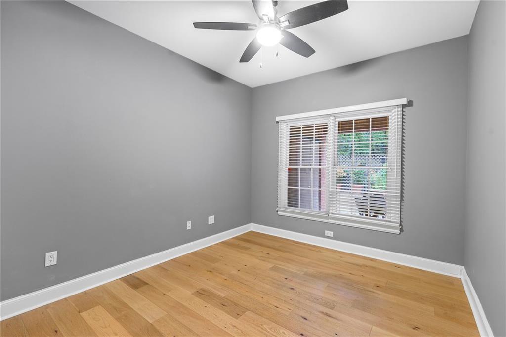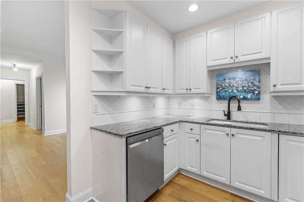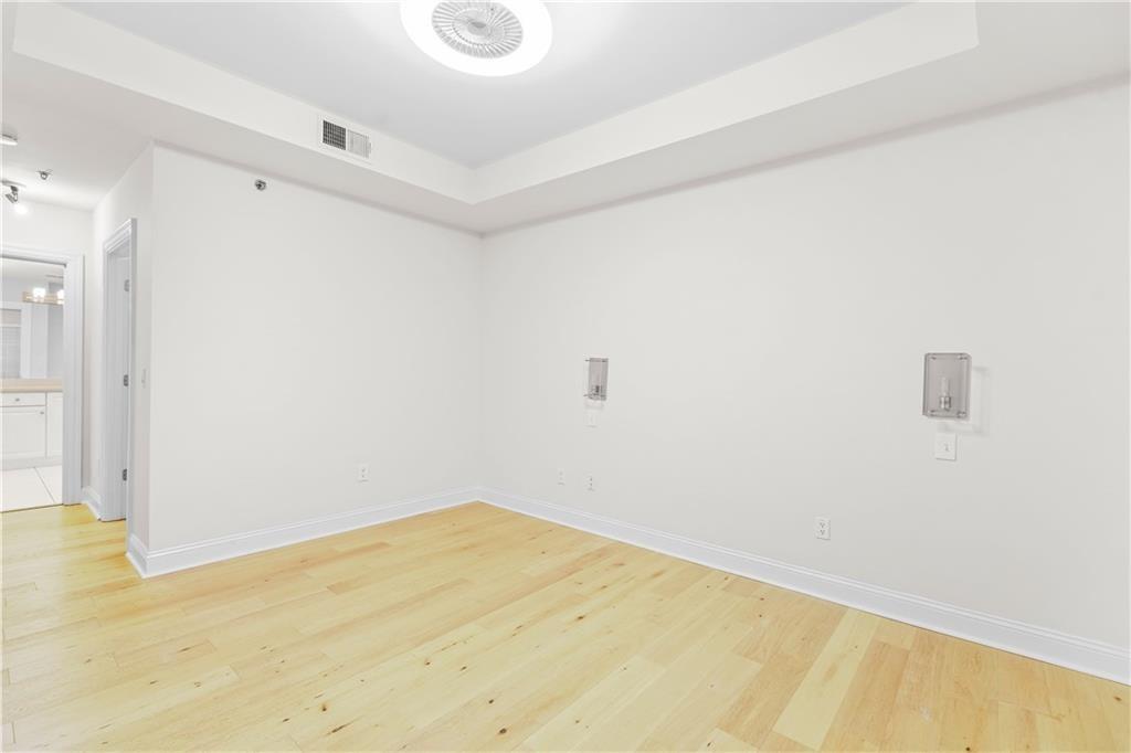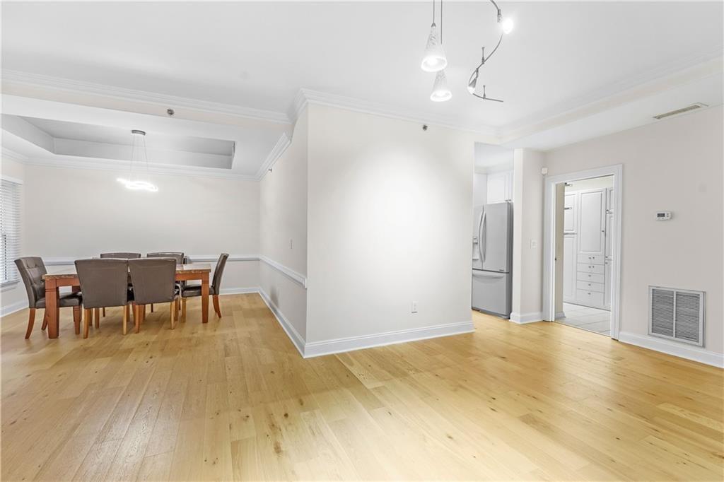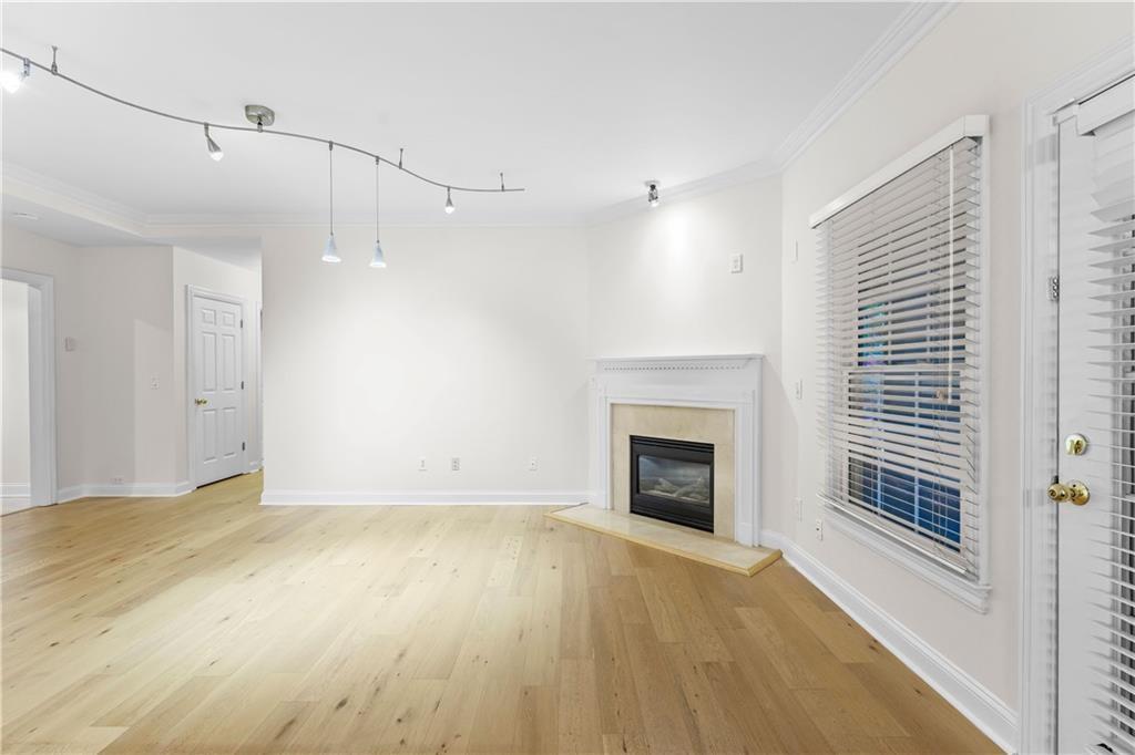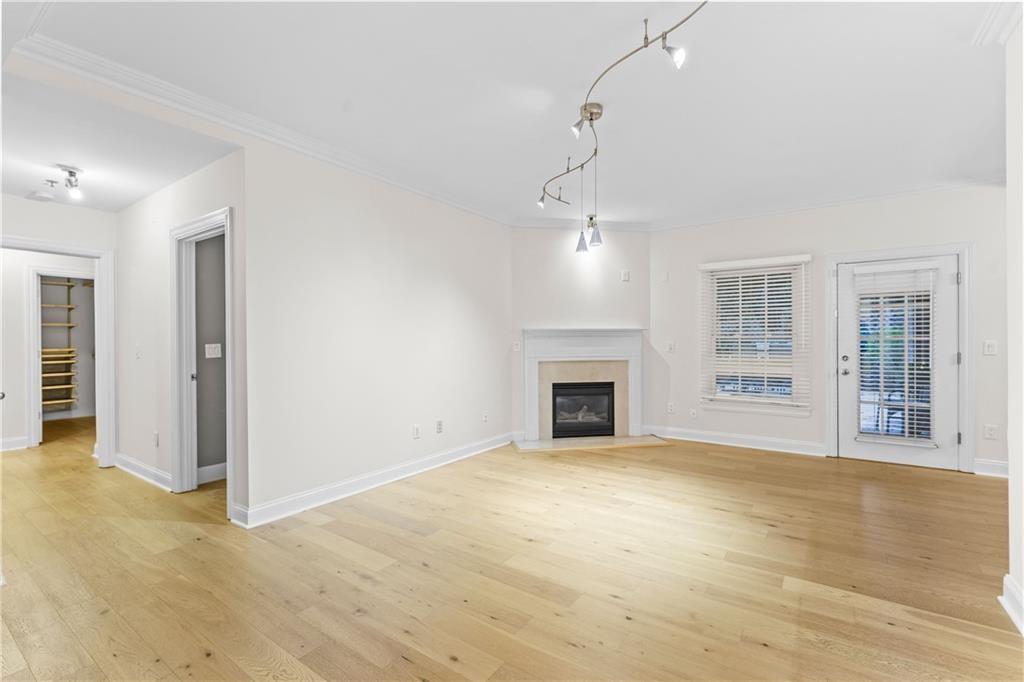 Welcome to your dream condo in the heart of South Buckhead! This rare first-floor unit offers a massive, nearly 1,000sqft, private terrace that is truly unparalleled—an expansive outdoor oasis perfect for entertaining, relaxing, or simply enjoying the serene, wooded views in complete seclusion. Whether hosting a lively gathering or unwinding after a busy day, this patio space is your personal haven. Inside, the home is just as impressive. Elegant wide-plank white oak hardwood floors flow throughout the open-concept living areas and bedrooms, complemented by updated lighting and custom closets with ample storage. The gourmet kitchen is a chef’s delight, featuring granite countertops, custom white cabinetry, high-end appliances, and abundant cabinet space. The inviting family room, anchored by a cozy gas log fireplace, opens seamlessly to the dining area, ideal for hosting guests. The primary suite is a retreat in itself, with a tray ceiling, spacious custom Elfa closet, and views of the private courtyard. The luxurious en-suite bathroom includes dual raised vanities, a frameless tiled shower, and a jetted garden tub for ultimate relaxation. A second bedroom, currently set up as an office, and a stylish guest bathroom complete this immaculate unit. Feel comfortable in your home with a recently replaced HVAC and water heater. Two conveniently located, assigned parking spaces in the secure parking garage provide easy access to the building, and a large deeded storage unit ensures plenty of space for your belongings. This gated community is loaded with amenities to enhance your lifestyle, including a saltwater swimming pool, a fully equipped fitness center with new equipment, a renovated club room with a catering kitchen, a private movie theater, and 24-hour concierge service. Plus, you're just steps away from the Beltline, Bobby Jones Golf Course, Bitsy Grant Tennis Center, and some of the best dining and shopping in Buckhead and Midtown. Heritage Place isn’t just a condo—it’s a lifestyle. Don’t miss your chance to own this exceptional property!