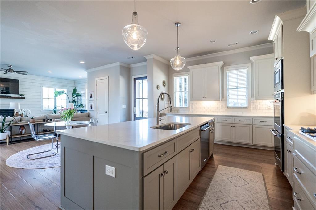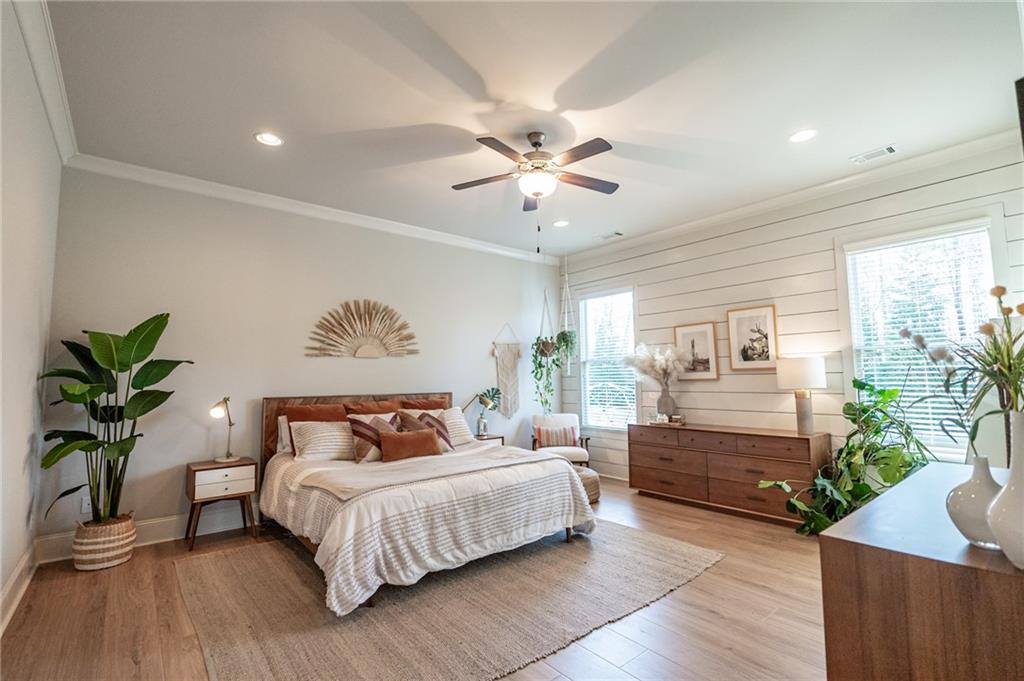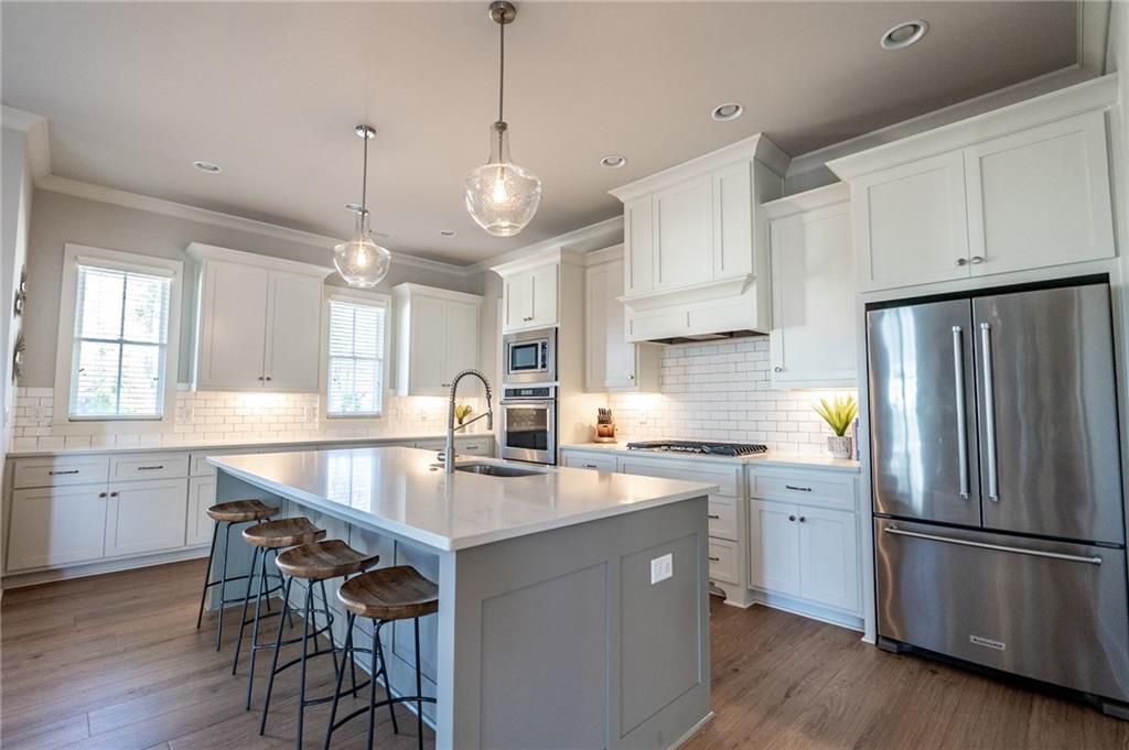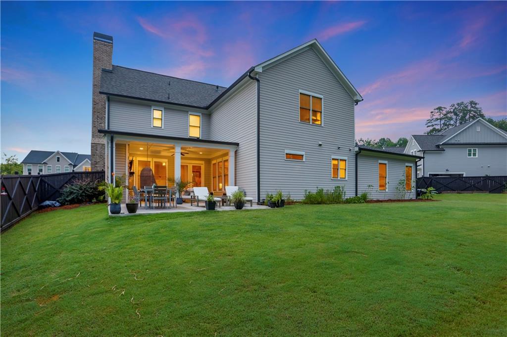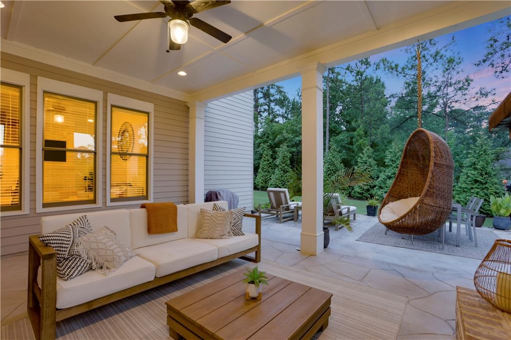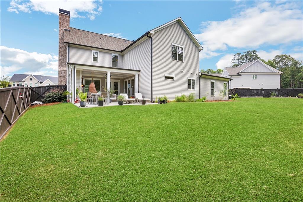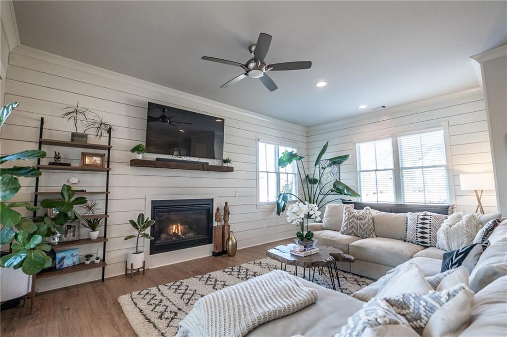 Discover modern farmhouse elegance in this stunning home with a MAIN LEVEL PRIMARY SUITE, nestled in a serene cul-de-sac. This home combines luxury, comfort, outdoor entertainment and convenience. Step onto the inviting front porch and enter this OPEN-CONCEPT home filled with natural light, 10-foot ceilings, and brand NEW LVP FLOORS. Shiplap accents and thoughtful finishes lend timeless character to the design. The heart of the home is the GOURMET KITCHEN, featuring custom 42-inch WHITE CABINETS, an OVERSIZED ISLAND with QUARTZ COUNTERTOPS, stainless steel appliances, DOUBLE OVENS, and a layout ideal for entertaining. Seamlessly connect indoor and outdoor living through double doors leading to a spacious COVERED PORCH with an OUTDOOR FIREPLACE. An EXTENDED PATIO with elegant quartz stone adds the perfect touch to this thoughtful space, while the FENCED BACKYARD offers privacy and ample acreage to create your dream outdoor oasis. No need to ever worry about the lush yard - the Rain Bird sprinkler system covers the entire property. The main-level owner's suite is a true retreat with a SPA bathroom boasting an oversized walk-in shower, deep soaking tub, custom vanities, and a generously sized walk-in closet. Upstairs, discover a versatile layout with two large bedrooms, a FLEX LOFT, and a PRIVATE GUEST SUITE with its own bathroom—perfect for office space, multigenerational living or a teen retreat. Don't miss the walk-in attic space - it's perfect for storage or converting into an office/game room/home gym. MOVE-IN READY and thoughtfully crafted, this is the perfect place to relax, entertain, and call home! Beyond the home, you'll find yourself just a short drive from premier shopping, dining, and entertainment options at the Collection at Forsyth Cumming City Center, Halcyon, and Vickery Village. Outdoor enthusiasts will appreciate being minutes away from Haw Creek Park, mountain biking trails, Lake Lanier, and hiking at Sawnee Mountain Preserve. Commuters will love the convenient access to GA-400, providing easy connections to Alpharetta, Johns Creek, and the greater Metro Atlanta area.