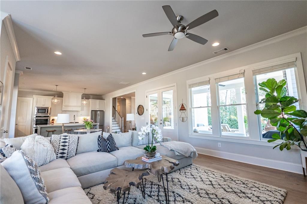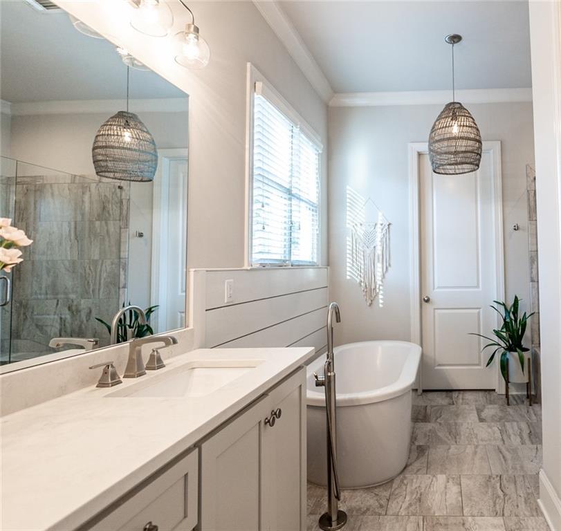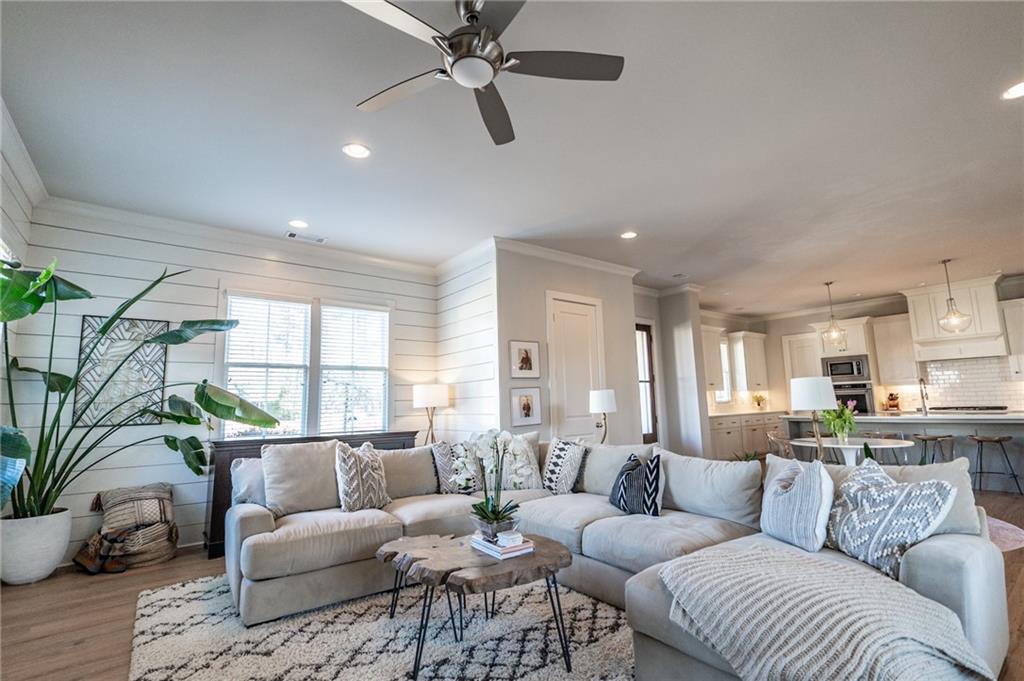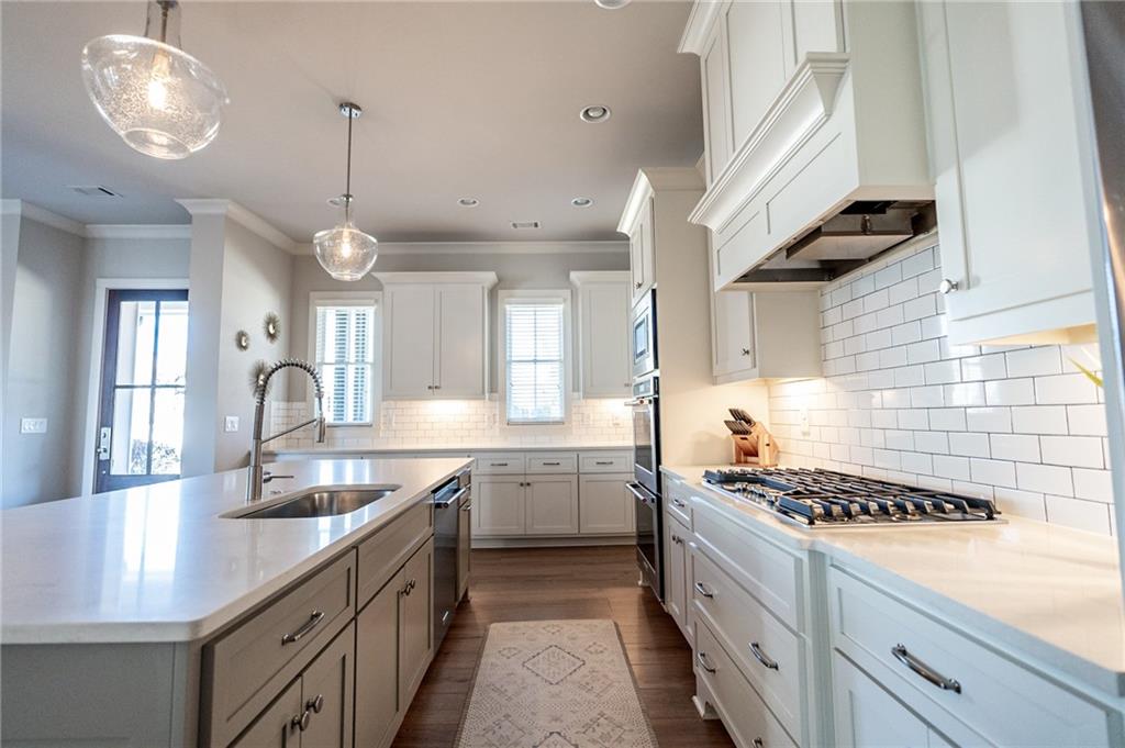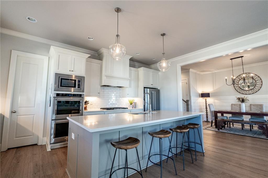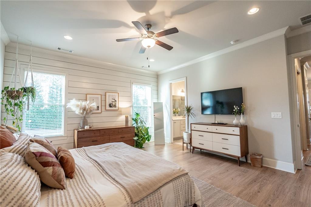Discover modern farmhouse elegance in this stunning home with a MAIN LEVEL PRIMARY SUITE, nestled in a serene cul-de-sac. This home combines luxury, comfort, outdoor entertainment and convenience. Step onto the inviting front porch and enter this OPEN-CONCEPT home filled with natural light, 10-foot ceilings, and brand NEW LVP FLOORS. Shiplap accents and thoughtful finishes lend timeless character to the design. The heart of the home is the GOURMET KITCHEN, featuring custom 42-inch WHITE CABINETS, an OVERSIZED ISLAND with QUARTZ COUNTERTOPS, stainless steel appliances, DOUBLE OVENS, and a layout ideal for entertaining. Seamlessly connect indoor and outdoor living through double doors leading to a spacious COVERED PORCH with an OUTDOOR FIREPLACE. An EXTENDED PATIO with elegant quartz stone adds the perfect touch to this thoughtful space, while the FENCED BACKYARD offers privacy and ample acreage to create your dream outdoor oasis. No need to ever worry about the lush yard - the Rain Bird sprinkler system covers the entire property. The main-level owner's suite is a true retreat with a SPA bathroom boasting an oversized walk-in shower, deep soaking tub, custom vanities, and a generously sized walk-in closet. Upstairs, discover a versatile layout with two large bedrooms, a FLEX LOFT, and a PRIVATE GUEST SUITE with its own bathroom—perfect for office space, multigenerational living or a teen retreat. Don't miss the walk-in attic space - it's perfect for storage or converting into an office/game room/home gym. MOVE-IN READY and thoughtfully crafted, this is the perfect place to relax, entertain, and call home! Beyond the home, you'll find yourself just a short drive from premier shopping, dining, and entertainment options at the Collection at Forsyth Cumming City Center, Halcyon, and Vickery Village. Outdoor enthusiasts will appreciate being minutes away from Haw Creek Park, mountain biking trails, Lake Lanier, and hiking at Sawnee Mountain Preserve. Commuters will love the convenient access to GA-400, providing easy connections to Alpharetta, Johns Creek, and the greater Metro Atlanta area.