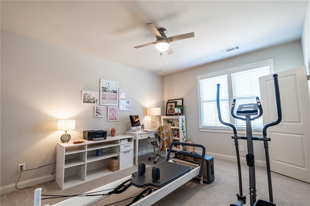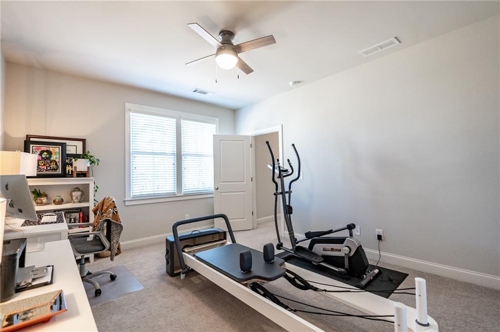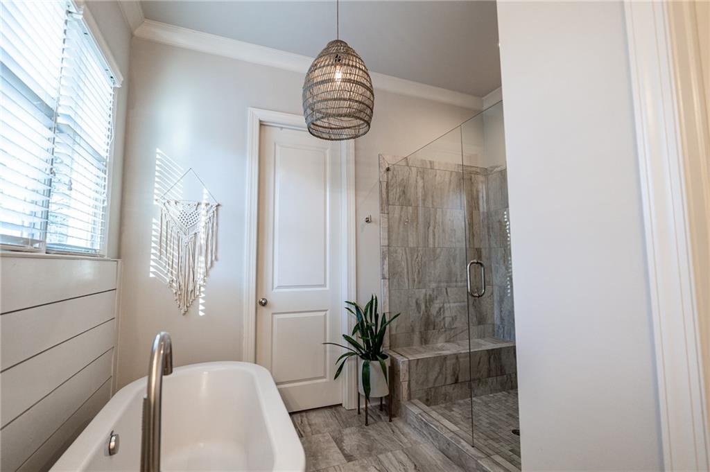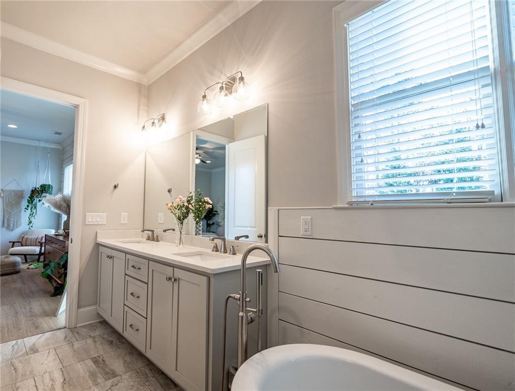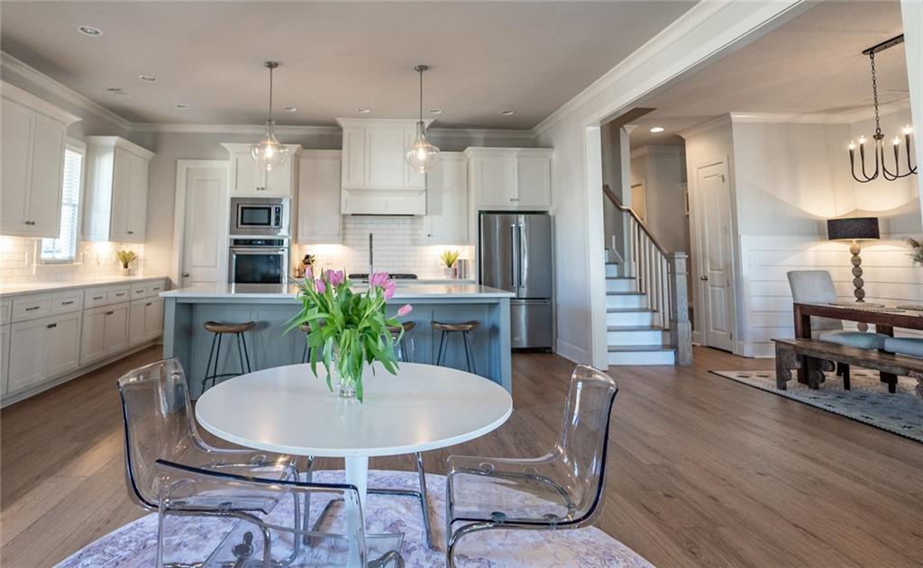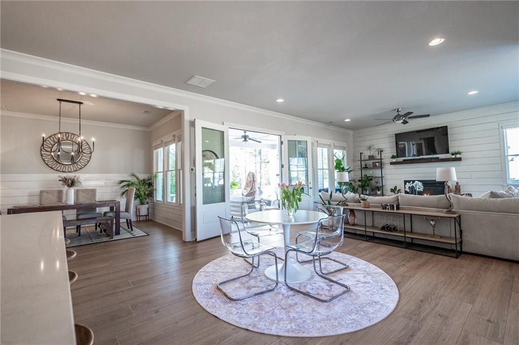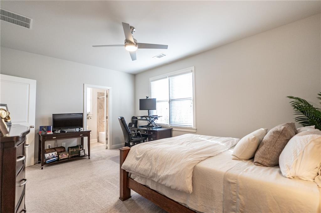 Discover modern farmhouse elegance in this stunning home with a MAIN LEVEL PRIMARY SUITE, nestled in a serene cul-de-sac. This home combines luxury, comfort, outdoor entertainment and convenience. Step onto the inviting front porch and enter this OPEN-CONCEPT home filled with natural light, 10-foot ceilings, and brand NEW LVP FLOORS. Shiplap accents and thoughtful finishes lend timeless character to the design. The heart of the home is the GOURMET KITCHEN, featuring custom 42-inch WHITE CABINETS, an OVERSIZED ISLAND with QUARTZ COUNTERTOPS, stainless steel appliances, DOUBLE OVENS, and a layout ideal for entertaining. Seamlessly connect indoor and outdoor living through double doors leading to a spacious COVERED PORCH with an OUTDOOR FIREPLACE. An EXTENDED PATIO with elegant quartz stone adds the perfect touch to this thoughtful space, while the FENCED BACKYARD offers privacy and ample acreage to create your dream outdoor oasis. No need to ever worry about the lush yard - the Rain Bird sprinkler system covers the entire property. The main-level owner's suite is a true retreat with a SPA bathroom boasting an oversized walk-in shower, deep soaking tub, custom vanities, and a generously sized walk-in closet. Upstairs, discover a versatile layout with two large bedrooms, a FLEX LOFT, and a PRIVATE GUEST SUITE with its own bathroom—perfect for office space, multigenerational living or a teen retreat. Don't miss the walk-in attic space - it's perfect for storage or converting into an office/game room/home gym. MOVE-IN READY and thoughtfully crafted, this is the perfect place to relax, entertain, and call home! Beyond the home, you'll find yourself just a short drive from premier shopping, dining, and entertainment options at the Collection at Forsyth Cumming City Center, Halcyon, and Vickery Village. Outdoor enthusiasts will appreciate being minutes away from Haw Creek Park, mountain biking trails, Lake Lanier, and hiking at Sawnee Mountain Preserve. Commuters will love the convenient access to GA-400, providing easy connections to Alpharetta, Johns Creek, and the greater Metro Atlanta area.