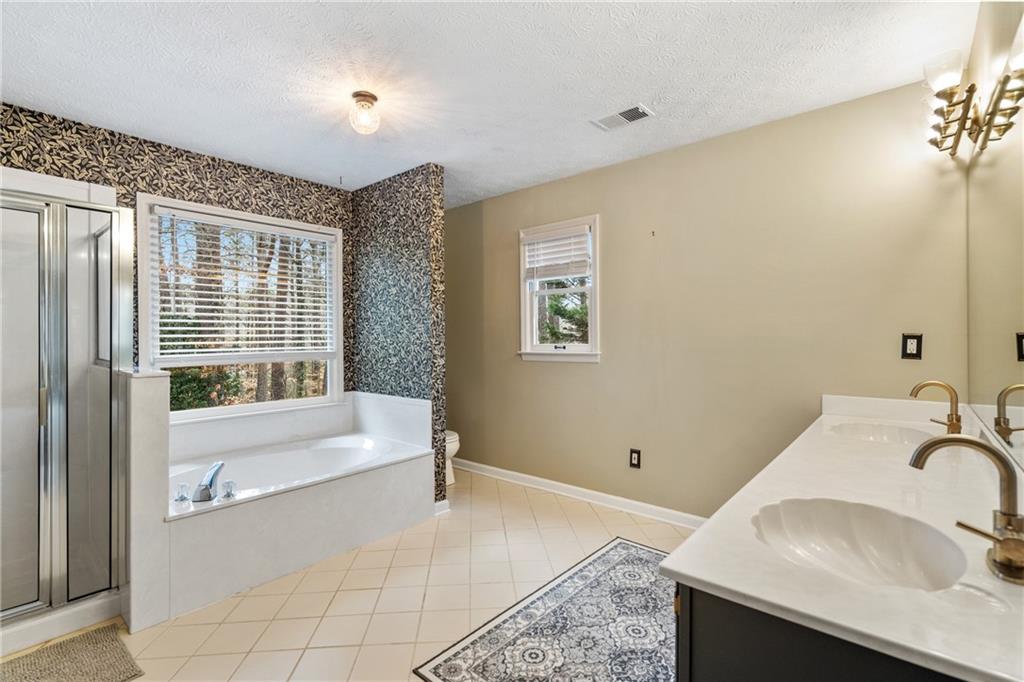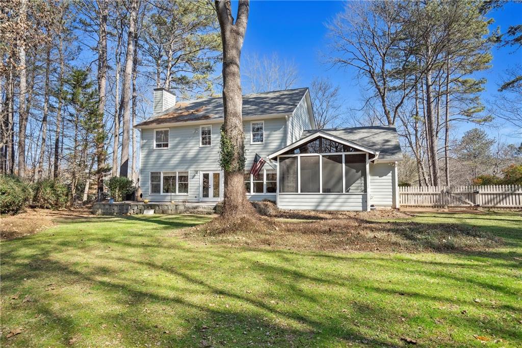 Discover a tranquil retreat in this beautifully updated home that is bright, open and totally move-in ready! The modern kitchen, featuring high-end details and ample counter space, flows effortlessly into both formal and casual living areas, creating an ideal setting for entertaining and daily living. A place to relax, the great room features floor-to-ceiling built-ins and a welcoming fireplace, perfect for the chilly winter months. The spacious primary suite upstairs offers abundant natural light, a luxurious en-suite bathroom, and a generous walk-in closet. Additional bedrooms provide versatile space suitable for various needs. Convert one into a home office, playroom, fitness area or whatever fits your personal needs. Recent enhancements, including an epoxied garage and screened porch, add to the home's appeal. Perfectly situated on a private 0.6-acre wooded lot, the expansive outdoor living areas include a screened porch, brick paved patio and fully fenced backyard with plenty of space for pets, gardening, BBQs and so much more! This property offers a PRIME location near Sims Lake Park, downtown Suwanee, I-85, award-winning schools, shopping and dining making it a truly exceptional place to call HOME.