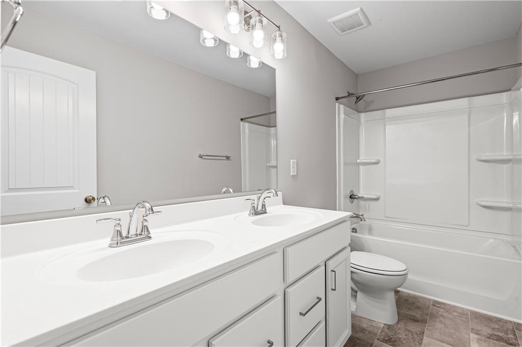 Fischer Homes is excited to offer single-family homes from the Masterpiece, Designer, and Maple Street Collections of new homes at Twin Lakes in Hoschton, Georgia. Choose from several floorplan designs, including ranch-style and two-story homes. This Master-Planned community features two private community lakes plus resort-style amenities including a swimming pool, clubhouse, fitness center, playground, cabana, dog park, outdoor living area, and yard games! Additional future planned amenities include walking trails. Located approximately 40 miles northeast of Atlanta in Hoschton, Georgia | Jackson County, Twin Lakes is less than 5 miles from I-85 with nearby shopping and dining options in Braselton, Buford, and Mall of Georgia. Gorgeous new Jensen Modern Farmhouse plan featuring a private 1st-floor study with double doors and 1st floor guest suite with full bathroom access. Open concept design with a well-appointed island kitchen with stainless steel appliances, upgraded maple cabinetry with 42-inch uppers and soft close hinges, durable quart counters, a walk-in pantry, and a walk-out morning room to the large patio and all open to the large family room with linear fireplace. A study with double doors is just off the kitchen and could easily function as a formal dining room. Upstairs you'll find the homeowners retreat with an en suite with a double bowl vanity, garden tub, separate shower, and walk-in closet. There are 3 additional bedrooms each with a walk-in closet, a centrally located hall bathroom, a huge loft, and a convenient 2nd-floor laundry room for easy laundry days. 2-bay garage.