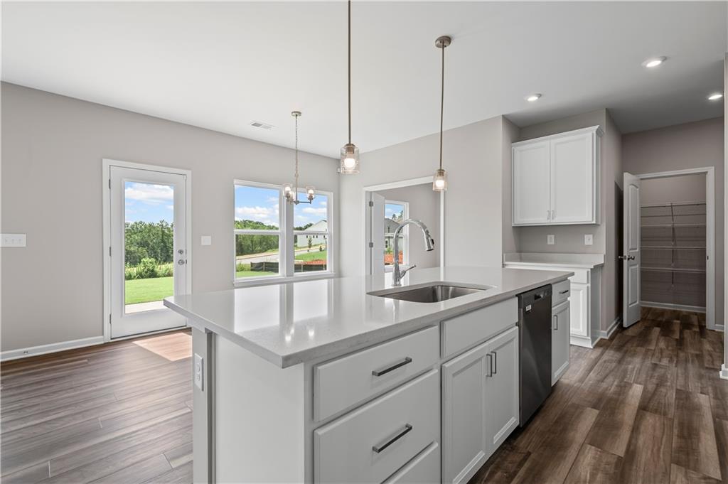 - KitchenBreakfast Bar, Breakfast Room, Kitchen Island, Pantry Walk-In, Stone Counters, View to Family Room