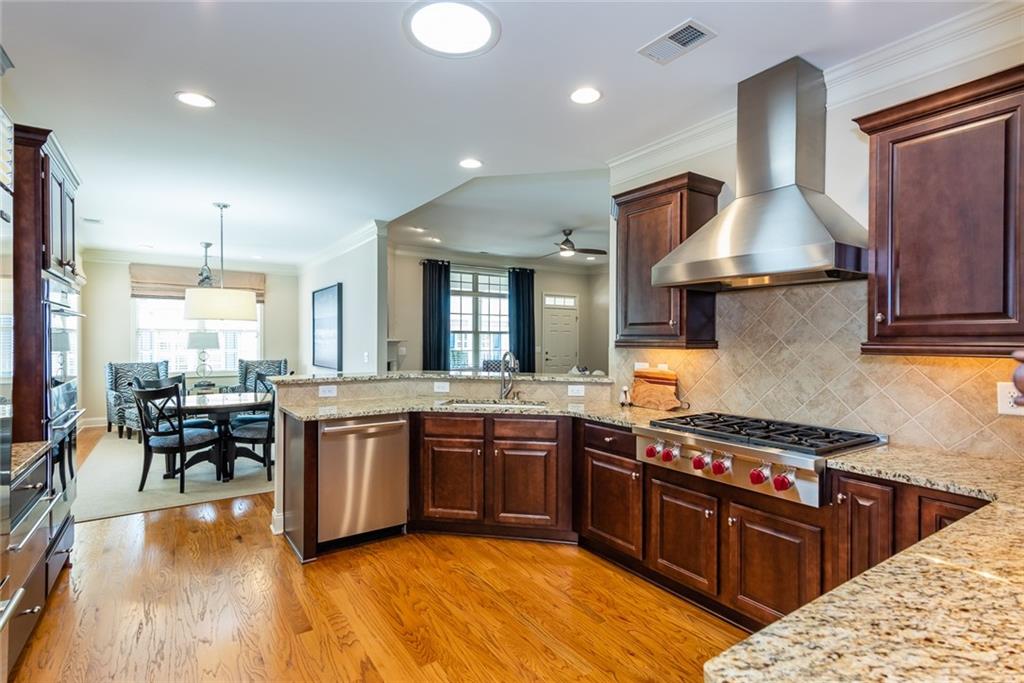 - KitchenBreakfast Room, Cabinets Stain, Eat-in Kitchen, Keeping Room, Stone Counters, View to Family Room