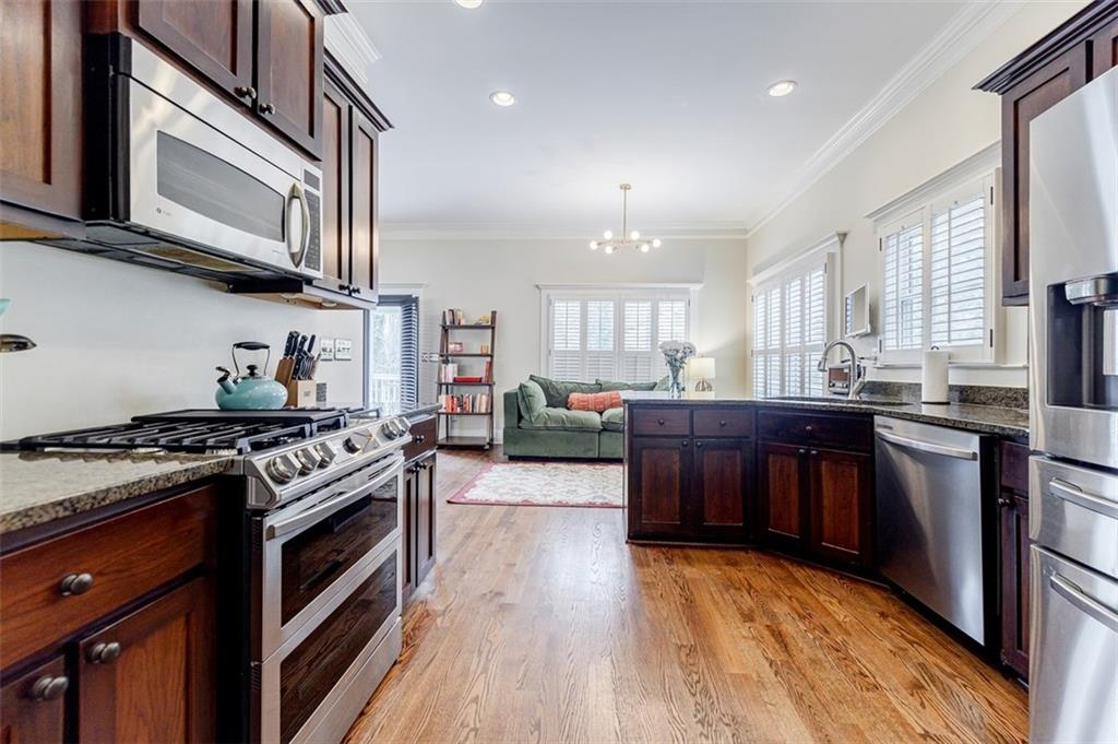 Welcome to The Preserve at East Atlanta. 1721 Streamview sits at the end of a private cul-de-sac and combines the features of the traditional craftsman style home with modern finishes. This newer construction, 5 bedroom, 3.5 bath finished basement offers open concept living on the main floor with a more traditional layout on the second floor. The home boasts a NEW roof with GAF Timberline HDZ architectural shingles. The home's open floor-plan features architectural accents such as trey ceilings, gables, stately columns, gas fireplace, tons of windows, all NEW light fixtures, fresh interior paint and NEW red oak hardwood floors. The kitchen features a Samsung stainless steel appliance package including a NEW dishwasher, granite counters, a breakfast nook, pantry, tons of cabinet space and a spacious sitting area. A large separate dining room with trey ceiling separates the living area from the kitchen. The second floor features an oversized primary bedroom with direct access to the covered porch, large walk-in closet and ensuite bath with soaking tub and separate shower. Two large secondary bedrooms share a full hall bath. There is also an enormous bonus room that could serve as a 4th bedroom, home office or fitness room. A full size side x side washer dryer is in the upstairs hallway. The home also includes a full finished basement that is perfect as an in-law or nanny suite. The interior and exterior accessed basement has a full bath, full kitchen with NEW custom cabinetry and sink, laundry room with NEW washer dryer, sitting room and bedroom with door to an exterior covered deck. The backyard is fenced and overlooks a private wooded area. Located only 5 miles from downtown Atlanta and 1.5 miles from East Atlanta, you are in close proximity to all that Atlanta has to offer. Note, tax records do not include fully furnished basement square footage. Welcome home!