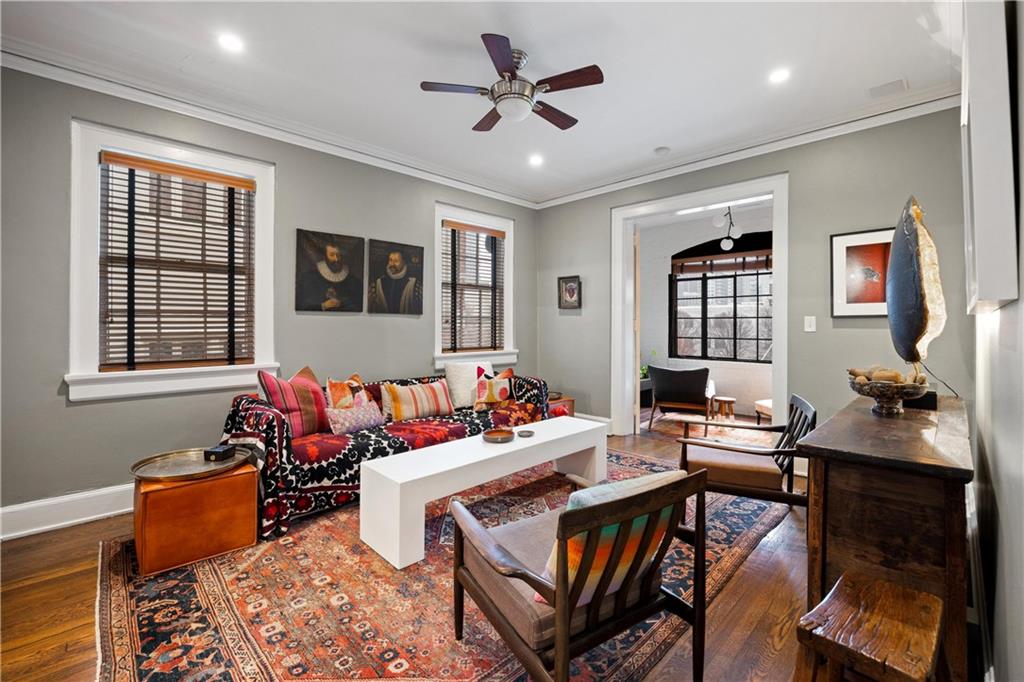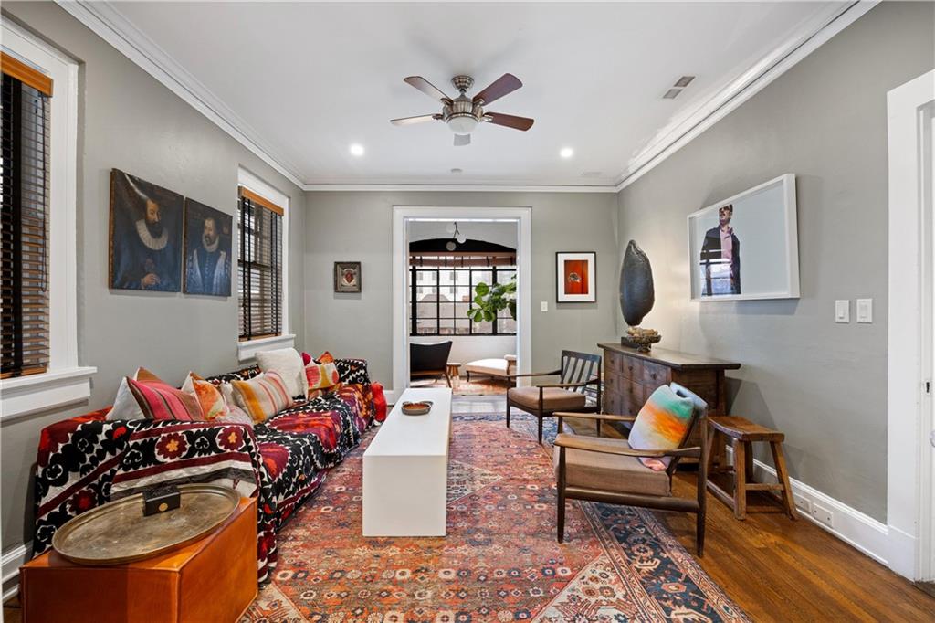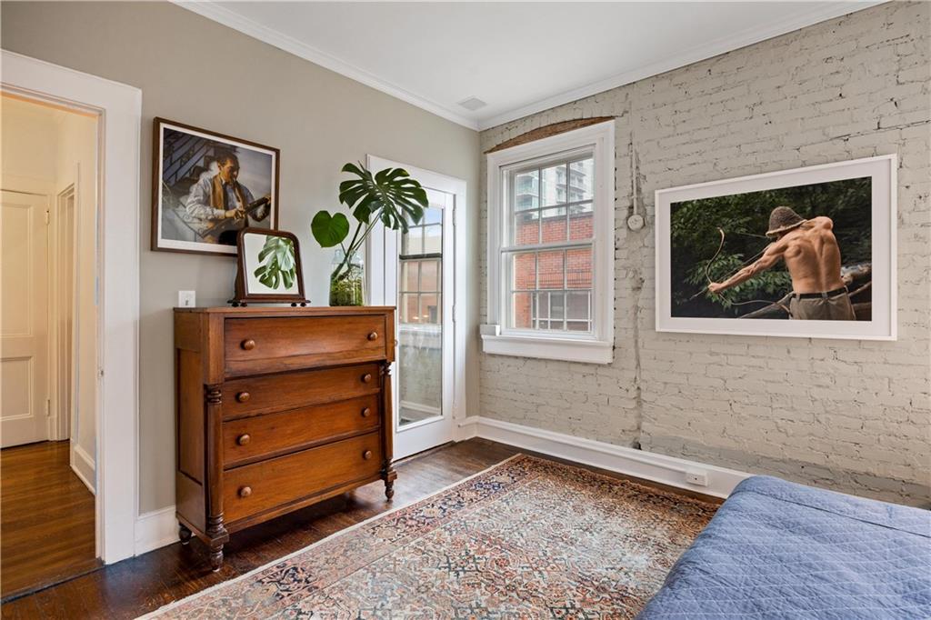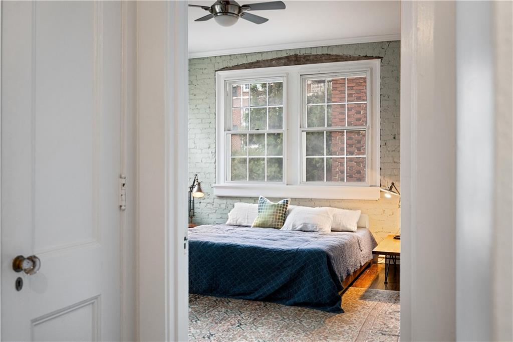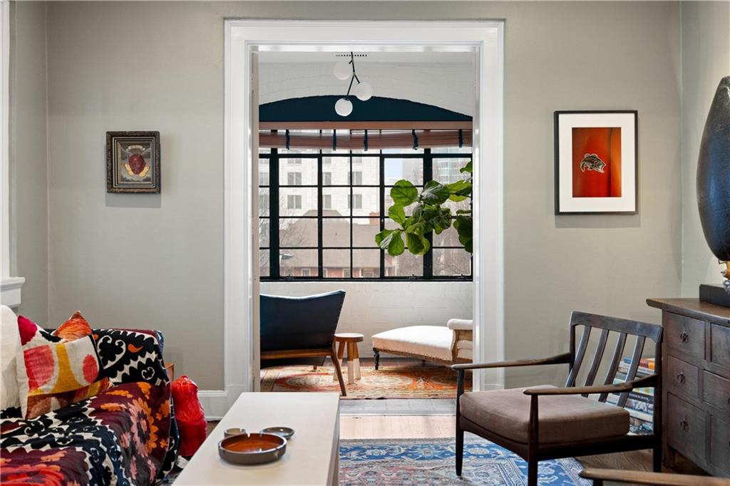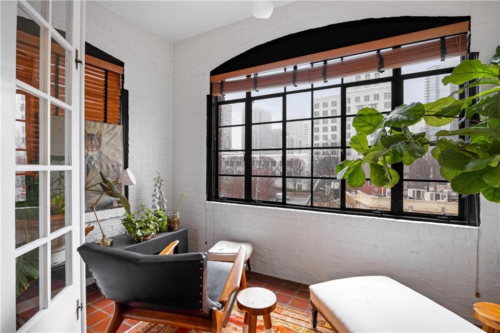 Discover the pinnacle of sophisticated living in this exquisite top-floor unit at the iconic Palmer and Phelan, a masterpiece of historic architecture by Neel Reid and Philip Shutze nestled in the heart of Midtown. Radiating timeless elegance, this residence is bathed in abundant natural light, showcasing soaring ceilings, exposed brick walls, and wide plank wood flooring that exude old-world charm with a modern twist. The open-concept layout flows effortlessly into a gourmet kitchen, complete with stone counters featuring a dramatic waterfall edge, premium stainless steel appliances, and custom cabinetry designed for the discerning chef. French doors reveal a stunning sunroom framed by oversized windows that offer breathtaking, panoramic views of Midtown’s skyline, creating the perfect setting for morning coffee or evening cocktails. The luxurious primary suite is a haven of tranquility, adorned with exposed brick walls and private access to the sunroom, while the spa-inspired bathroom boasts a marble-topped vanity and sun-drenched elegance. A spacious laundry room and built-in shelving provide exceptional storage and organization solutions. This residence includes deeded, covered parking for the ultimate convenience. Ideally situated moments from The Fox Theater, Piedmont Park, Marta, GA Tech, and Midtown’s vibrant dining and shopping scene, this historic gem seamlessly blends architectural grandeur with contemporary luxury, offering an unparalleled lifestyle in the heart of the city.