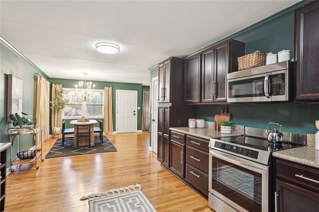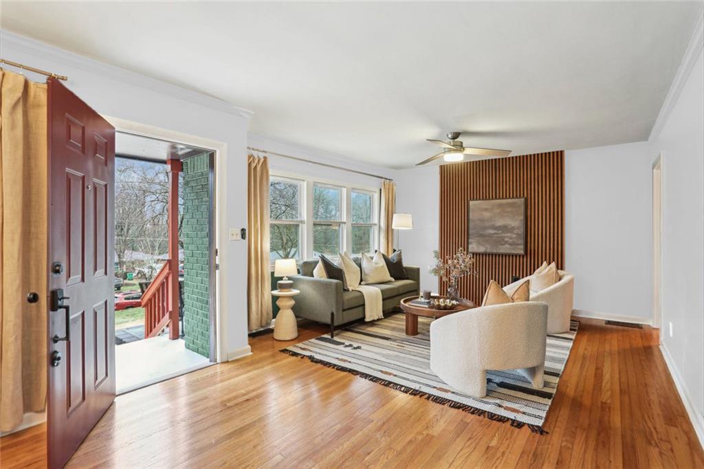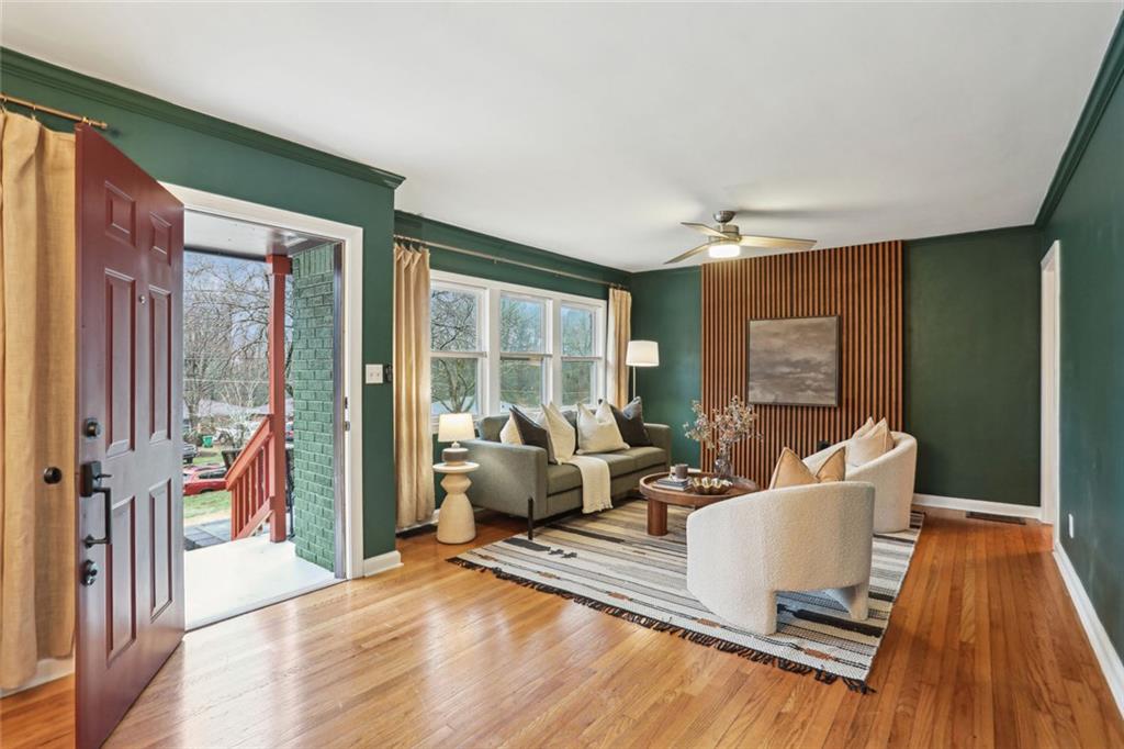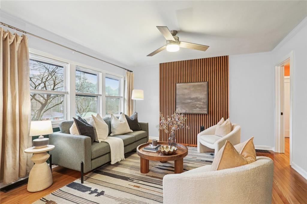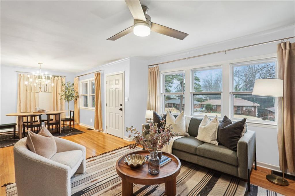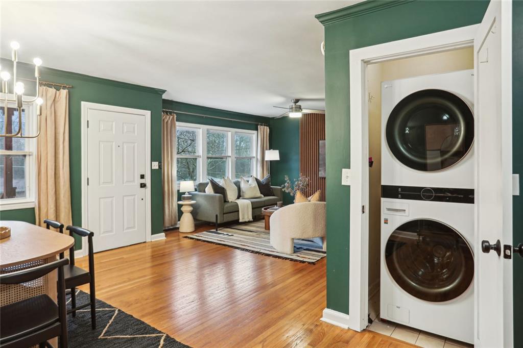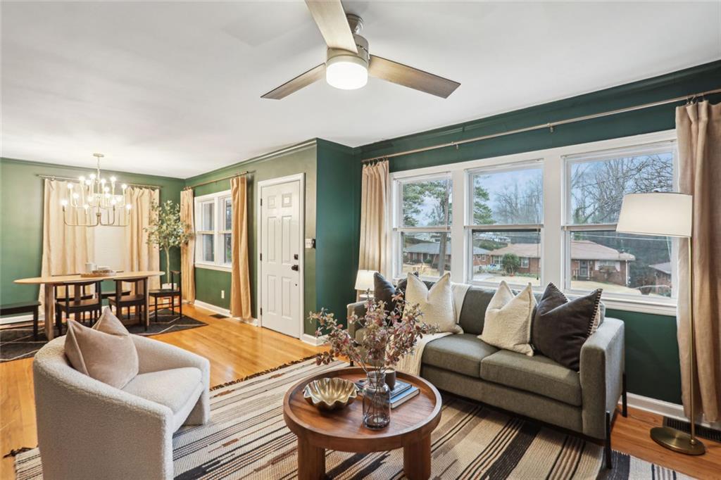 East Atlanta has a sense of community that's hard to find anywhere else in the city. It's full of hidden gems-little pockets of charm you don't even realize exist until you live here. 1322 Elmhurst is tucked into one of those special spots in a quiet cul-de-sac. Neighbors look out for each other, and you're still just minutes from the Village. Inside, the home has a warm and inviting feel, thanks to its thoughtful opened, L-shaped floor plan. The kitchen has plenty of space and it overlooks the dining area perfect for hosting dinners which connects right into the living room where an accent wall adds just the right touch of character making it a great spot to enjoy good company. This home has been well cared for throughout the past few years. The hardwood floors were buffed and coated in February 2025, the interior was freshly painted in 2023 (with ceilings and trim done February 2025), and the exterior got a fresh coat of paint in June 2024. There's also a brand-new induction range, and the washer and dryer are included! The main bedroom features an en suite bathroom with a standing shower, the secondary bedrooms are nicely sized with good closet space and one of the bedrooms has built-in shelving that makes it easy to set up a home office. Outside, the backyard is fully fenced in, complete with a firepit area and an expanded deck that's perfect for entertaining. Also, there is a huge, fruit producing fig tree! Even the front of the house has a welcoming Sitting Porch where you can enjoy a quiet morning or unwind in the evening. And to top it all off, there's an attached single-car garage!