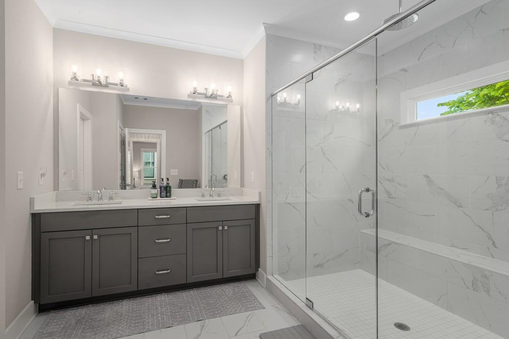 - FeaturesCrown Molding, Double Vanity, High Ceilings 9 ft Main, High Ceilings 9 ft Upper, His and Hers Closets, Walk-In Closet(s)