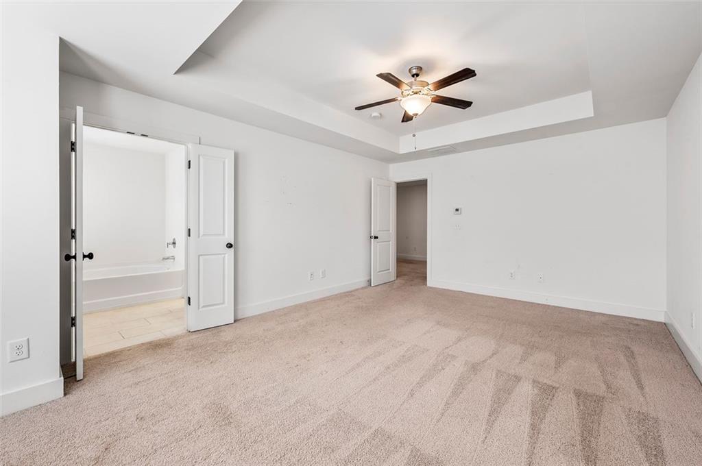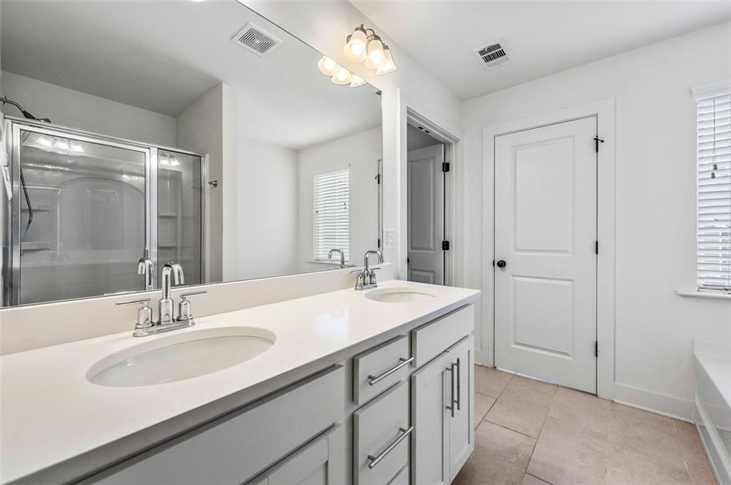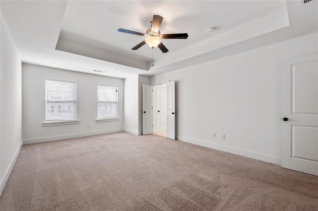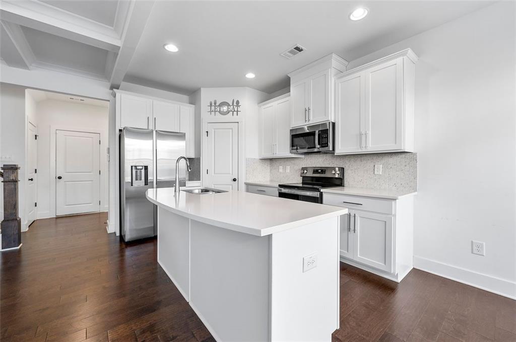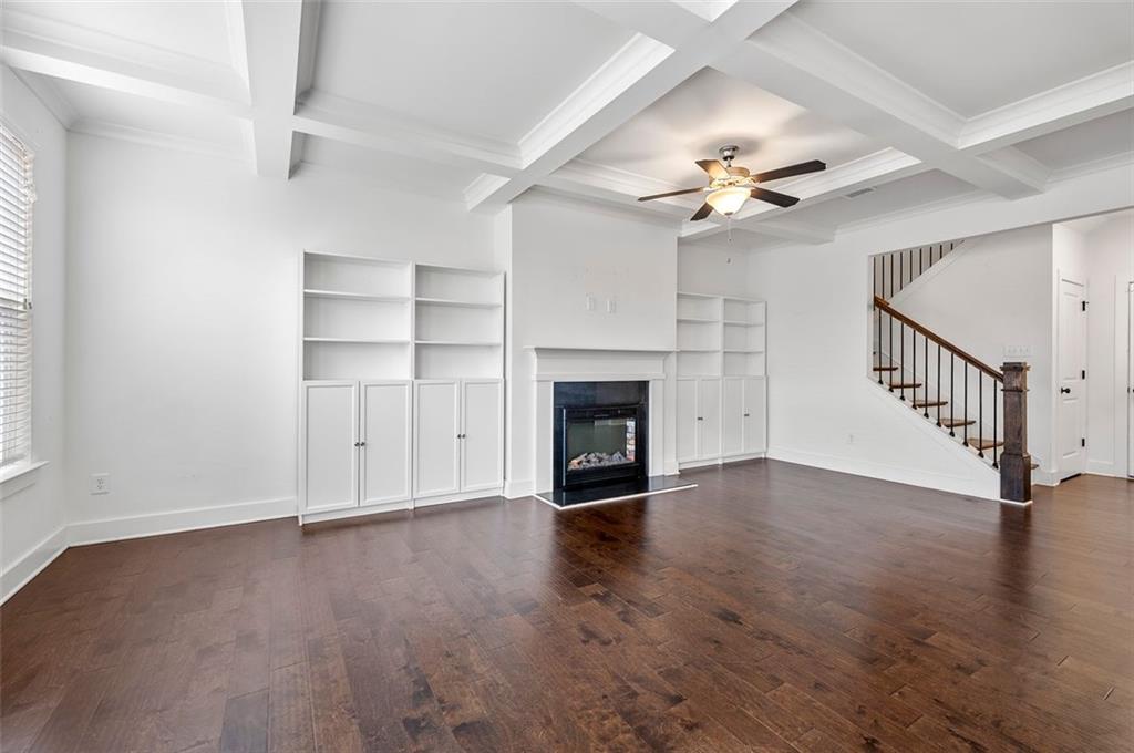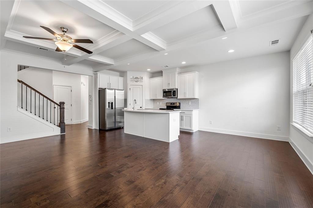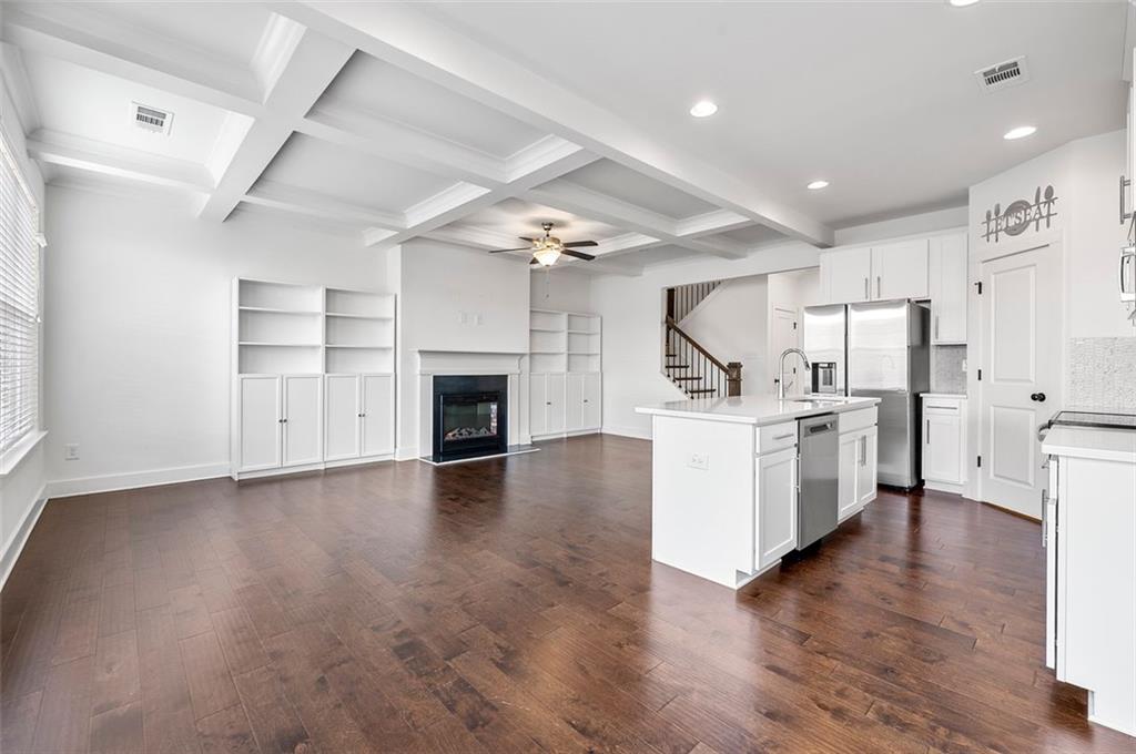 Stunning Modern Townhouse with Luxurious Upgrades This gorgeous three-year-old townhouse offers 3 bedrooms, 2.5 bathrooms, and a thoughtfully designed open-concept layout that seamlessly blends comfort and modern style. On the main level, engineered wood floors extend throughout, leading to a gourmet kitchen featuring quartz countertops, 42-inch trending white cabinets, stainless steel appliances, a walk-in pantry, and a spacious island—perfect for entertaining. The family room is a cozy yet sophisticated space, complete with a fireplace, built-ins, and an elegant coffered ceiling, creating a warm and inviting ambiance. Upstairs, the owner’s suite is a private retreat with a tray ceiling, oversized walk-in closet, and a spa-like ensuite bath boasting a double vanity, soaking tub, and separate shower. Two additional well-sized bedrooms and a guest bathroom provide ample space for family or guests, while the conveniently located laundry room adds extra ease to daily living. Step outside to enjoy your private fenced-in backyard and patio, an ideal space for relaxation. The home also includes an attached two-car garage for added convenience. Modern smart home features and a security system enhance both comfort and peace of mind. Located near shopping, dining, parks, and major highways, this beautiful townhome offers the perfect combination of style, convenience, and prime location!