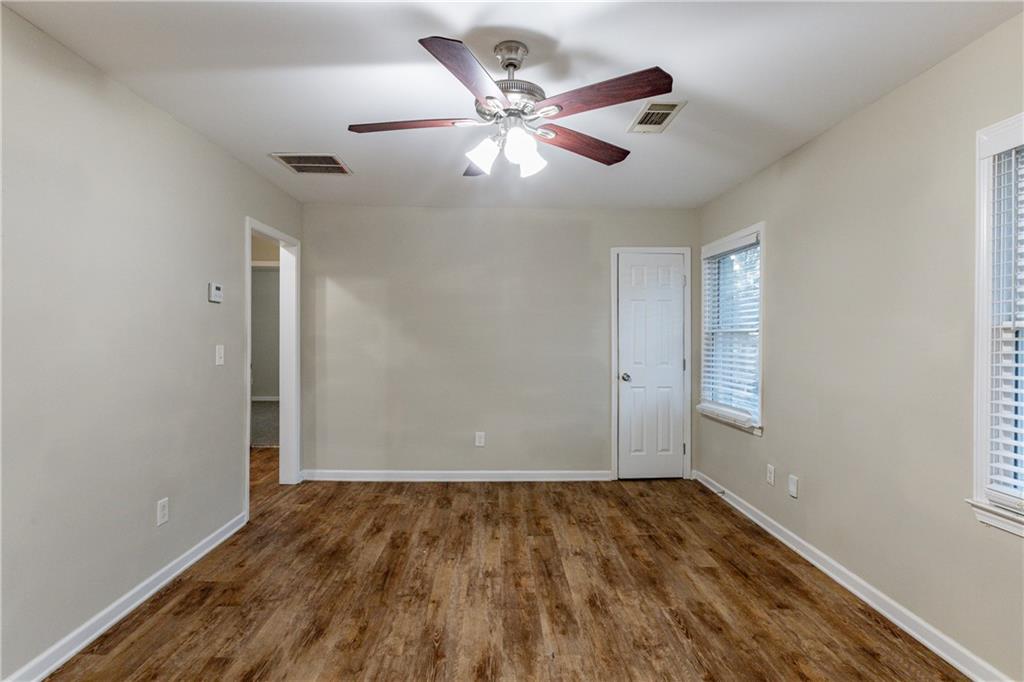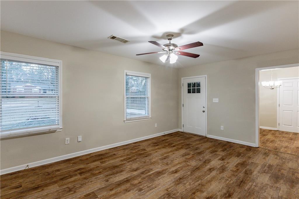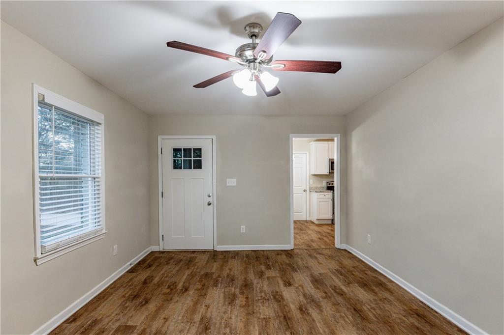 Welcome to this beautifully maintained 4-bedroom, 2-bathroom home offering comfort, style, and convenience all on one level. The open-concept floor plan boasts white cabinetry, stunning stone countertops, and stainless steel kitchen appliances, creating a modern and functional kitchen space. Enjoy the blend of hardwood and carpeted flooring, adding warmth and elegance throughout the home. The primary suite provides a peaceful retreat, while the additional bedrooms offer flexibility for guests, a home office, or more. Step outside to a large backyard, perfect for entertaining, gardening, or relaxing. The front porch adds curb appeal and a cozy space to enjoy your morning coffee. With a driveway for ample parking, this home is both practical and inviting.