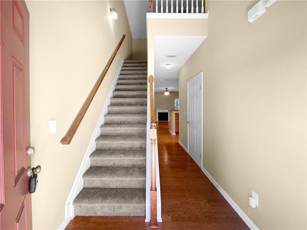 Welcome to this inviting 3-bedroom, 2.5-bathroom home in a prime Lawrenceville location! As you step inside, the foyer provides a direct view into the spacious family room, the true heart of the home, featuring a cozy fireplace and an effortless flow into the kitchen and dining area. The well-appointed kitchen offers stained cabinets, a tiled backsplash, a breakfast bar, and stainless-steel appliances, making it both stylish and functional. The separate dining area is perfect for hosting meals or gatherings. Upstairs, the primary suite boasts a tray ceiling, a walk-in closet, and a spa-like bath with a double vanity, separate tub, and shower. Two additional bedrooms share a full bath. A loft area provides the perfect flex space—ideal for a home office or playroom. Convenient upstairs laundry with washer and dryer included. Fresh new carpet throughout! Located just minutes from shopping, restaurants, schools, and parks, with easy access to I-85, Sugarloaf Parkway, and Ronald Reagan Parkway. Don't miss out on this fantastic home!