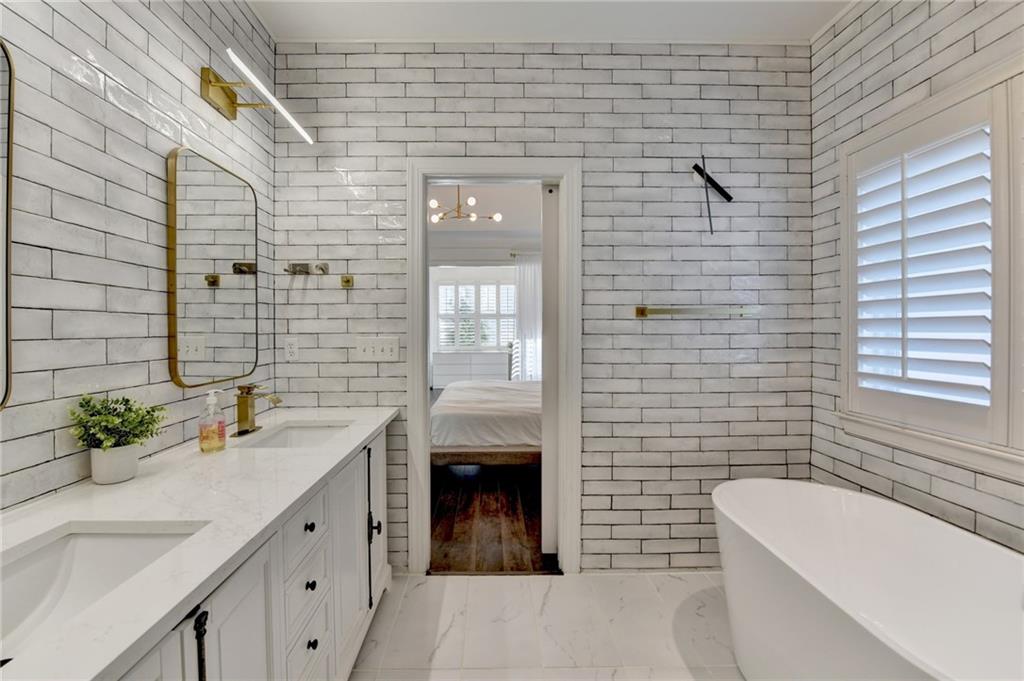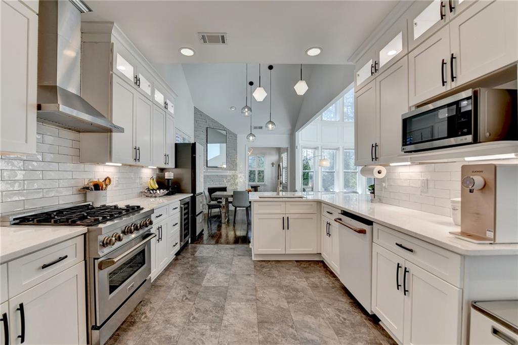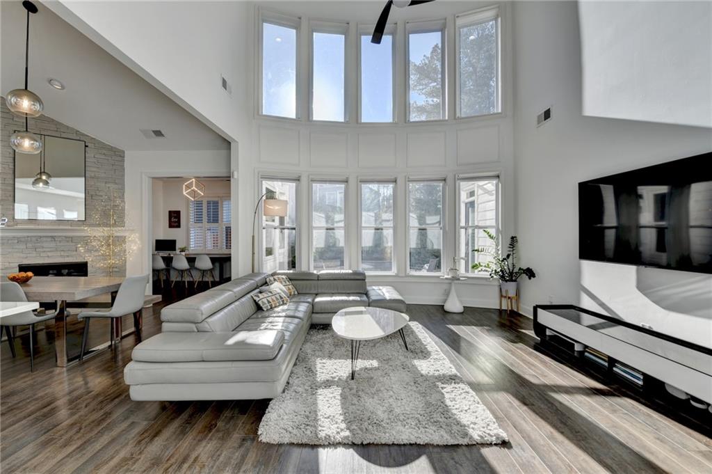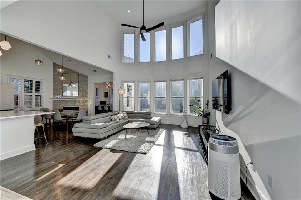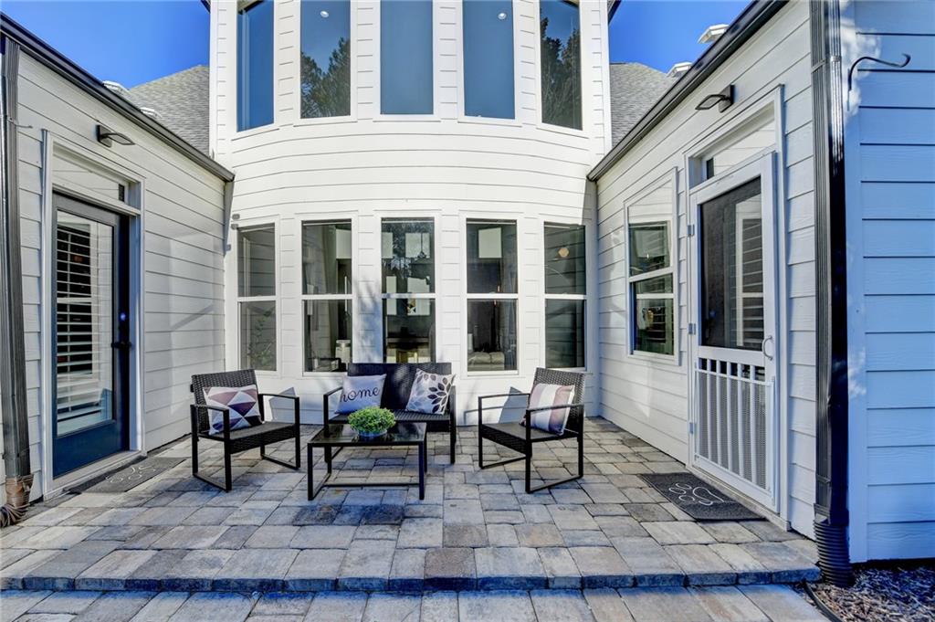 Completely recently renovated and meticulously maintained master on main home in Sharon/South Forsyth HS district. Situated on a quiet cul-de-sac, you will be greeted by lush landscaping showcasing a beautiful Japanese maple with new 2500-watt LED floodlights, Bermuda grass with irrigation and drainage system. White painted brick facade welcomes you to a covered entry and dramatic two-story foyer with new lighting throughout the home. Beautiful white kitchen, designed by an Atlanta professional chef and restaurateur. Enjoy the Z-line commercial range and convection oven, top of the line white quartz countertops with farmhouse sink, upgraded subway tile backsplash, high end cabinet accents with can lighting with top glass doors. The counter height bar is open to the breakfast nook with white stacked stone fireplace leading to the cozy sunroom. Plantation shutters showcase the newer windows throughout the entire home. The master bathroom is a true sanctuary, large free-standing tub, frameless glass shower, custom new quartz double vanity with brass mirrored medicine cabinets. The walk-in master closet is truly enviable and the bedroom itself boasts a sitting room with a private exit to the backyard oasis. Once outside, the massive paver patio is perfect for entertaining while the kids and dog play on the zoysia sod. LOW monthly HOA covers trash, lawn maintenance and community pool!