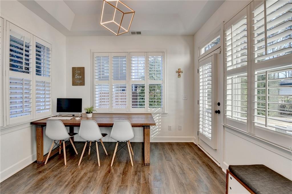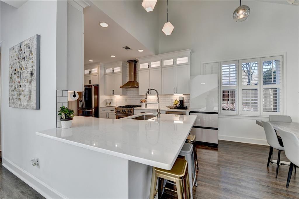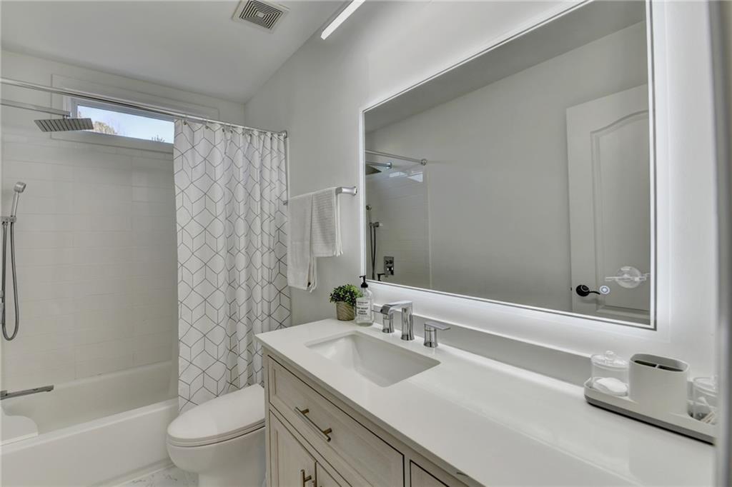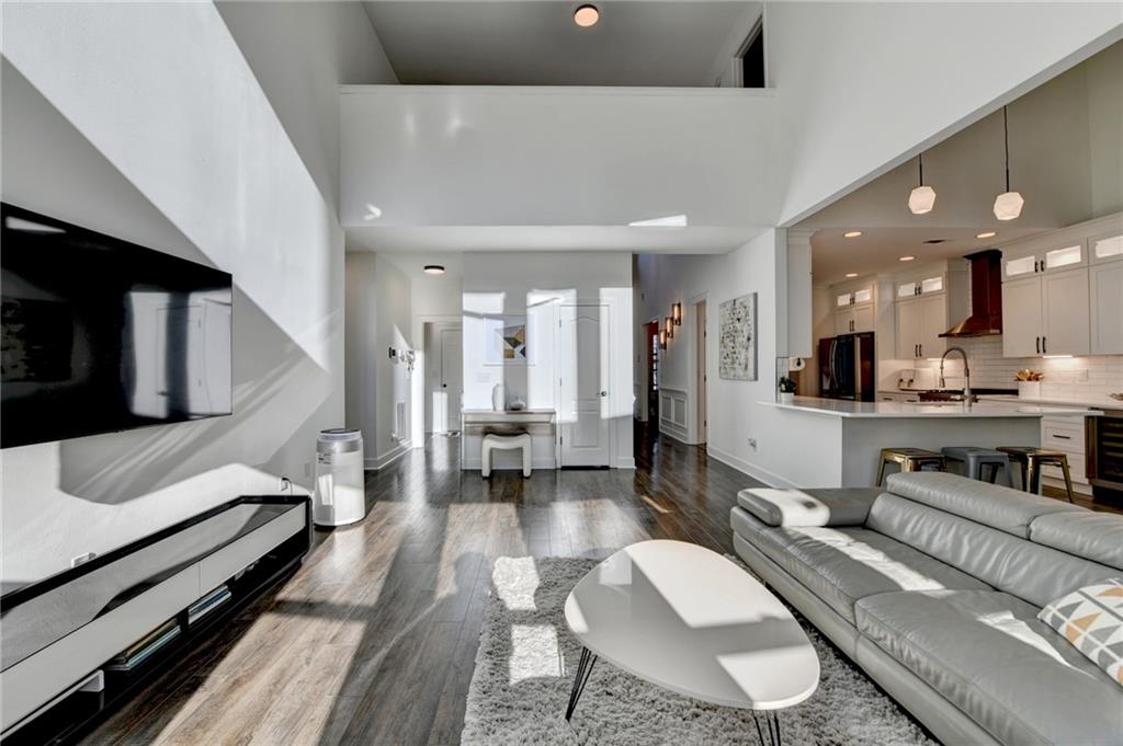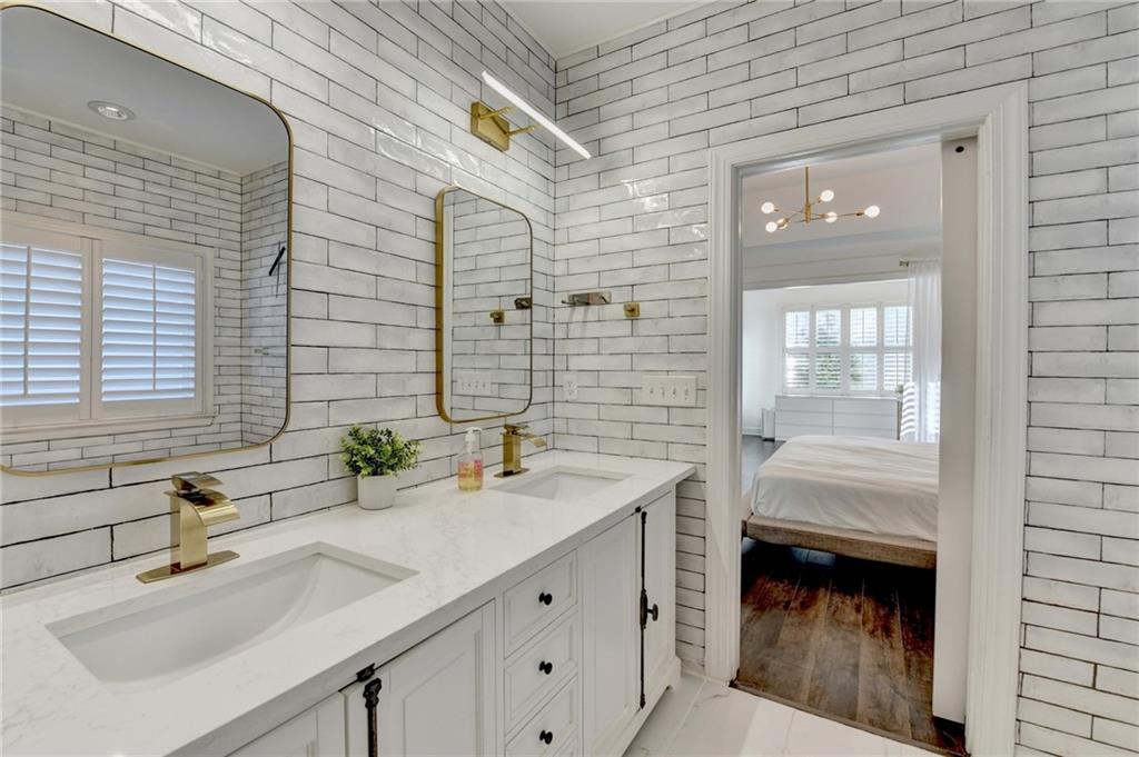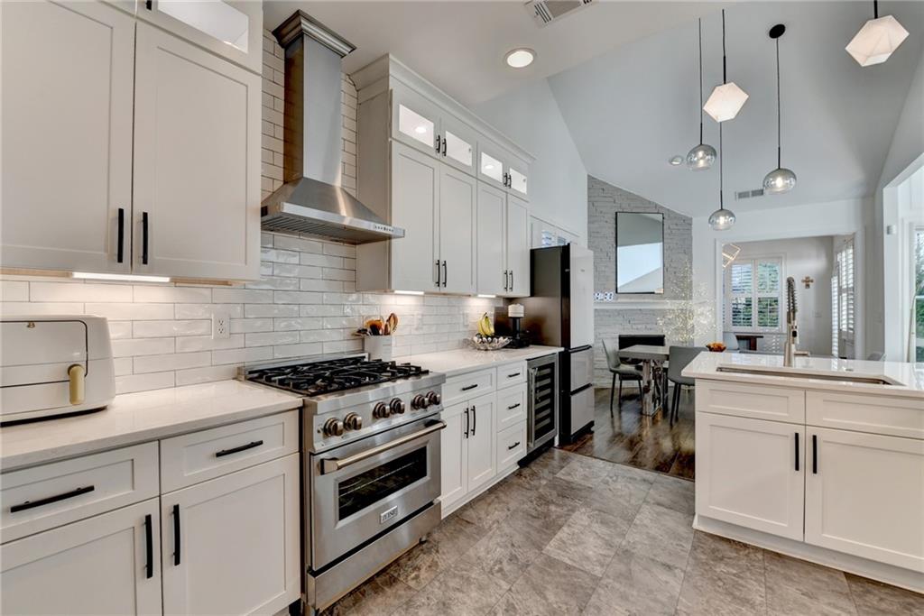 Completely recently renovated and meticulously maintained master on main home in Sharon/South Forsyth HS district. Situated on a quiet cul-de-sac, you will be greeted by lush landscaping showcasing a beautiful Japanese maple with new 2500-watt LED floodlights, Bermuda grass with irrigation and drainage system. White painted brick facade welcomes you to a covered entry and dramatic two-story foyer with new lighting throughout the home. Beautiful white kitchen, designed by an Atlanta professional chef and restaurateur. Enjoy the Z-line commercial range and convection oven, top of the line white quartz countertops with farmhouse sink, upgraded subway tile backsplash, high end cabinet accents with can lighting with top glass doors. The counter height bar is open to the breakfast nook with white stacked stone fireplace leading to the cozy sunroom. Plantation shutters showcase the newer windows throughout the entire home. The master bathroom is a true sanctuary, large free-standing tub, frameless glass shower, custom new quartz double vanity with brass mirrored medicine cabinets. The walk-in master closet is truly enviable and the bedroom itself boasts a sitting room with a private exit to the backyard oasis. Once outside, the massive paver patio is perfect for entertaining while the kids and dog play on the zoysia sod. LOW monthly HOA covers trash, lawn maintenance and community pool!