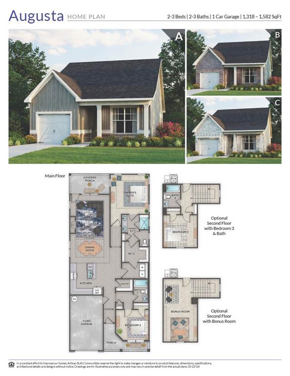 Step into 71 Colonial Terrace, where carefree living, stylish design, and 55+ fun come together in the gated community of Heritage Pointe at The Georgian! The Augusta A plan makes everyday living feel like a treat, with a layout perfect for both relaxing and entertaining. The kitchen is a standout, boasting sleek stainless steel appliances, a gas stove, a spacious center island, Arctic White Quartz countertops, and gorgeous two-tone cabinetry in Cotton and Twilight — ideal for anything from morning coffee to lively dinner parties. The open-concept great room invites you to kick back and unwind, offering plenty of space to relax, host friends, or enjoy a quiet evening at home. The owner’s suite features a beautifully detailed ceiling, a spacious walk-in closet, and a spa-inspired bath with an oversized tiled shower, built-in bench, and raised Quartz vanities that make mornings feel like a luxury. Luxury Vinyl Plank flooring in “Modeled Oak” delivers a stylish, low-maintenance look throughout the main living areas, while plush carpet in the bedrooms adds extra comfort. Step outside to your covered back patio — the perfect setting for morning coffee, afternoon reading, or evening wine. Upstairs, a flexible bonus space is ready for guests, hobbies, or a cozy home office. Plus, a one-car garage with added storage means plenty of space for your essentials. Life here gets even better with exclusive access to the private, adult-only amenity featuring a beautiful clubhouse, sparkling pool, and pickleball courts — the ultimate spot to relax, connect, and embrace a resort-style vibe. And when it comes to fun, The Georgian takes it to the next level with an incredible waterpark — a highlight for grandkids and guests alike! You’ll also enjoy walking trails, a junior-Olympic pool, tennis courts, and beautifully landscaped green spaces, making every day feel like a getaway. Ready to make the move? Schedule your private tour today and discover the best of 55+ living at 71 Colonial Terrace!
