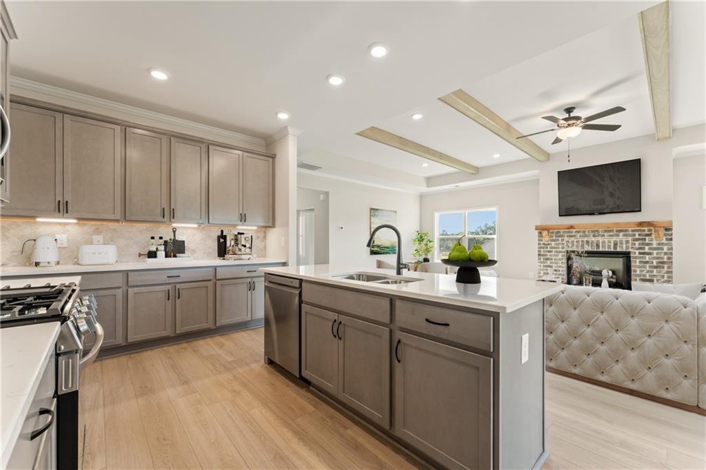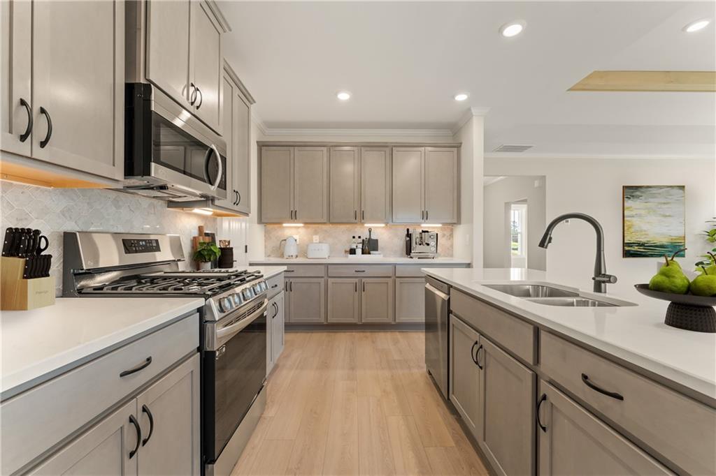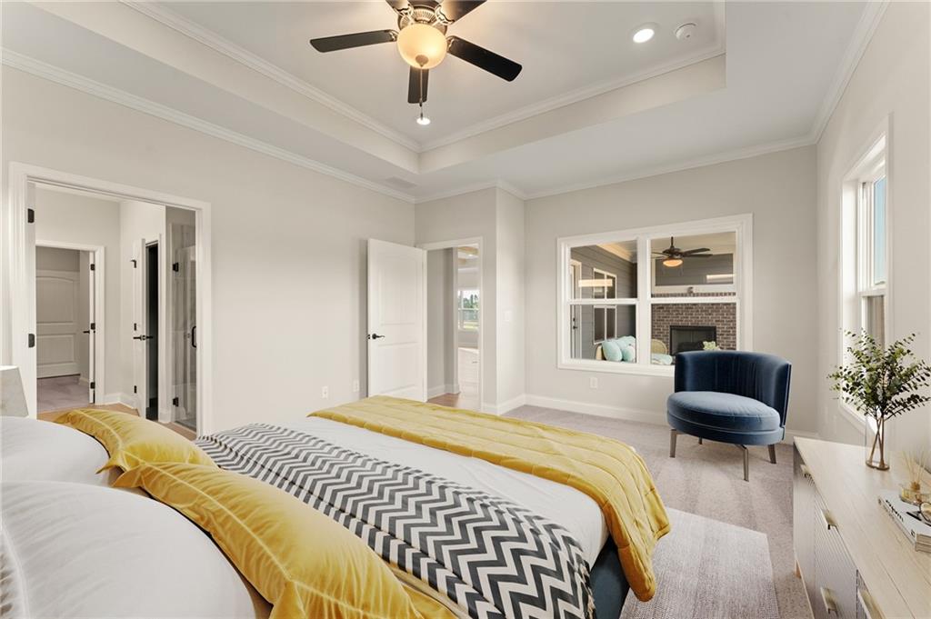 Get ready to fall in love with 48 Masters Drive — a stunning, move-in ready home in the heart of Heritage Pointe at The Georgian, a 55+ gated golf course community where every day feels like a vacation! This Monroe B plan is thoughtfully designed for the way you live, with a kitchen that’s truly the heart of the home. Imagine cooking on your gas stove, surrounded by sleek stainless steel appliances, an oversized island perfect for morning coffee or evening appetizers, Steel Gray cabinets, and dazzling Carrera Breve quartz countertops. The kitchen flows right into the spacious great room, where a cozy fireplace, eye-catching ceiling beams, and upgraded LVP flooring create a space that’s as stylish as it is welcoming — perfect for everything from quiet nights in to lively gatherings with friends. Your owner’s suite is a true retreat, complete with plush carpet, a raised double vanity, and a large tiled shower with elegant glass doors — it’s your personal spa right at home. Upstairs, a bonus room with its own full bath offers incredible flexibility for guests, hobbies, or a media lounge. Step outside and enjoy the fantastic outdoor spaces: a charming covered front porch for morning coffee and a spacious back patio with a stunning brick fireplace — perfect for evening cocktails or weekend cookouts. The backyard will be fully fenced, giving you the ideal setup for pets, gardening, or simply enjoying the outdoors with peace of mind. A two-car garage adds convenience and storage for everything from golf clubs to holiday décor. As a Heritage Pointe resident, you’ll have access to a private, adult-only clubhouse and pool — a social hub for fun, relaxation, and making new friends. And golf lovers, rejoice! The Tom Fazio-designed Frog Golf Course is just next door. You’ll also enjoy all the perks of The Georgian’s resort-style amenities, including scenic walking trails, tennis courts, a junior-Olympic pool, and beautiful green spaces. Ready to make 48 Masters Drive your next great adventure? Come see why this home is where comfort, style, and an amazing lifestyle all come together!