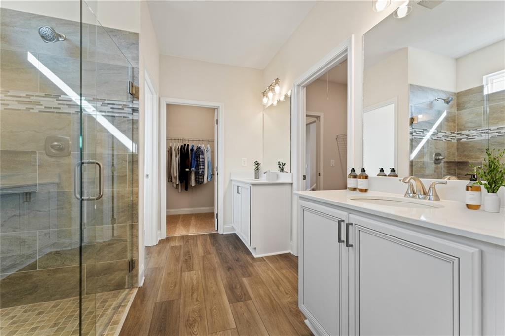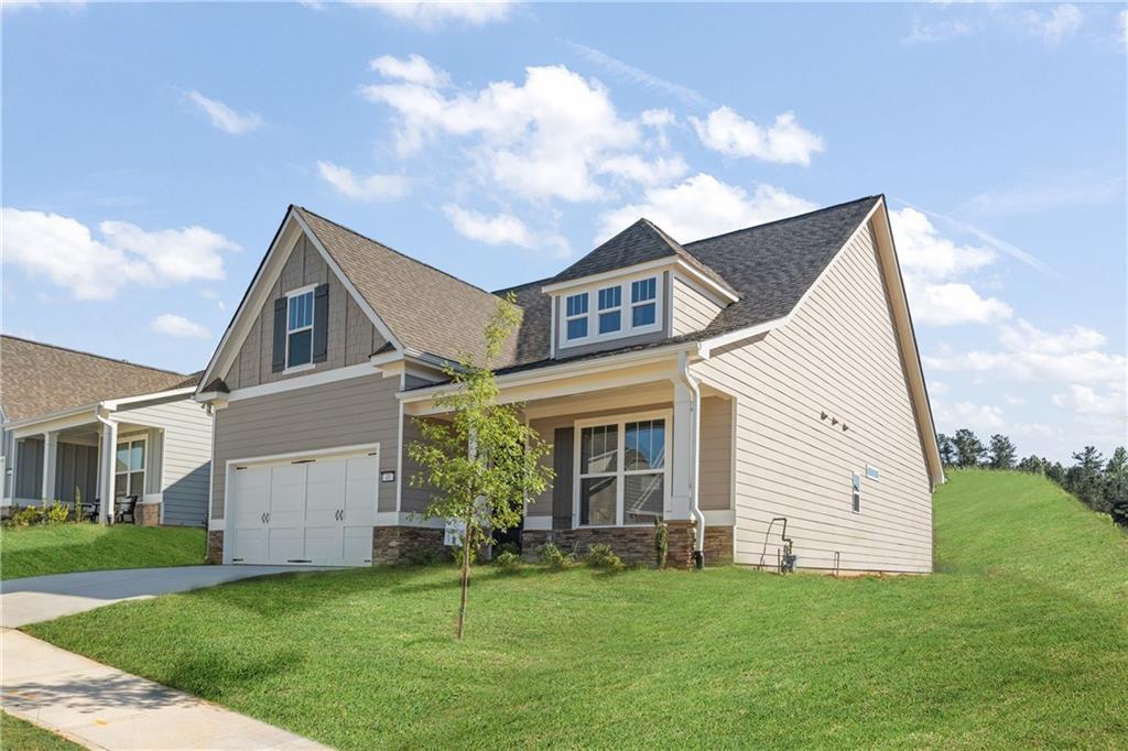 Welcome to 49 Masters Drive, a home that perfectly blends style, comfort, and easy living in the exclusive 55+ gated golf course community of Heritage Pointe at The Georgian. This Rabun A plan offers 1,997 square feet of thoughtfully designed space, featuring three bedrooms and two bathrooms, plus all the upgrades that make life feel a little more luxurious. The heart of the home is the stunning open kitchen, where cooking and entertaining come together seamlessly. High-quality LG appliances, an oversized center island, Carrara Breve Quartz countertops, and beautifully finished cabinetry create a space that’s as functional as it is beautiful. Whether you're prepping meals for a gathering or just enjoying your morning coffee, this kitchen is built for the way you live. The owner’s suite is a true retreat, featuring a coffered ceiling and private access to the covered back patio. The ensuite bathroom is designed with relaxation in mind, offering two walk-in closets, Arctic White Quartz countertops, a large tiled shower with a built-in bench, and raised toilets for added convenience. Need extra space? The upstairs bonus bedroom is perfect for guests, a hobby room, or even a quiet home office. Throughout the home, Level 3 Luxury Vinyl Plank flooring in Warwick Maple - Epitome adds warmth and durability, covering the great room, kitchen, bathrooms, foyer, and laundry room. Step outside to enjoy your 12x20 covered patio, the perfect spot for unwinding with a book, sipping a glass of wine, or hosting friends for an evening gathering. A two-car garage with additional storage space ensures there’s plenty of room for your everyday essentials. One of the most exciting aspects of living at Heritage Pointe is the private, adult-only clubhouse and pool, designed exclusively for 55+ residents. This brand-new amenity will offer an upscale, resort-style space to relax, connect, and enjoy a true sense of community. Whether you're looking to unwind by the pool, gather with neighbors, or take part in social activities, this exclusive facility is tailored to active adults who want to embrace a vibrant and relaxed lifestyle. For golf lovers, Heritage Pointe is adjacent to The Frog Golf Course, a Tom Fazio-designed masterpiece, offering stunning views and one of Georgia’s premier golf experiences just outside your door. Residents also enjoy access to the resort-style amenities of The Georgian, including scenic walking trails, a junior-Olympic pool, tennis courts, and beautifully landscaped green spaces. Don’t miss the opportunity to own a move-in-ready home in one of the most sought-after active adult communities. Schedule your private tour today and experience the best of 55+ living at 49 Masters Drive. Prices are subject to change without notice.