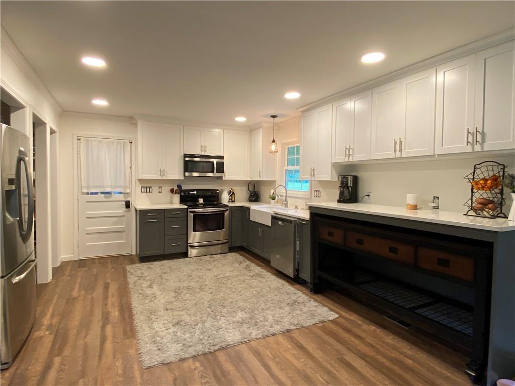 Amazing INVESTMENT as both COMMERCIAL/MIXED USE as well as super large residence with up to six bedrooms to meet the strong STUDENT HOUSING need around KSU. Opportunity for both owner occupants as well as investors. The home was renovated and sold to an investor for a successful rental of 5 years at $3,000 per month. This beautiful mostly updated home is located steps from the city development that runs from Downtown Kennesaw to Jiles Rd and will include enhanced connectivity, walkable commercial & mixed-use opportunities. This property has a fabulous kitchen with new Shaker style cabinets & stainless steel appliances, quartz counters & generous workspace! This home boasts new flooring throughout, updated lighting, plus Masonry Fireplaces both in great room and the family room. There is a gigantic screened back porch and a very large sunroom with its own cooling unit. There are two master suites and 2 bedrooms sharing a hallway bathroom that has been renovated with a tub/shower combination. The two masters have only showers in their baths. The fifth bedroom was devised as an office but most tenants used it as a guest bedroom. Given a split level configuration, this home is also perfect for a multi generational living arrangement. The family has a full abode while grandparents may feel private on their own level with a second master and a super-sized family room flanked by a fabulous sunroom for arts and crafts or a real office. This spacious home sits on a huge, flat 1/2 acre lot! Close to fun eateries, shopping, schools, and interstate access to I-75 and I-575.