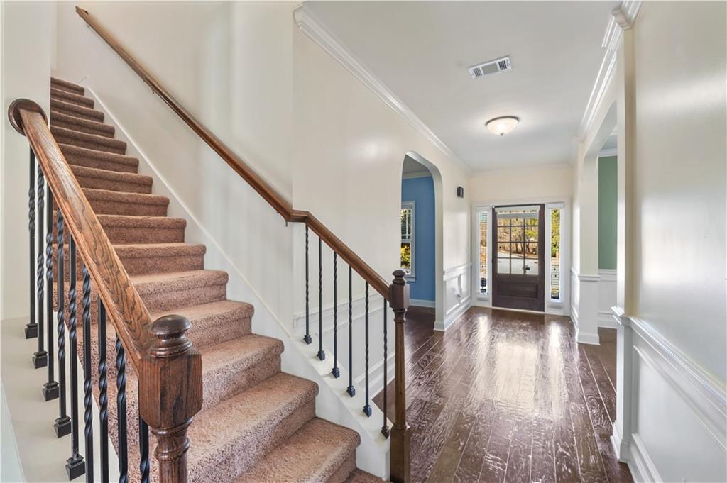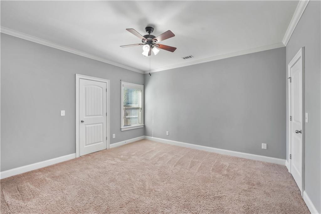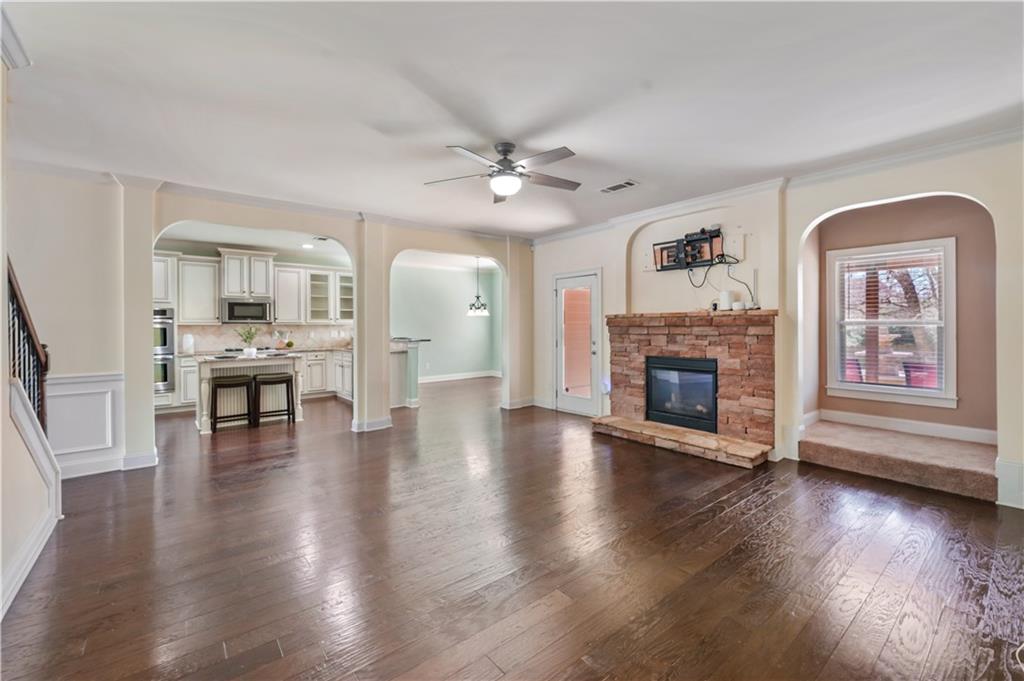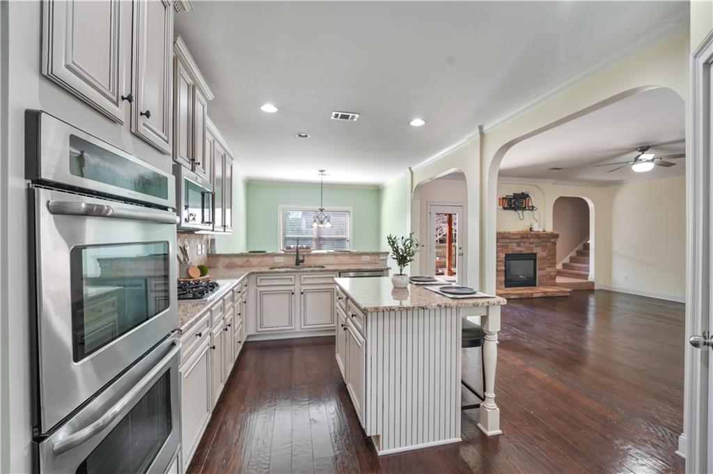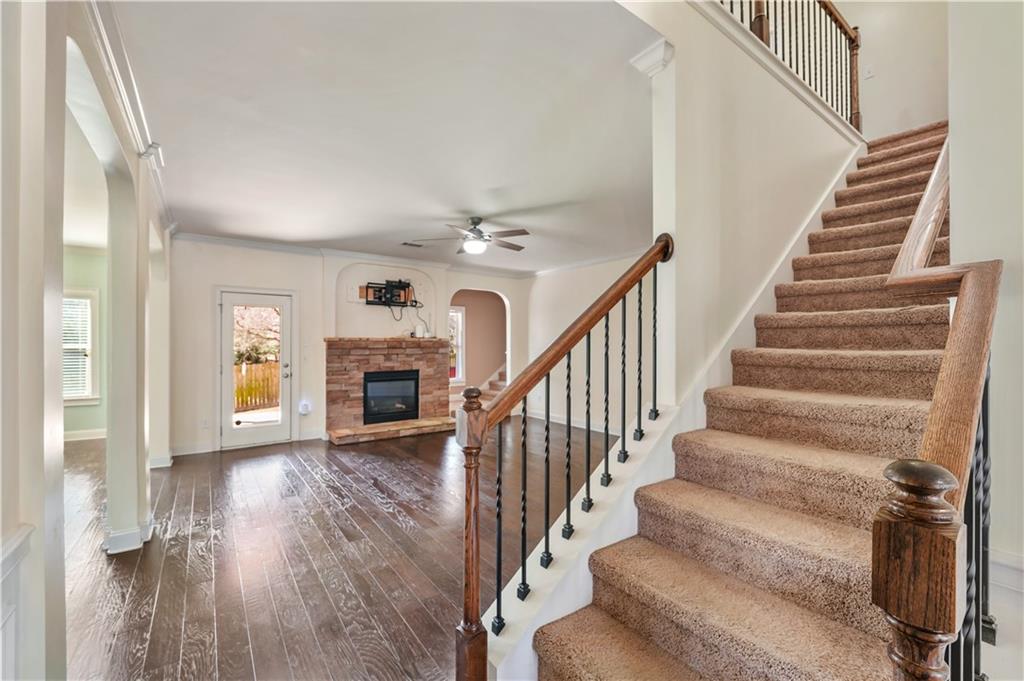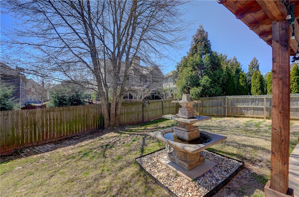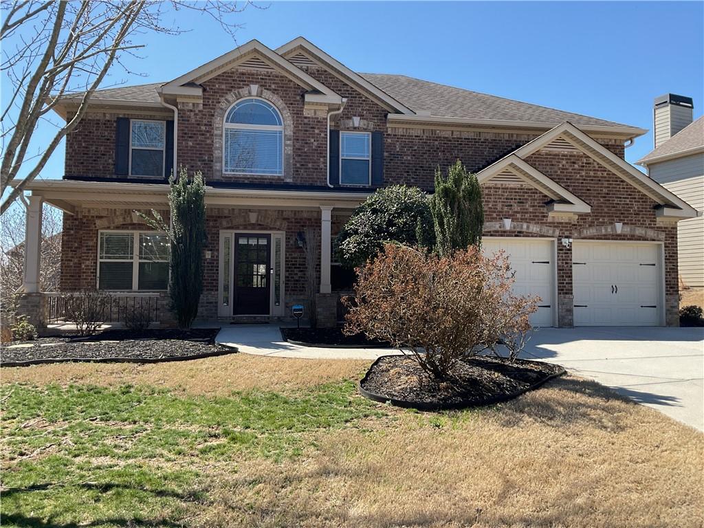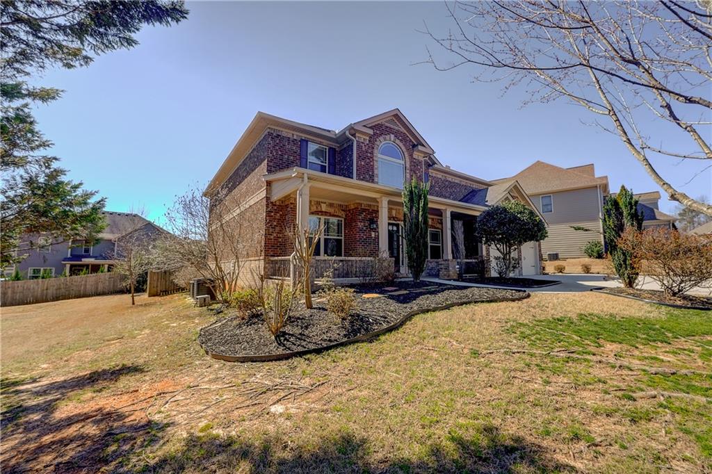 This former model home is loaded with so many upgrades starting with the 3 sides brick exterior and hardwoods throughout the main downstairs living area. You’ll enter through the front porch perfect for morning coffee to the separate dining room with coffered ceilings on your left and living room/office space on your right. Proceed to the open family room with stone fireplace and kitchen. The chef’s kitchen features double ovens, a gas cooktop, microwave and dishwasher with plenty of granite countertops for prepping that perfect meal. It also features a walk-n pantry, separate island and a bar overlooking the breakfast room. Also on the main level is the 5th bedroom with full bath. Take either the front stairs to the upstairs or the back stairs to a private oasis in the primary suite. The oversized primary suite features its own sitting room with fireplace and a primary bath with a luxury tub and shower. To top off the primary suite, there are his and her closets. Three other bedrooms and two baths finished off the upstairs. Enter the backyard from the family featuring a covered patio and fenced backyard great for those relaxing evenings listening to the water fountain. This is definitely a must see being close to GA400, shopping and so much more.
