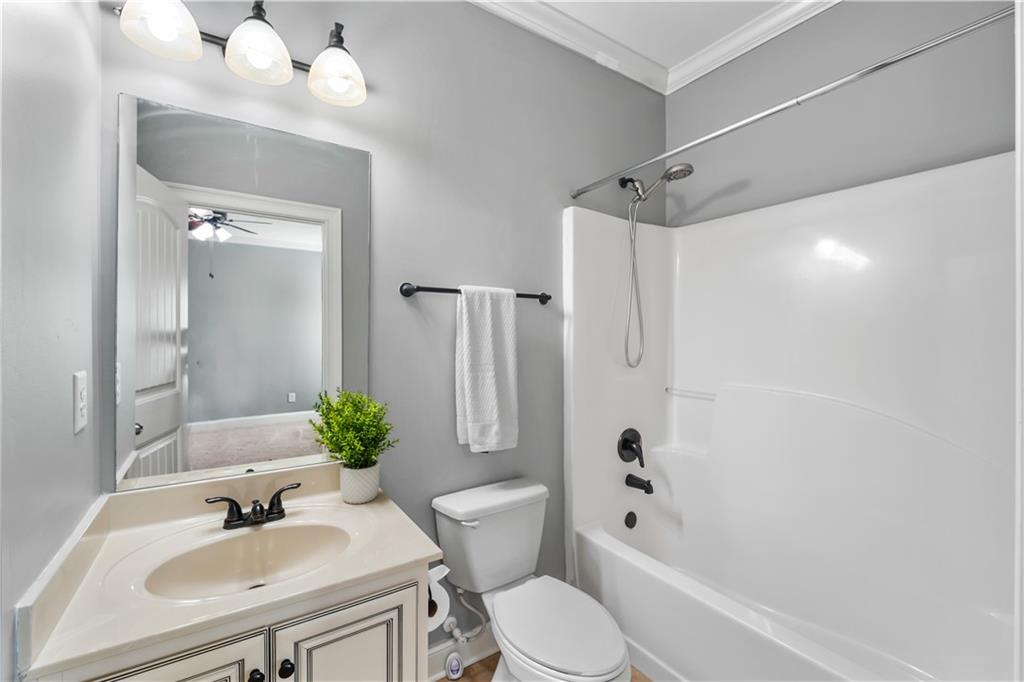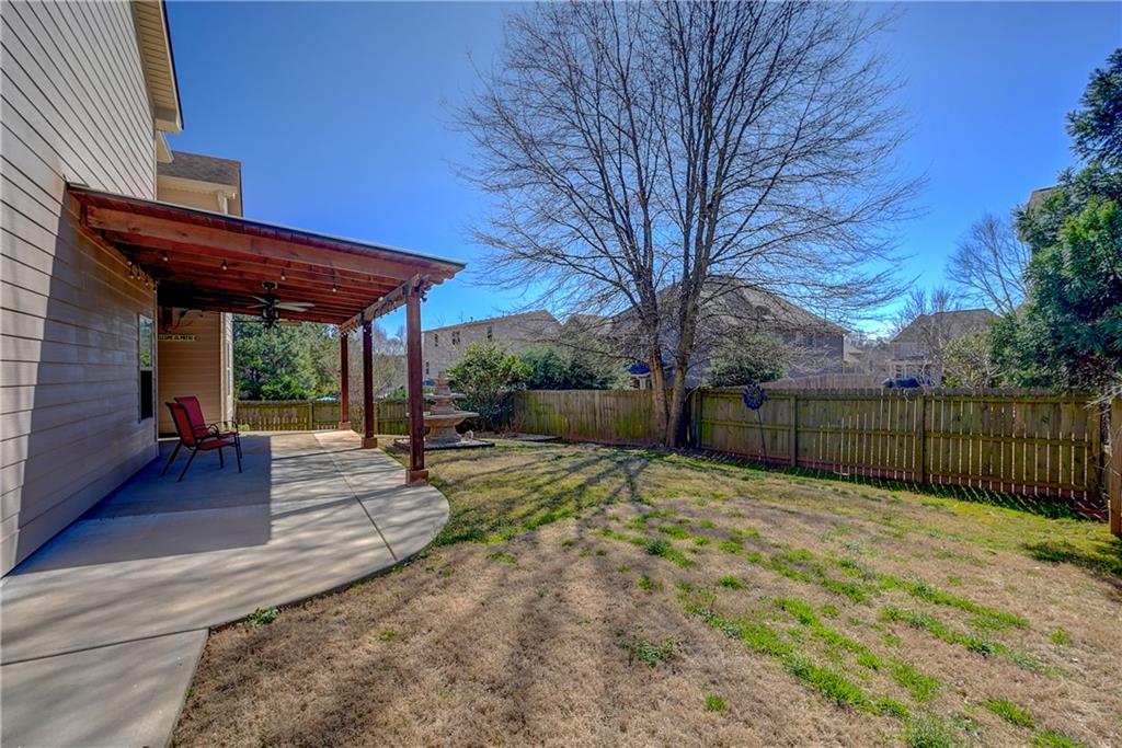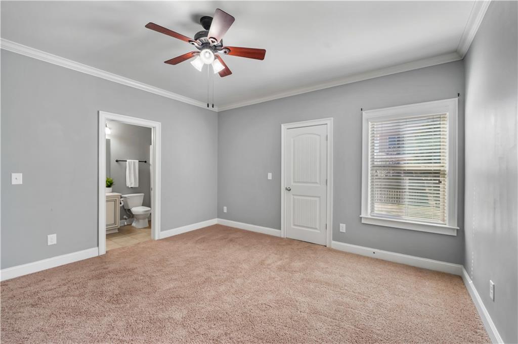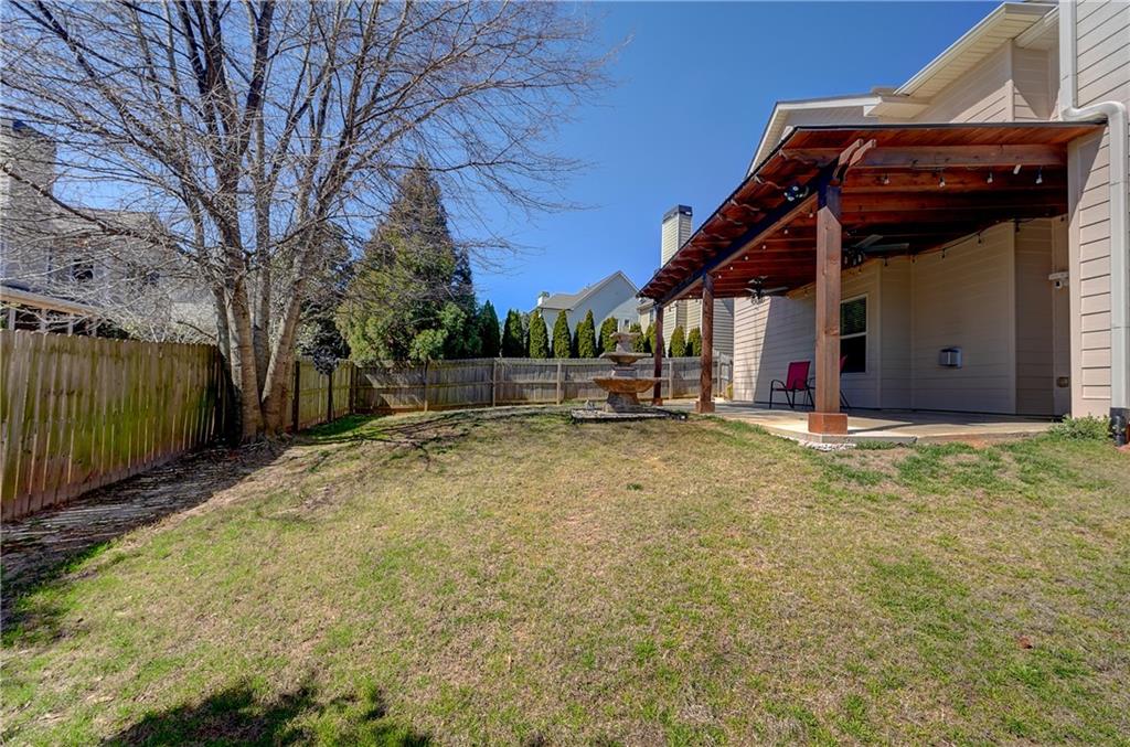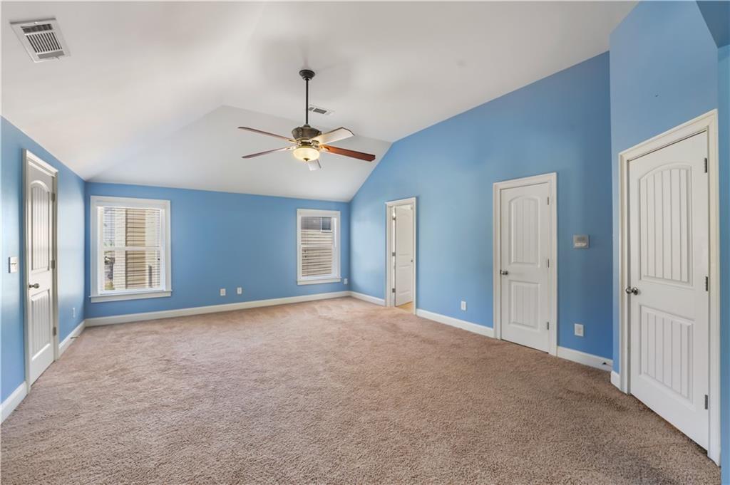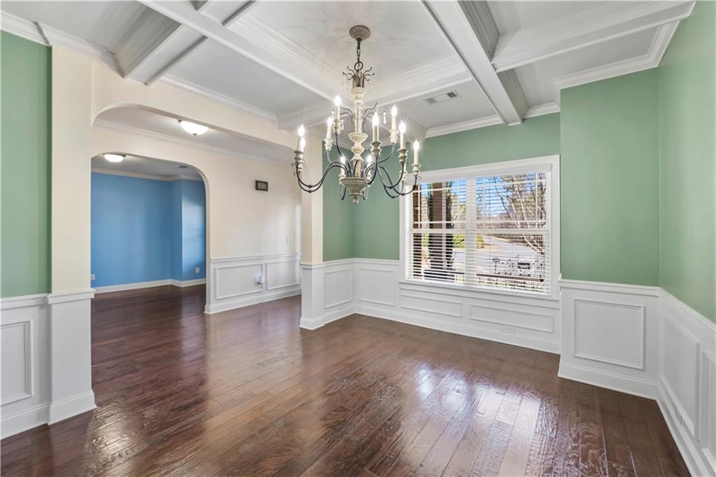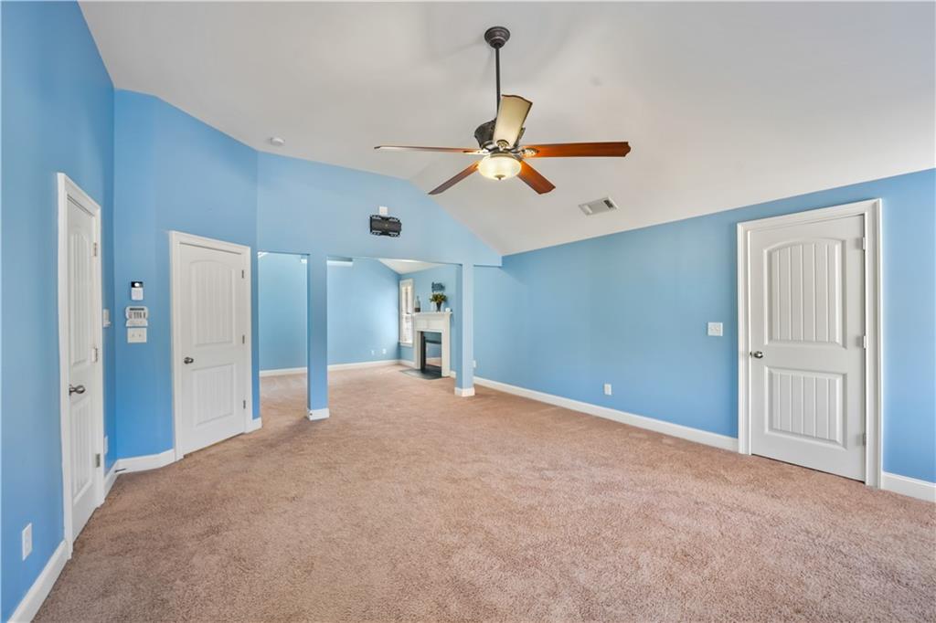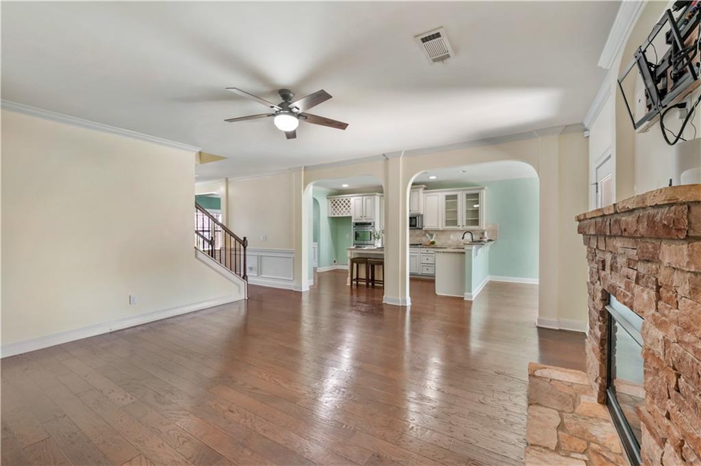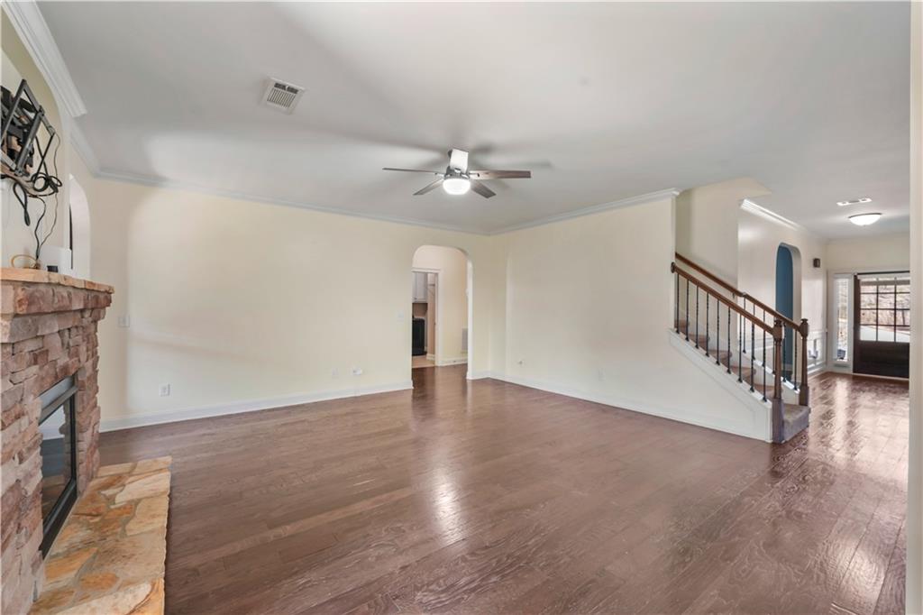 This former model home is loaded with so many upgrades starting with the 3 sides brick exterior and hardwoods throughout the main downstairs living area. You’ll enter through the front porch perfect for morning coffee to the separate dining room with coffered ceilings on your left and living room/office space on your right. Proceed to the open family room with stone fireplace and kitchen. The chef’s kitchen features double ovens, a gas cooktop, microwave and dishwasher with plenty of granite countertops for prepping that perfect meal. It also features a walk-n pantry, separate island and a bar overlooking the breakfast room. Also on the main level is the 5th bedroom with full bath. Take either the front stairs to the upstairs or the back stairs to a private oasis in the primary suite. The oversized primary suite features its own sitting room with fireplace and a primary bath with a luxury tub and shower. To top off the primary suite, there are his and her closets. Three other bedrooms and two baths finished off the upstairs. Enter the backyard from the family featuring a covered patio and fenced backyard great for those relaxing evenings listening to the water fountain. This is definitely a must see being close to GA400, shopping and so much more.
