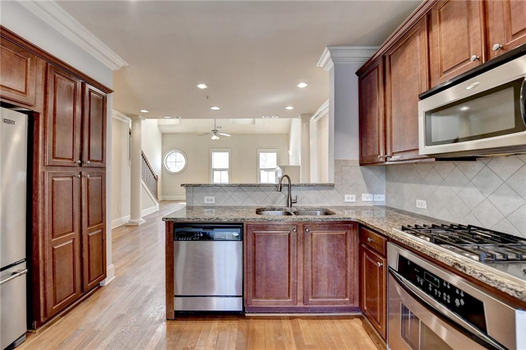 Stunning 3-bedroom, 3-bath home featuring the largest floor plan in the community! This beautifully designed residence offers a versatile loft space, perfect for a home office, media room, or additional lounge area. Step inside to an open-concept layout with modern finishes, abundant natural light, and high ceilings. The gourmet kitchen boasts premium stainless steel appliances, granite countertops, balcony. The luxurious primary suite features a spa-like bath and a spacious walk-in closet. Located in the heart of Sandy Springs, this home is just minutes from top-rated schools, shopping, dining, and easy access to major highways, one block from the Mercedes Benz Headquarters, restaurants and more. Enjoy the best of suburban living with urban convenience!