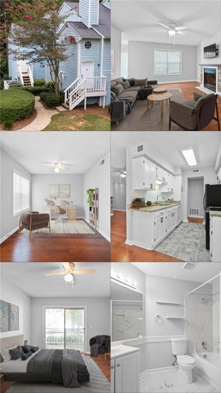 FHA APPROVED! Newly painted and improved!!! Tucked away in the back of the highly desirable Glenleaf Condominiums, this adorable and charming ground-level, step-less unit offers one bedroom, one bathroom, and an additional office space—perfect for remote work or a cozy reading nook. The updated kitchen features stone countertops, a stylish tile backsplash, and crisp white cabinets, complemented by a sun-filled breakfast area surrounded by windows that invite an abundance of natural light. New windows in the kitchen enhance both aesthetics and energy efficiency. The spacious living room features a gas-start fireplace, perfect for keeping you cozy during the winter months. The spacious hallway laundry area provides ample storage, while the renovated bathroom boasts a new toilet and fresh tilework in the tub/shower combo. The primary bedroom includes a walk-in closet and sliding doors leading to the front balcony, offering a private outdoor retreat with a convenient view of the parking lot. Glenleaf is a vibrant community where the association organizes a variety of social activities, making it easy to connect with your neighbors! Residents of Glenleaf Condominiums enjoy well-maintained amenities, including tennis courts/pickleball courts, a swimming pool with cabana and a relaxing grilling station, and multiple pet areas with stations throughout the community. Plus, you’re just moments away from Peachtree Corners Town Center, The Forum, and major highways for effortless commuting and entertainment. Don't miss this fantastic opportunity! Schedule your showing today.