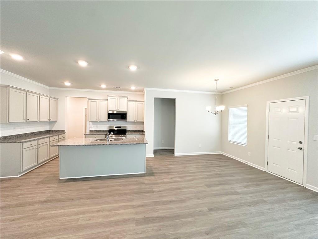 - KitchenEat-in Kitchen, Kitchen Island, Pantry, Stone Counters, View to Family Room