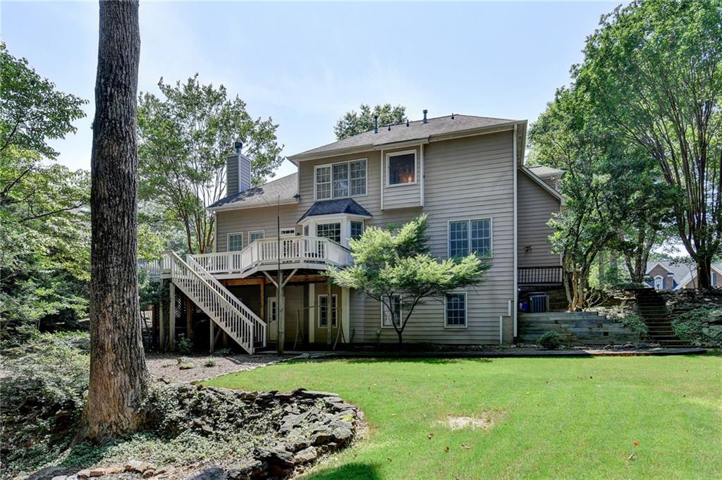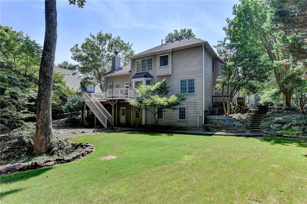 THIS IS YOUR CHANCE to get into the fabulous Chattahoochee River Club! The location within the community is excellent! WALK TO SCHOOLS AND AMENITIES! Incredible value on full basement with level backyard **Walking distance to top-rated schools and stroll to the community pool and tennis courts**This home is meticulously maintained and you will notice immediately! Light natural hardwood floors on main with solid oak cabinetry! Granite countertops! The floorplan is excellent and flows for entertaining. The back BBQ deck has private views! Step into the foyer and take in the two-story ceilings in the living room. The family room offers a bright, open space for entertaining with stunning views of the private wooded yard. The kitchen features a brand new installed stainless double oven and stainless gas cooktop! A bedroom option on the main floor is perfect guest room or home office. Upstairs, you will find the spacious primary suite along with three additional bedrooms including oversized loft bedroom. The large, unfinished basement is already stubbed for a bathroom, offering endless possibilities for expansion. WALK OR GOLF CART TO COMMUNITY SCHOOLS! ACCESS to the Chattahoochee River on miles of trails surrounding this river community that includes acres of protected land. Chattahoochee River club boasts two community pools, swim team, adult quiet pool, baseball field, amphitheater, 6 tennis courts, pickleball, immaculate clubhouse with meeting rooms & gym. You can walk & hike along trails to the river, Lake Sidney Lanier, Buford Dam. The trout hatchery and nature preserve is within the community! Cue the deer...they are everywhere! Along with rabbits, many varieties of birds and wildlife surround this nature preserve community. The ball park and clubhouse is a community gathering place where holidays draw BBQ's, fun social events, & movies or camping on the lawn. Walk or ride golf cart to our platinum ranked schools. Convenient to shopping, restaurants, and the south end of Lake Lanier. WELCOME HOME just 4 miles from Northside Forsyth Hospital.
