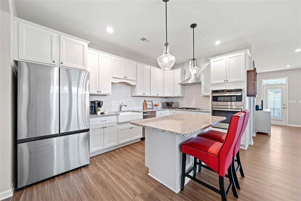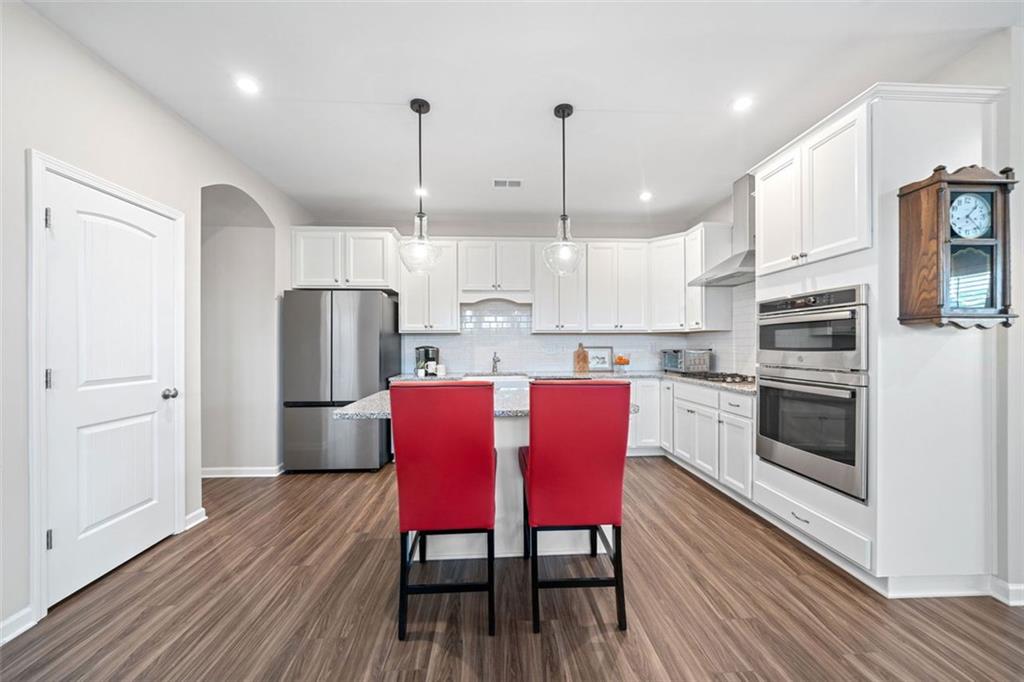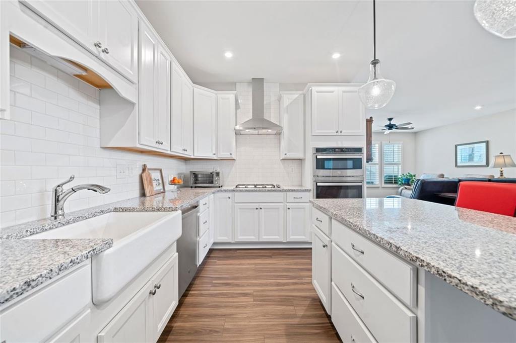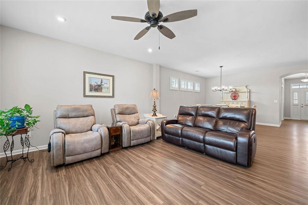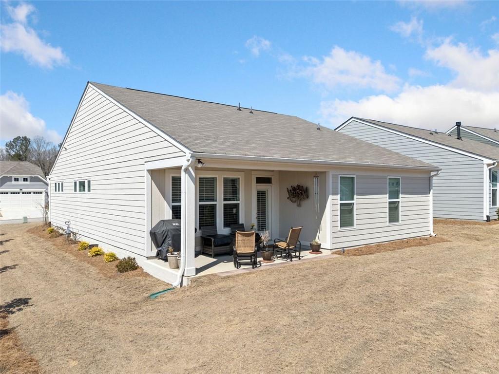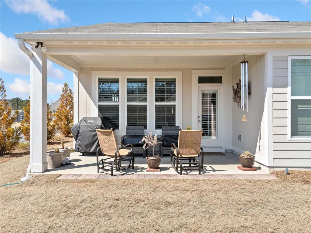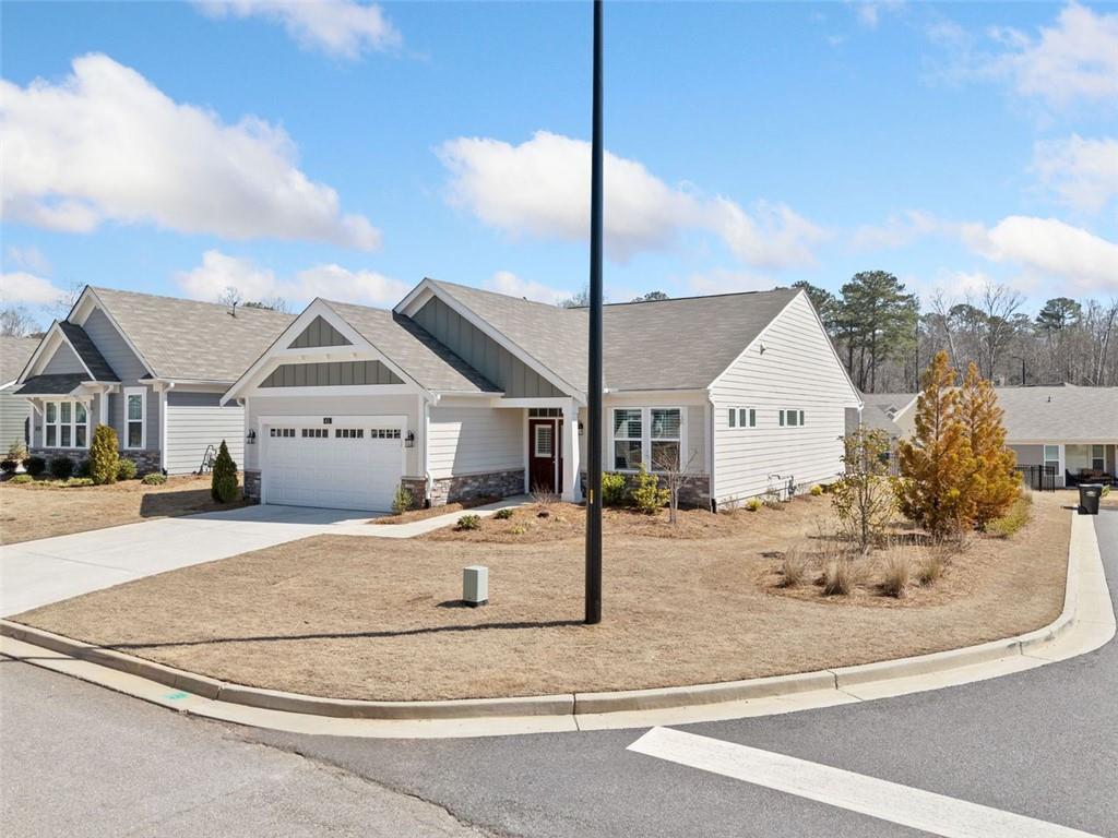 Motivated Seller!!! Exceptional, upgraded residence situated in the sought-after 55+ active adult community of Poplar Place. This stunning ranch-style home features an open concept design, luxury vinyl flooring, plantation shutters throughout, designer lighting, and a prime location within the neighborhood. The centrally positioned kitchen serves as the heart of the home, seamlessly connecting to the dining area, great room, and patio, making it perfect for daily living and entertaining. The gourmet kitchen is equipped with high-end dove-tailed soft close cabinets, granite countertops, under-cabinet lighting, a custom stainless steel vent hood, premium stainless appliances, and a spacious island. The private covered patio, accessible from the family room, overlooks the backyard and provides convenient access to the clubhouse amenities. The main floor hosts the owner's suite, which offers privacy and features a wall of windows with easy access to the laundry room and master bath. The spa-like owner's bathroom includes a large custom shower with floor-to-ceiling tile, a frameless shower door, a transom window for natural light, double sinks and complemented by a generous walk-in closet. Additionally, the main floor includes an office space with barn doors, which could serve as an extra TV room or a third bedroom. A guest room with a fully finished bath rounds out the main level. This charming, gated community boasts a nature trail, pickleball and bocce ball courts, a fitness center, sidewalks, streetlights, and a clubhouse with an outdoor terrace. It is conveniently located near shopping, dining, parks, medical facilities, and entertainment options. Poplar Place is also close to popular attractions such as Metromont Shopping Center, year-round swimming at the West Cobb Aquatic Center, and just minutes from the delightful downtown Dallas.