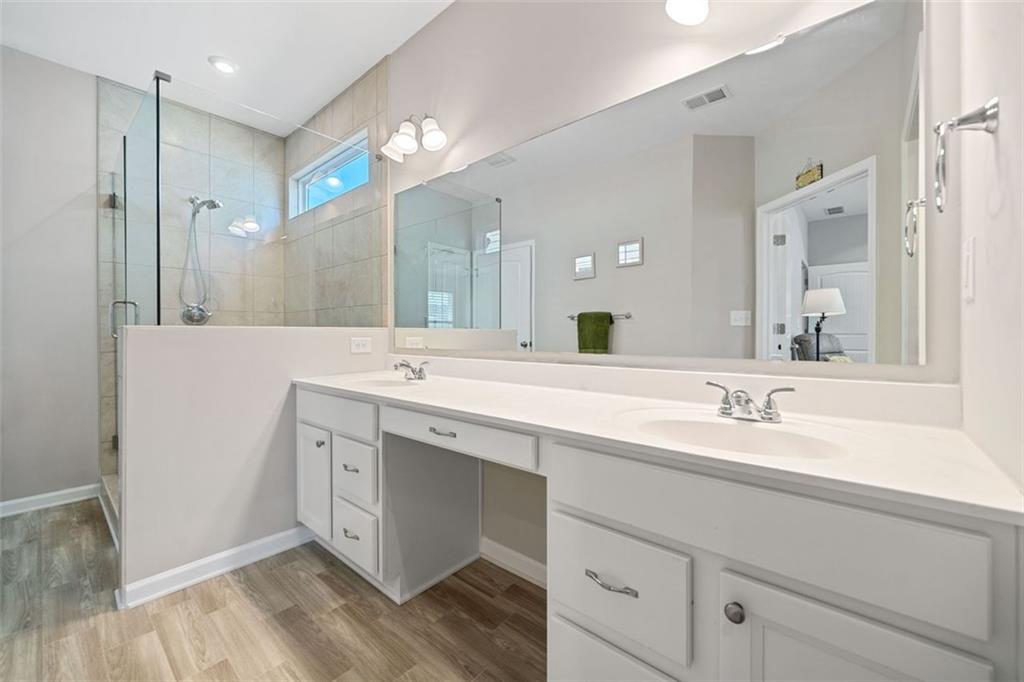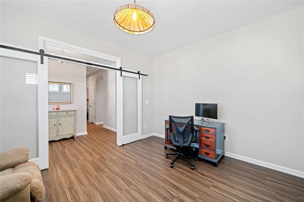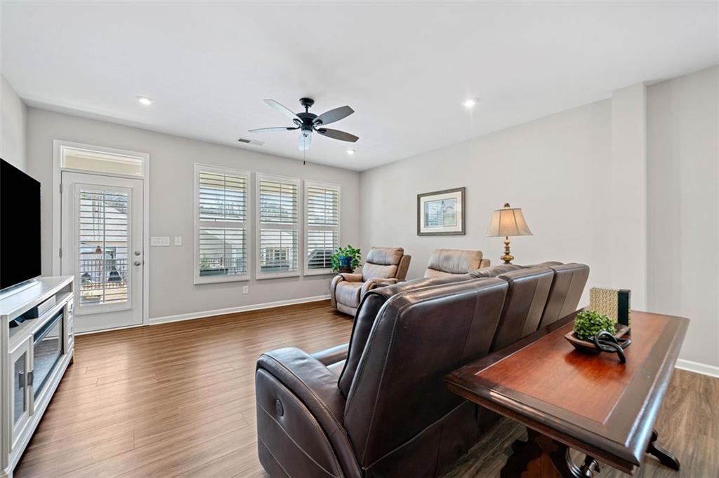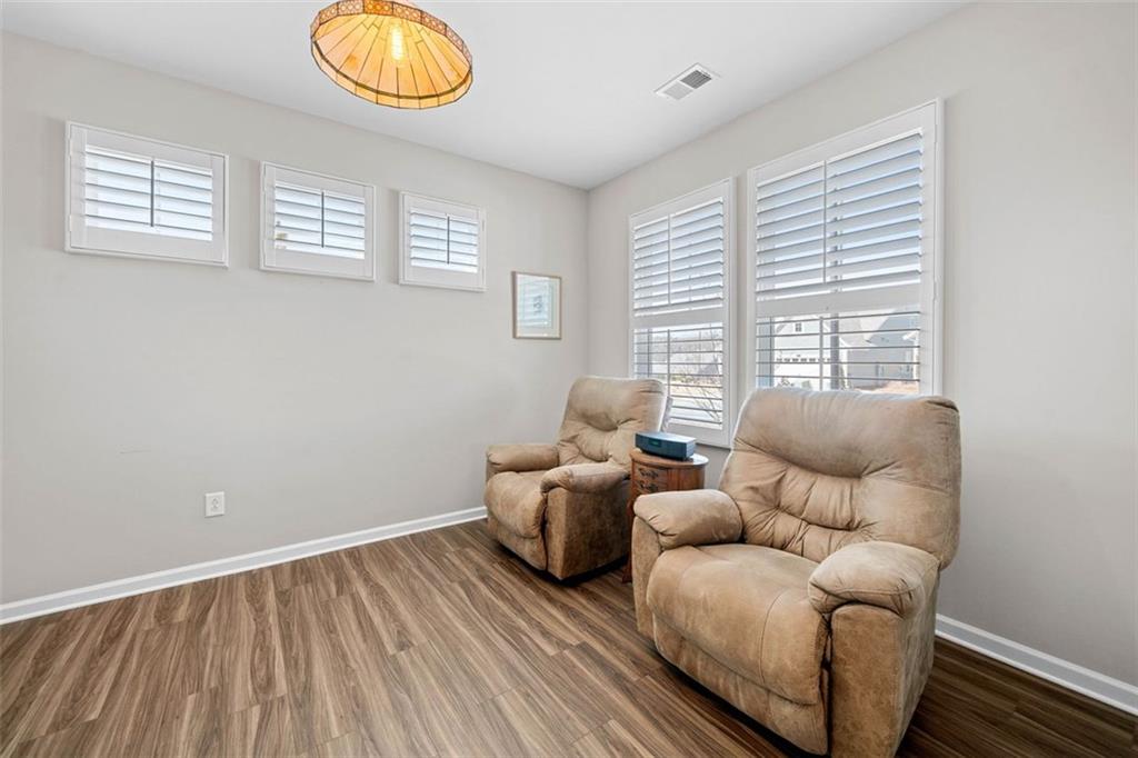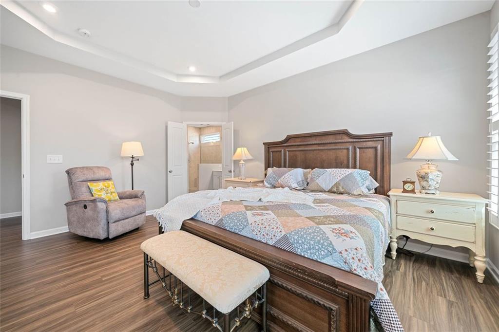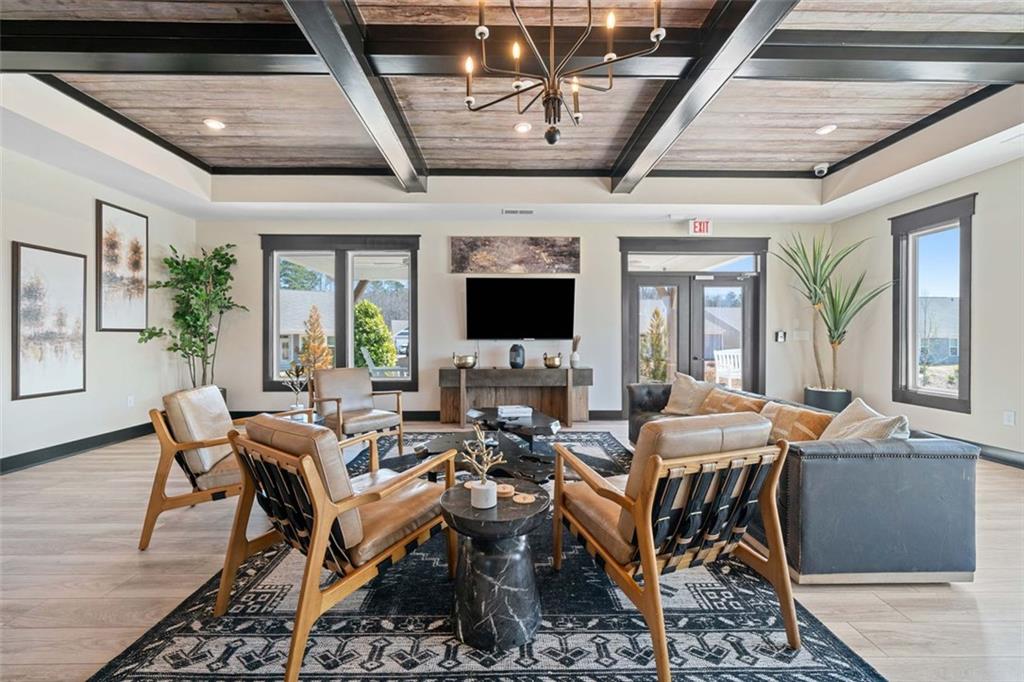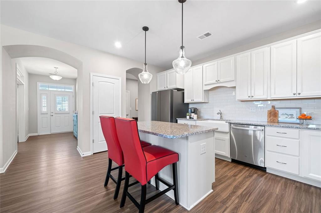 Motivated Seller!!! Exceptional, upgraded residence situated in the sought-after 55+ active adult community of Poplar Place. This stunning ranch-style home features an open concept design, luxury vinyl flooring, plantation shutters throughout, designer lighting, and a prime location within the neighborhood. The centrally positioned kitchen serves as the heart of the home, seamlessly connecting to the dining area, great room, and patio, making it perfect for daily living and entertaining. The gourmet kitchen is equipped with high-end dove-tailed soft close cabinets, granite countertops, under-cabinet lighting, a custom stainless steel vent hood, premium stainless appliances, and a spacious island. The private covered patio, accessible from the family room, overlooks the backyard and provides convenient access to the clubhouse amenities. The main floor hosts the owner's suite, which offers privacy and features a wall of windows with easy access to the laundry room and master bath. The spa-like owner's bathroom includes a large custom shower with floor-to-ceiling tile, a frameless shower door, a transom window for natural light, double sinks and complemented by a generous walk-in closet. Additionally, the main floor includes an office space with barn doors, which could serve as an extra TV room or a third bedroom. A guest room with a fully finished bath rounds out the main level. This charming, gated community boasts a nature trail, pickleball and bocce ball courts, a fitness center, sidewalks, streetlights, and a clubhouse with an outdoor terrace. It is conveniently located near shopping, dining, parks, medical facilities, and entertainment options. Poplar Place is also close to popular attractions such as Metromont Shopping Center, year-round swimming at the West Cobb Aquatic Center, and just minutes from the delightful downtown Dallas.