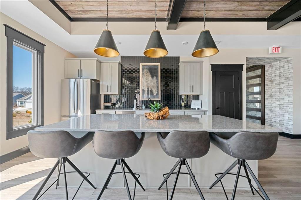 - KitchenBreakfast Bar, Cabinets White, Solid Surface Counters