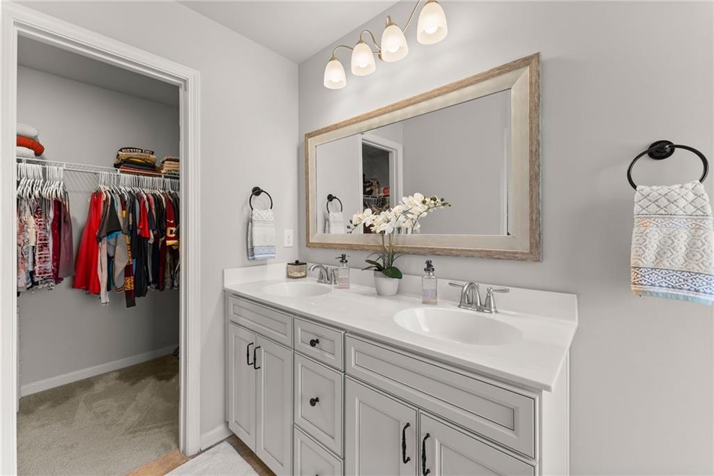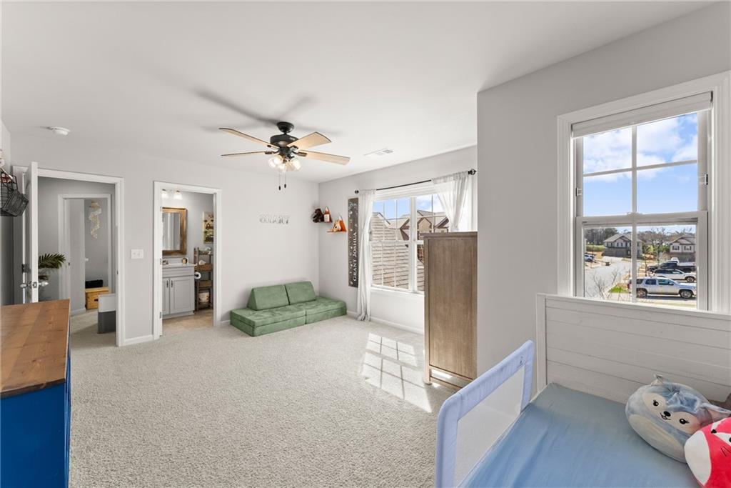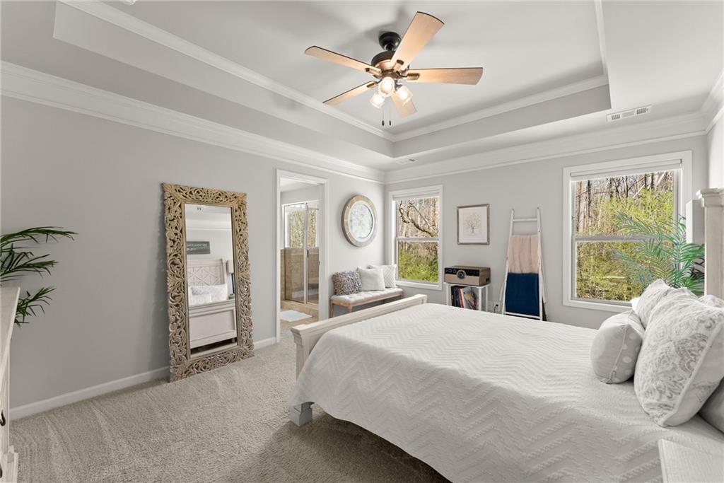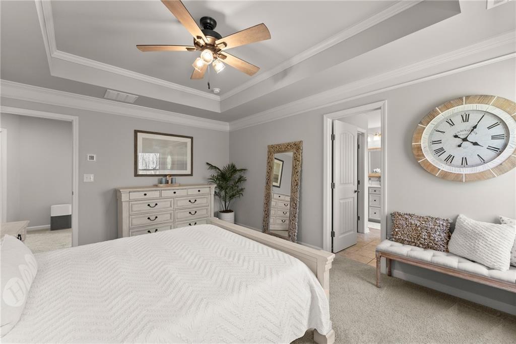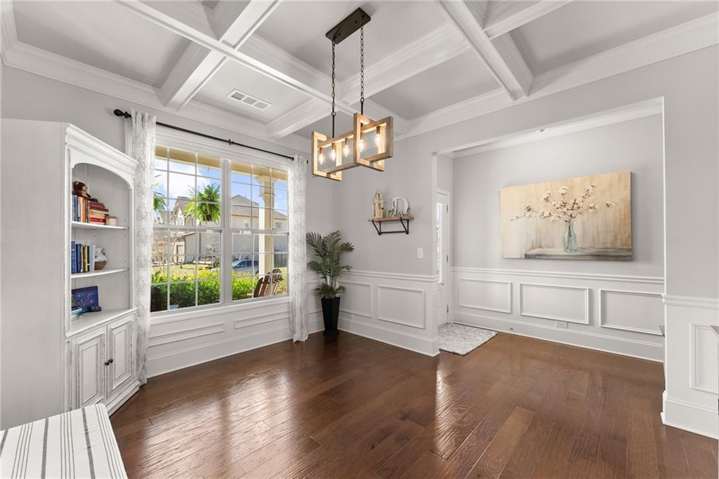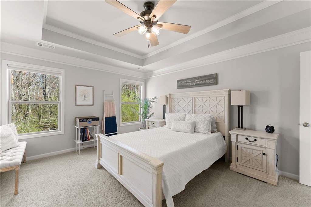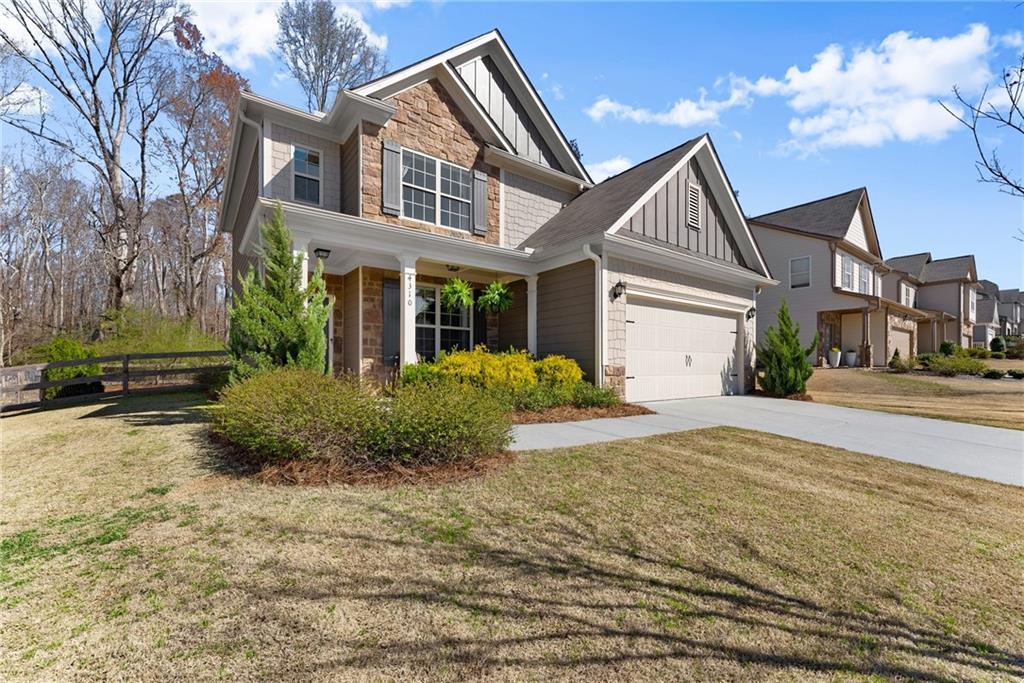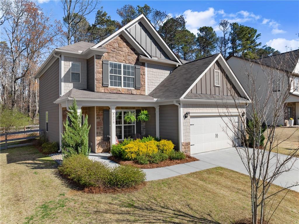 Welcome to this charming 4-bedroom, 3.5-bathroom home in the desirable Tallant Farms community of Cumming, GA. Enjoy access to a sparkling pool and playground, perfect for family fun. Exit out of your 2- car garage and get to GA Hwy 400, Coal Mountain Park, new upcoming Coal Mountain Town Center, Dawsonville, Cumming shopping, groceries, and restaurants all within minutes. As you enter, you'll find a dining room with coffered ceilings that flows seamlessly into the open-concept living and kitchen areas. The cozy living room features a gas fireplace, creating a warm and inviting atmosphere. The kitchen boasts upgraded cabinetry, stainless steel appliances, granite countertops, a large island, and a spacious breakfast area. A quaint half bath for your guests and the spacious laundry room also reside on the main level. Upstairs, the primary suite serves as a peaceful retreat, bathed in natural light. The en-suite bathroom includes a double vanity, a luxurious soaking tub, a separate shower, and a generously sized walk-in closet, creating the perfect space to unwind. Three additional bedrooms are also located upstairs, with one offering an oversized layout and an en-suite bathroom—ideal for use as a playroom or entertainment space. Step outside to your private back patio, which backs up to serene greenspace with a fenced backyard—an ideal spot for morning coffee or hosting a BBQ with friends and family. The home is protected by a termite bond with Peachtree Pest Control. This charming home is ready to welcome you. Schedule your showing today!