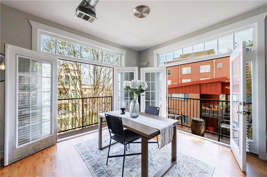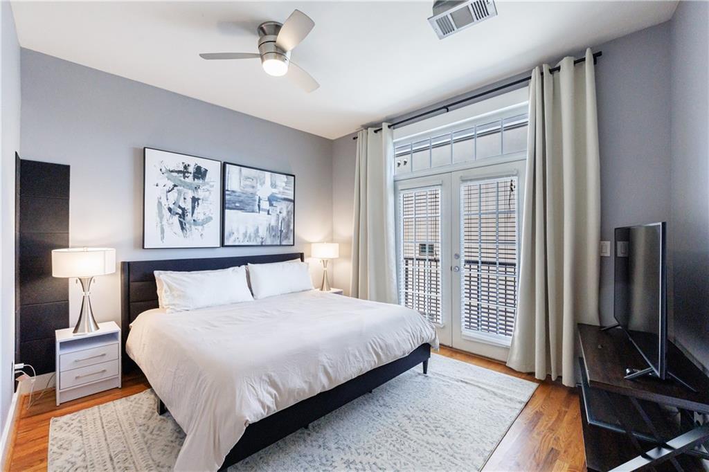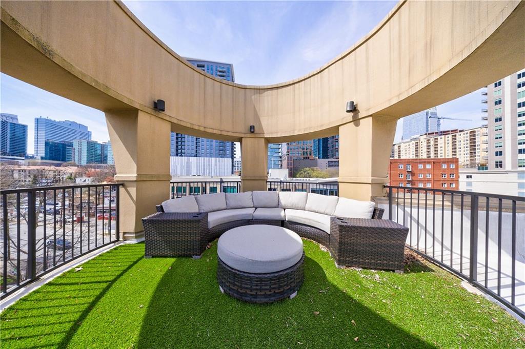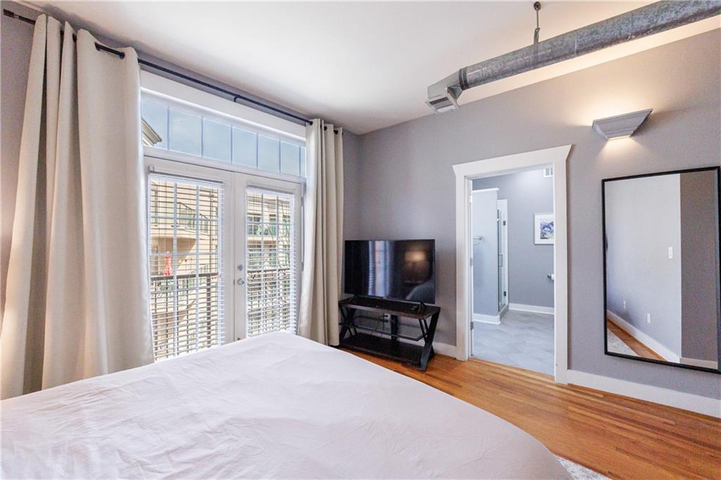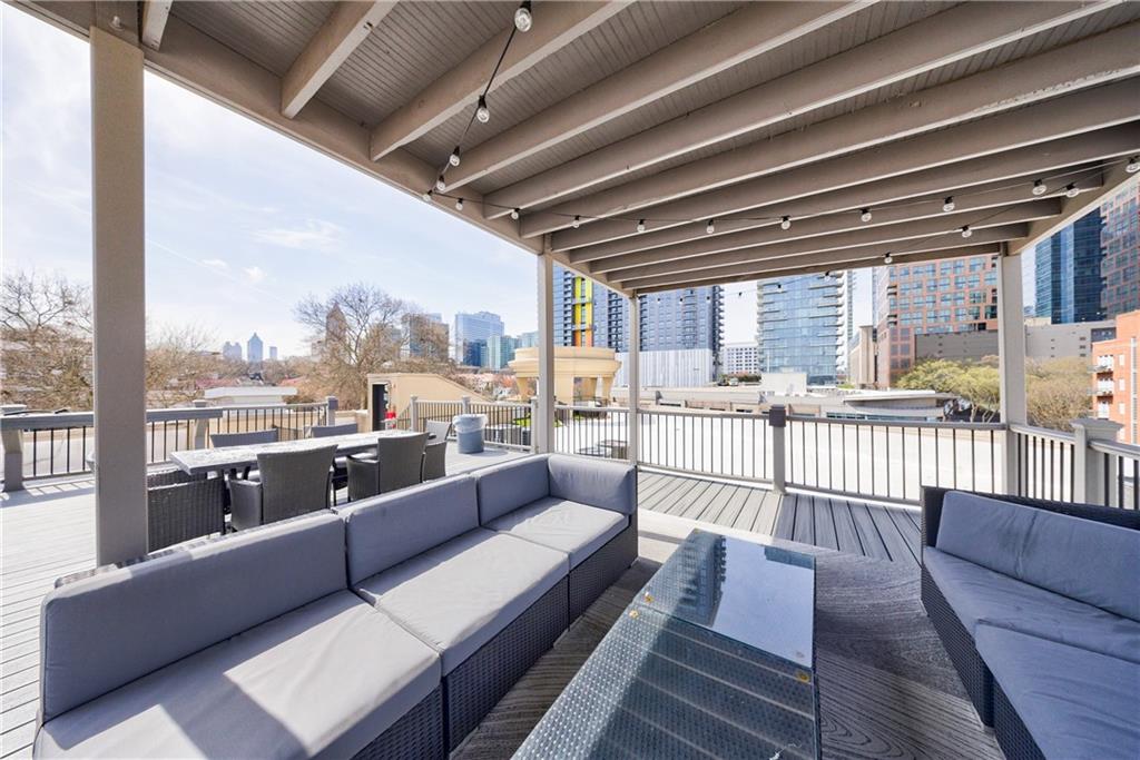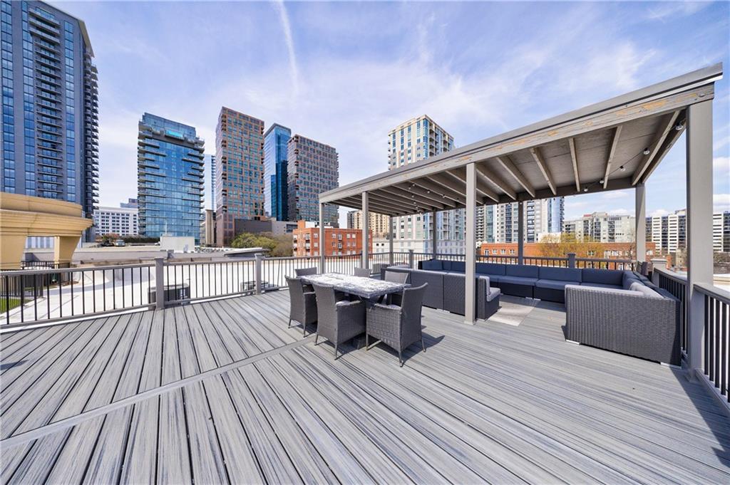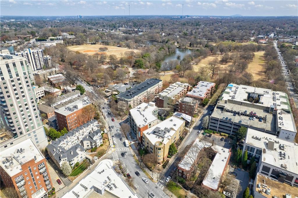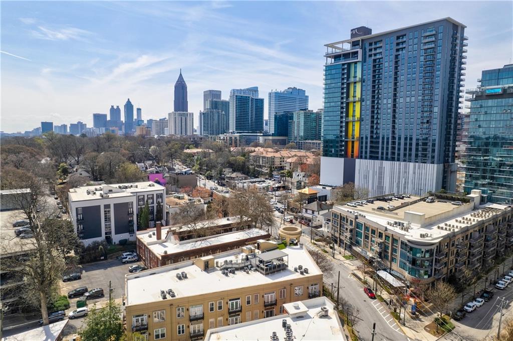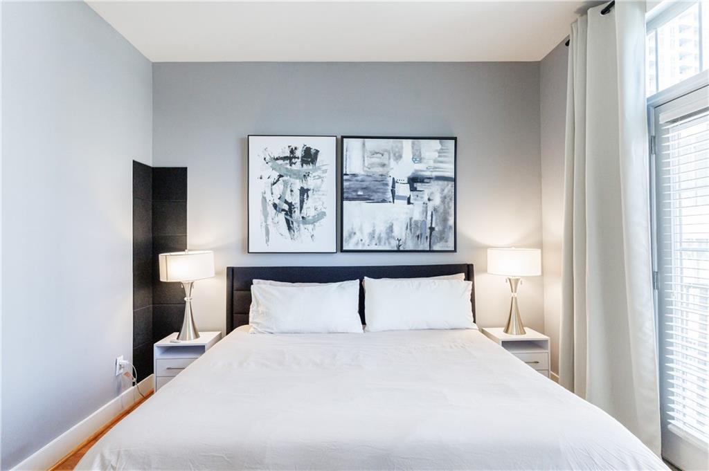 Live at the best location in Midtown! This back corner residence represents the best-of-the-best in one of Midtown’s most desirable boutique buildings, adjacent to Piedmont Park, the Beltline and all that Midtown has to offer. One of the largest and most desirable plans in the building, this open-style floor plan has it all. Wraparound windows and glass French doors invite beautiful natural light throughout. Light-flooded interiors are complemented by soaring 10’+ ceilings, custom trim work, exposed duct work, wood floors and upgraded moldings. A sleek gourmet kitchen serves as the heart of this loft, delighting even the most avid chef or entertainer with a massive center island, stainless steel appliances, and plenty of storage. Relax and unwind in the quiet Owner’s Suite, ensuite bath featuring a glassed walk-in shower, and a walk-in closet with custom cabinetry and massive storage. The second bedroom/den can be used as a guest suite, workout studio or an office/den. The full guest bath is newly remodeled. This building has the ideal location in the heart of Midtown (11th and Piedmont), just moments to Piedmont Park and within easy reach of the best shopping, dining, and entertainment in Midtown, The Beltline and all Colony Square have to offer. This home also features a large parking spot and storage in secured covered parking. Amenities include a wonderful rooftop covered deck with stunning Midtown views. Strong HOA reserves.