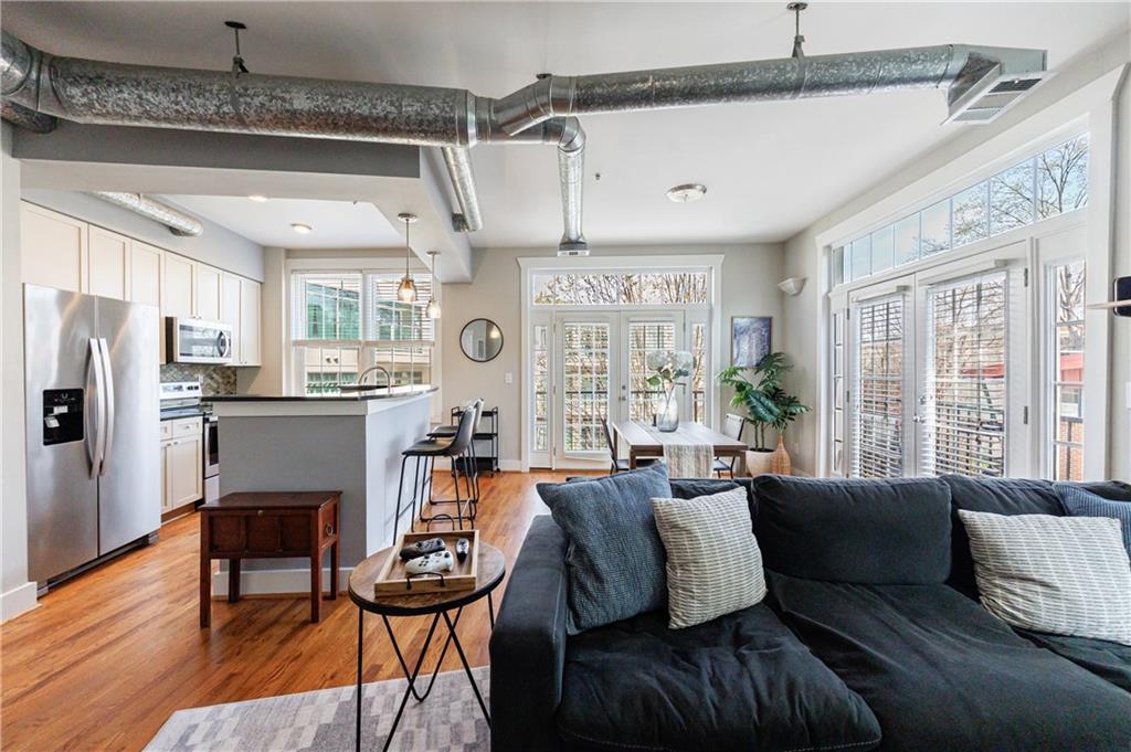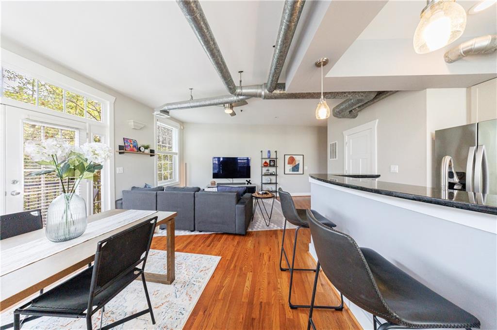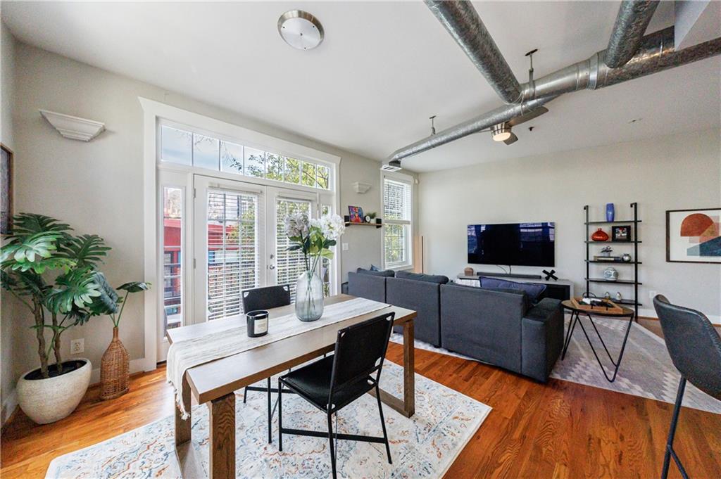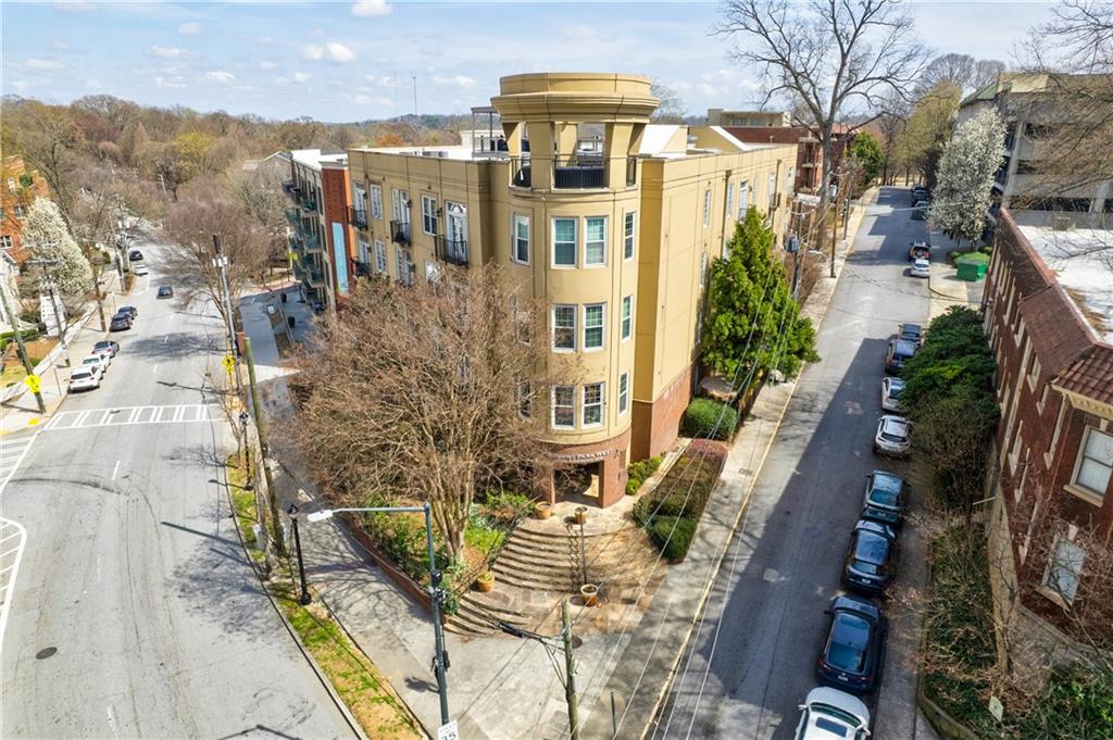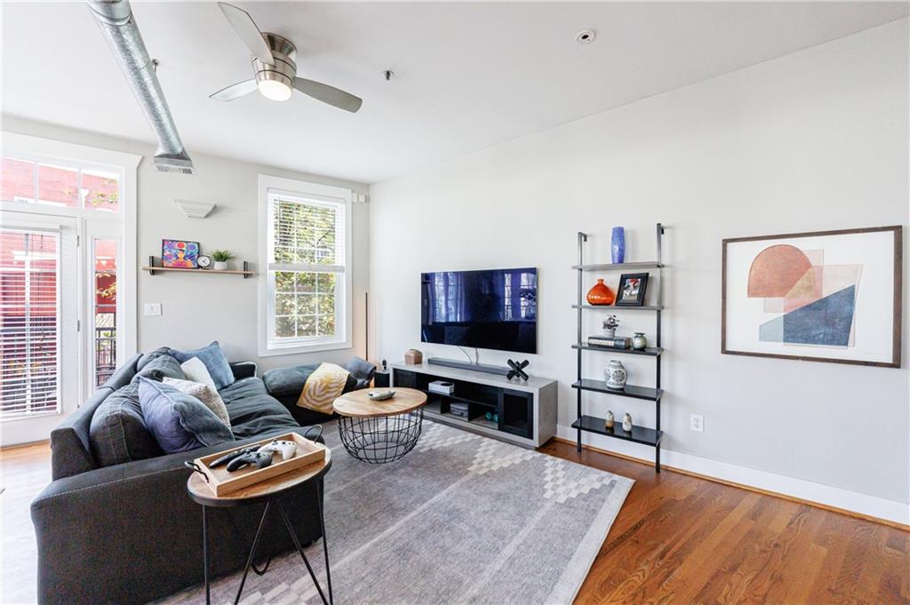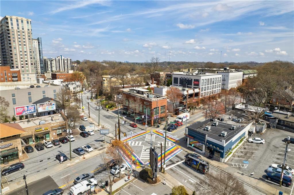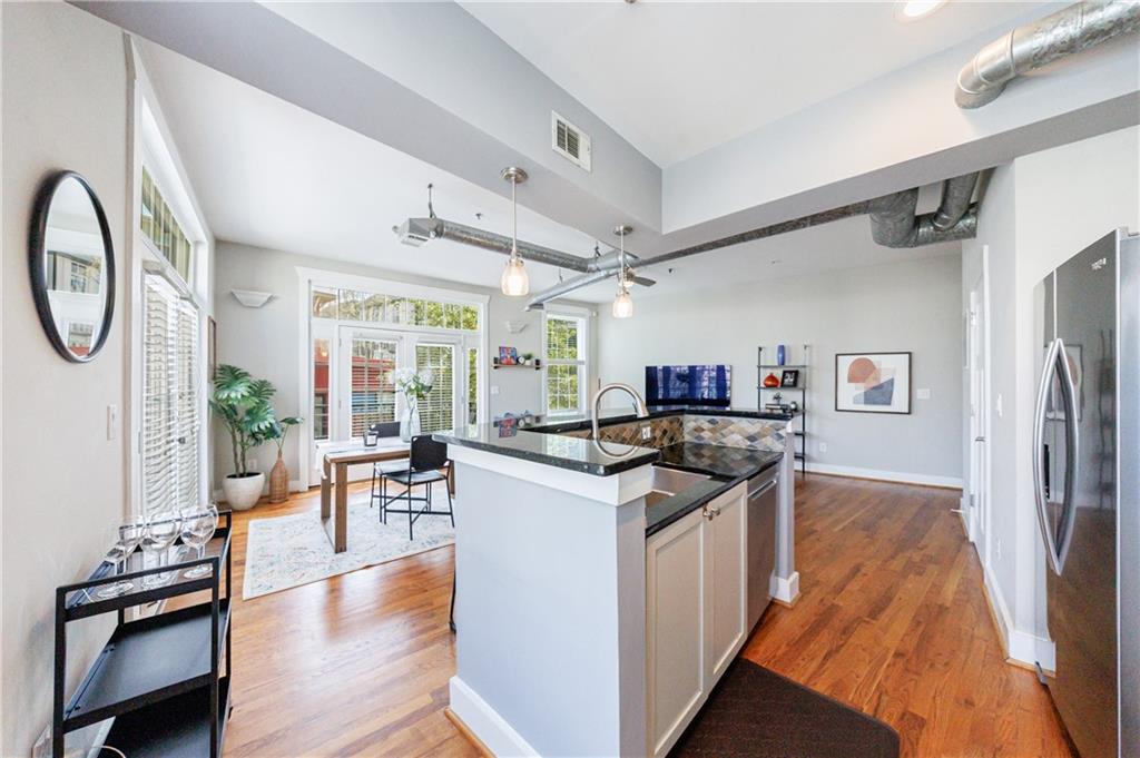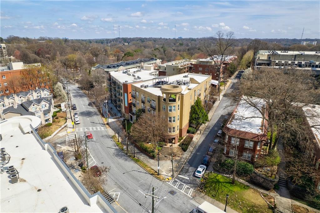 Live at the best location in Midtown! This back corner residence represents the best-of-the-best in one of Midtown’s most desirable boutique buildings, adjacent to Piedmont Park, the Beltline and all that Midtown has to offer. One of the largest and most desirable plans in the building, this open-style floor plan has it all. Wraparound windows and glass French doors invite beautiful natural light throughout. Light-flooded interiors are complemented by soaring 10’+ ceilings, custom trim work, exposed duct work, wood floors and upgraded moldings. A sleek gourmet kitchen serves as the heart of this loft, delighting even the most avid chef or entertainer with a massive center island, stainless steel appliances, and plenty of storage. Relax and unwind in the quiet Owner’s Suite, ensuite bath featuring a glassed walk-in shower, and a walk-in closet with custom cabinetry and massive storage. The second bedroom/den can be used as a guest suite, workout studio or an office/den. The full guest bath is newly remodeled. This building has the ideal location in the heart of Midtown (11th and Piedmont), just moments to Piedmont Park and within easy reach of the best shopping, dining, and entertainment in Midtown, The Beltline and all Colony Square have to offer. This home also features a large parking spot and storage in secured covered parking. Amenities include a wonderful rooftop covered deck with stunning Midtown views. Strong HOA reserves.