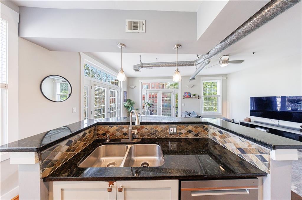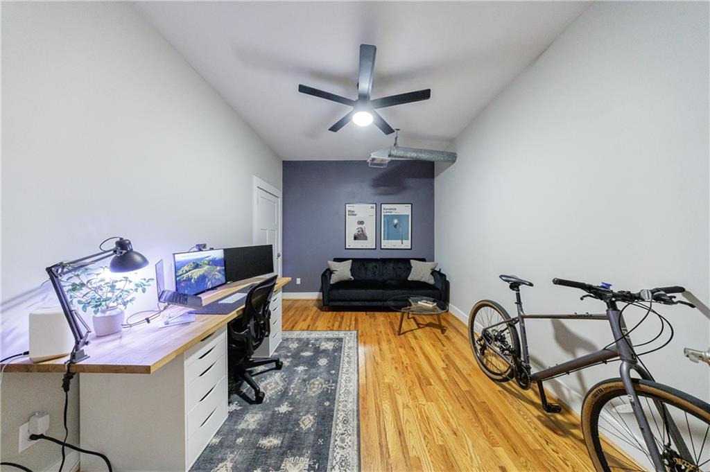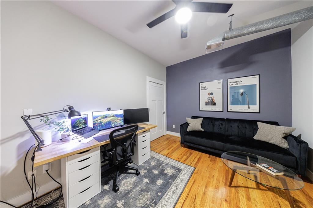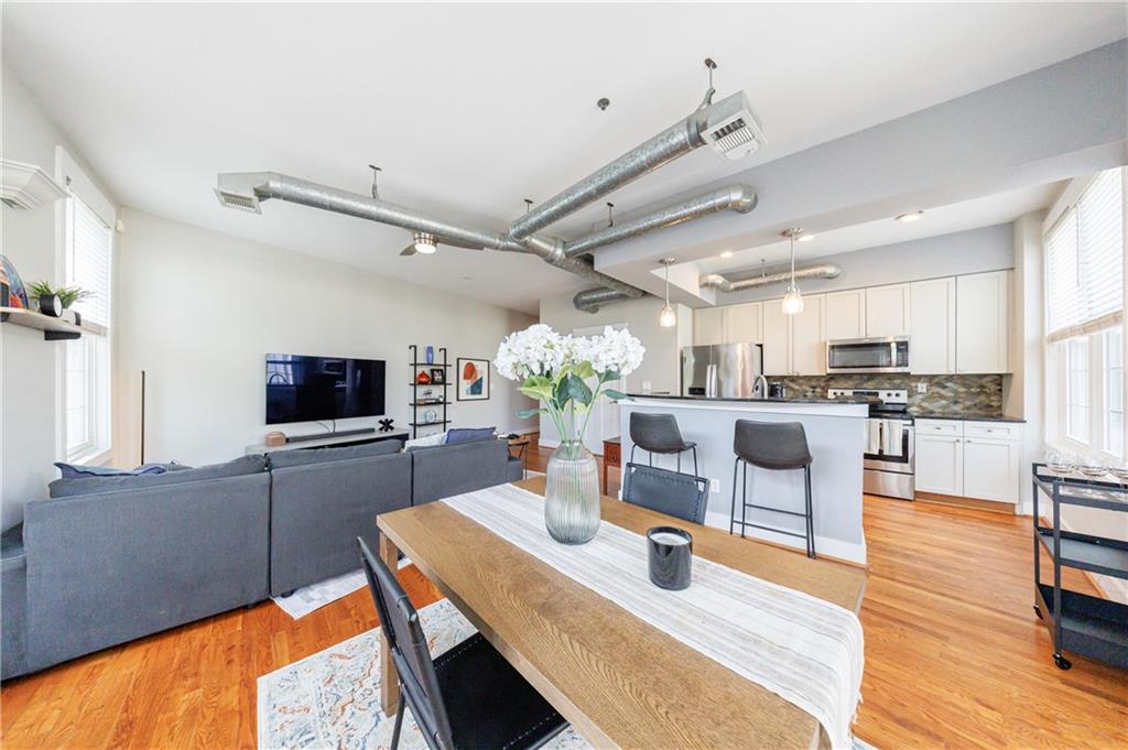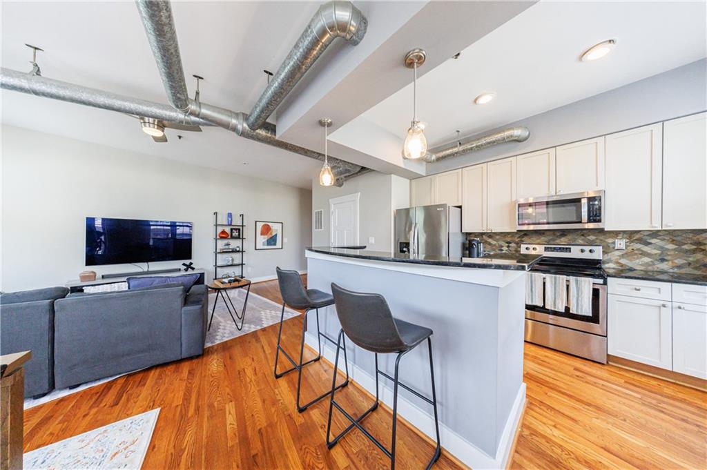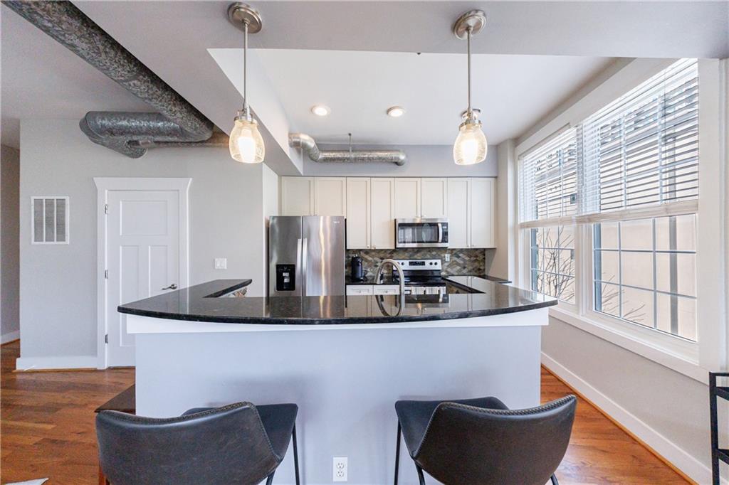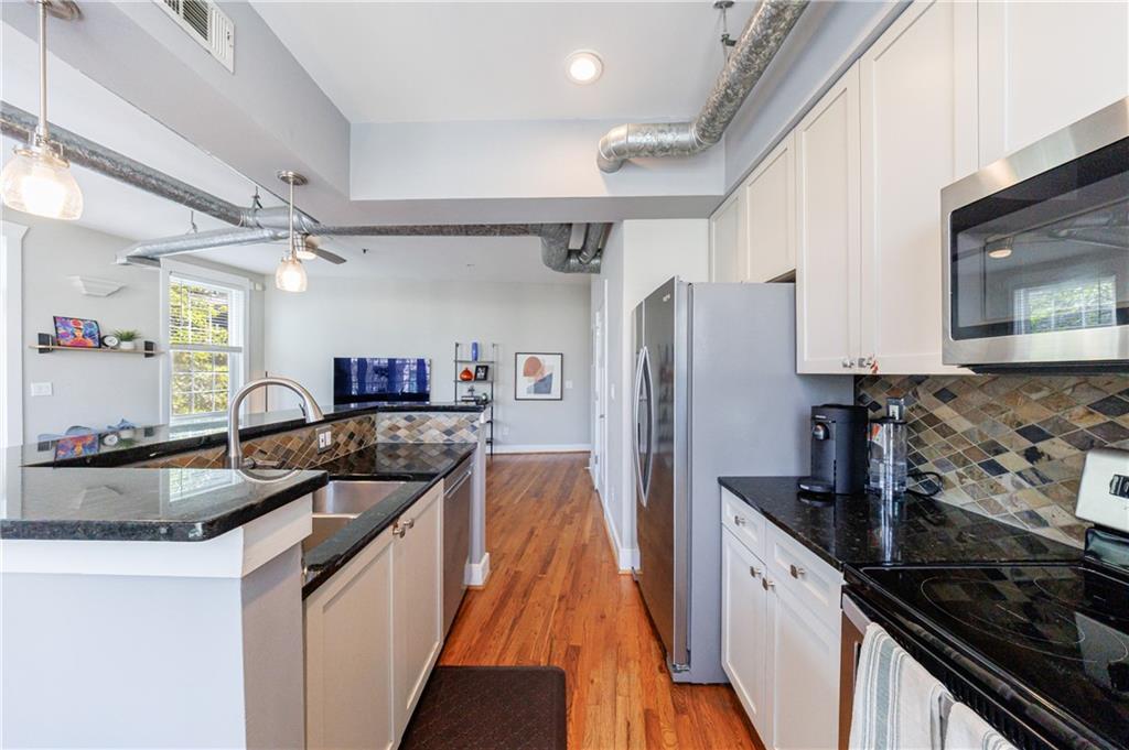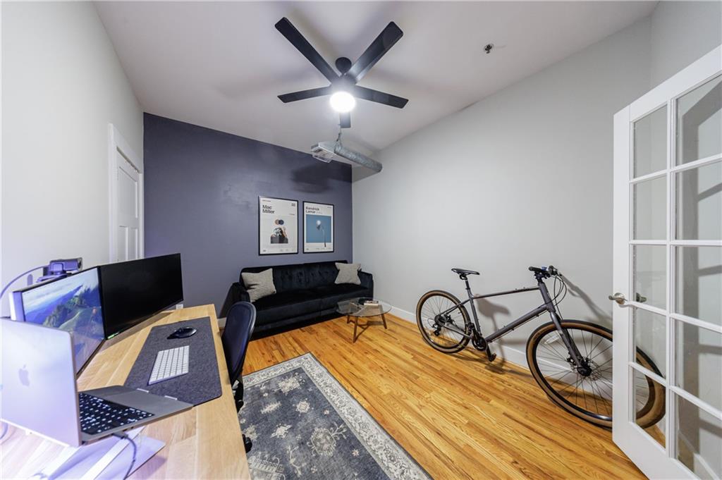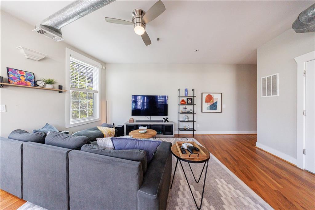Live at the best location in Midtown! This back corner residence represents the best-of-the-best in one of Midtown’s most desirable boutique buildings, adjacent to Piedmont Park, the Beltline and all that Midtown has to offer. One of the largest and most desirable plans in the building, this open-style floor plan has it all. Wraparound windows and glass French doors invite beautiful natural light throughout. Light-flooded interiors are complemented by soaring 10’+ ceilings, custom trim work, exposed duct work, wood floors and upgraded moldings. A sleek gourmet kitchen serves as the heart of this loft, delighting even the most avid chef or entertainer with a massive center island, stainless steel appliances, and plenty of storage. Relax and unwind in the quiet Owner’s Suite, ensuite bath featuring a glassed walk-in shower, and a walk-in closet with custom cabinetry and massive storage. The second bedroom/den can be used as a guest suite, workout studio or an office/den. The full guest bath is newly remodeled. This building has the ideal location in the heart of Midtown (11th and Piedmont), just moments to Piedmont Park and within easy reach of the best shopping, dining, and entertainment in Midtown, The Beltline and all Colony Square have to offer. This home also features a large parking spot and storage in secured covered parking. Amenities include a wonderful rooftop covered deck with stunning Midtown views. Strong HOA reserves.