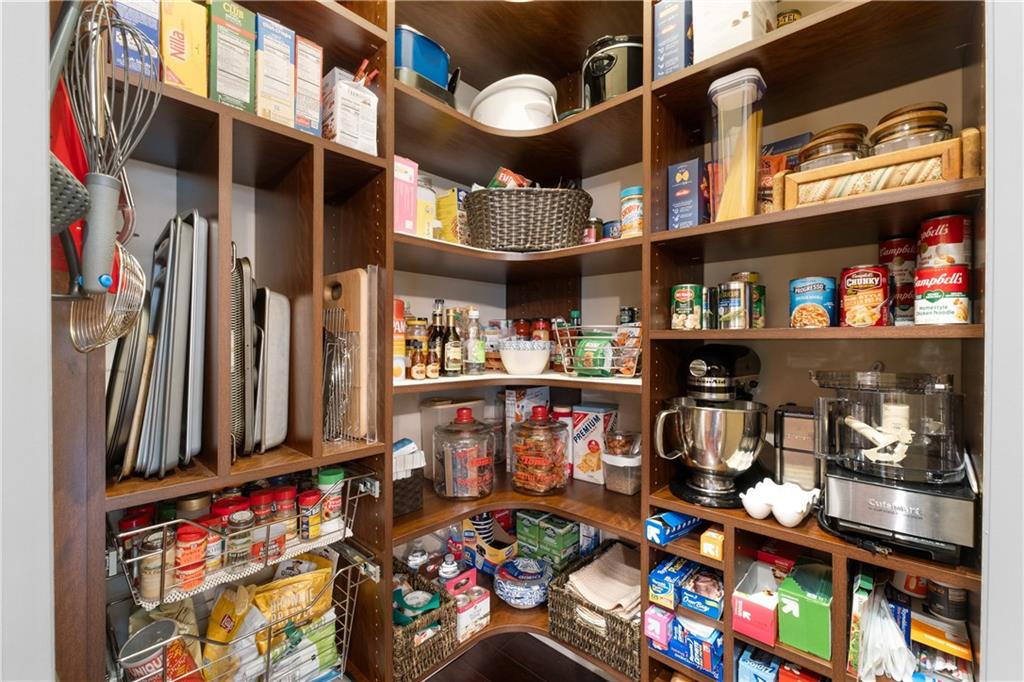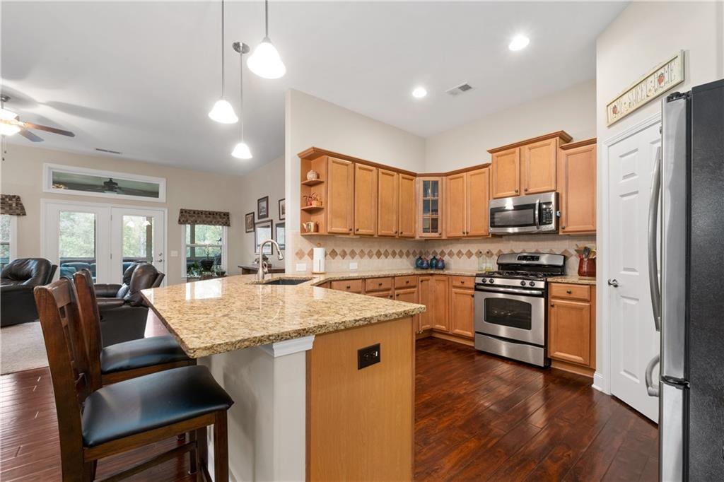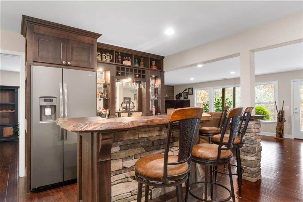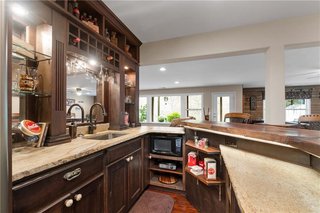- KitchenBreakfast Bar, Cabinets Stain, Pantry, Second Kitchen, Stone Counters, View to Family Room