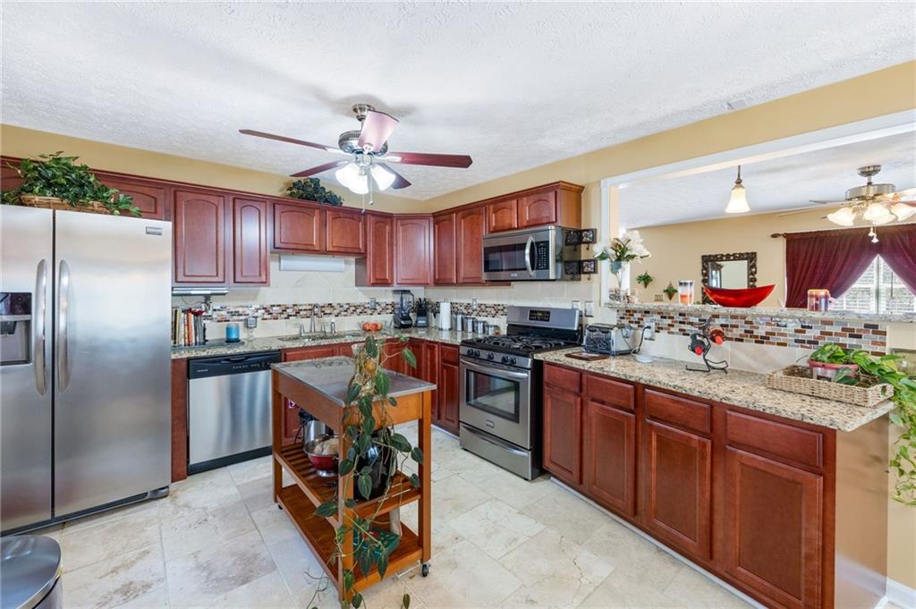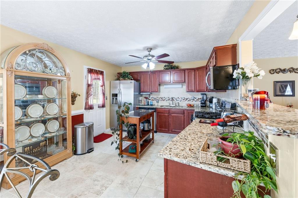 - KitchenBreakfast Bar, Eat-in Kitchen, Pantry, Stone Counters, View to Family Room