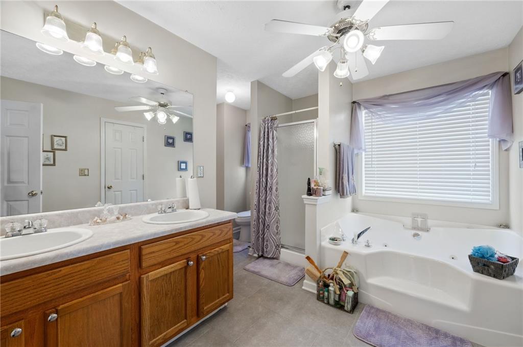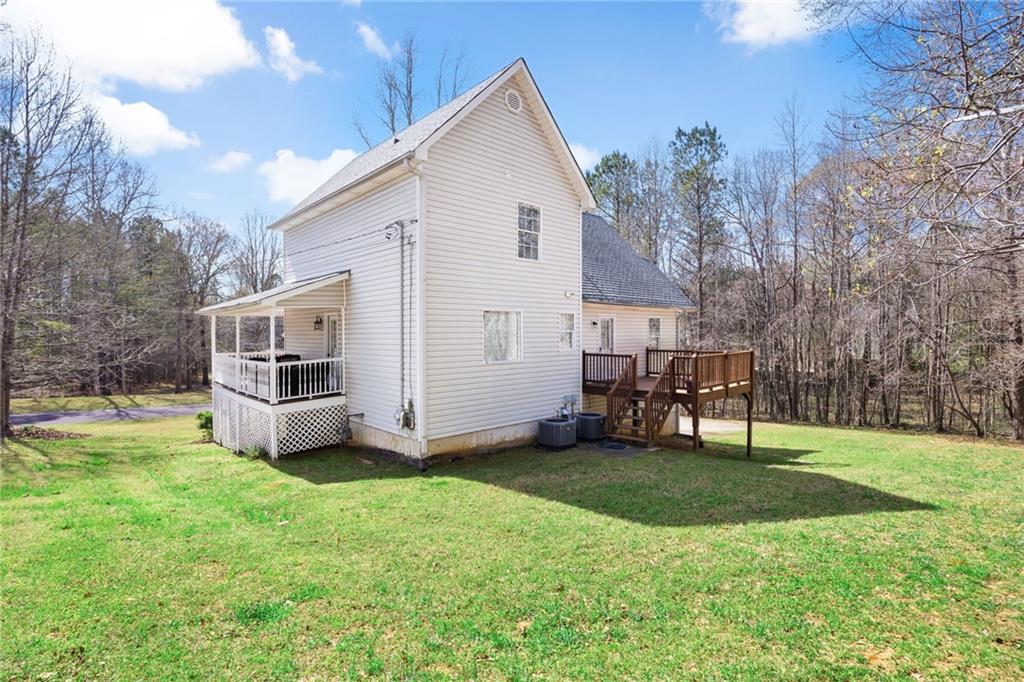 This spacious 4-bedroom, 2.5-bath home, set on nearly an acre lot, offers the perfect blend of comfort and elegance. Enjoy serene mornings with a cup of coffee while watching the birds sing through the windows or gather at the stylish bar counter with stunning granite countertops and travertine tile kitchen floors. All stainless-steel appliances will remain, making this a true move-in-ready home. The living area features a cozy brick fireplace, ideal for colder evenings. There is no need for carpet cleaning, as the home features beautiful hardwood flooring throughout. The luxurious master suite includes a jetted tub, double vanity, separate shower, and a large walk-in closet. Upstairs, you'll find three additional bedrooms and an optional media or bonus room, perfect for movie nights or extra space for your needs. The upstairs also includes convenient laundry facilities. Summer days will be filled with joy, whether you're relaxing on the spacious wraparound porch or hosting family and friends on the rear deck. NO HOA! This home truly offers a perfect retreat for all seasons!