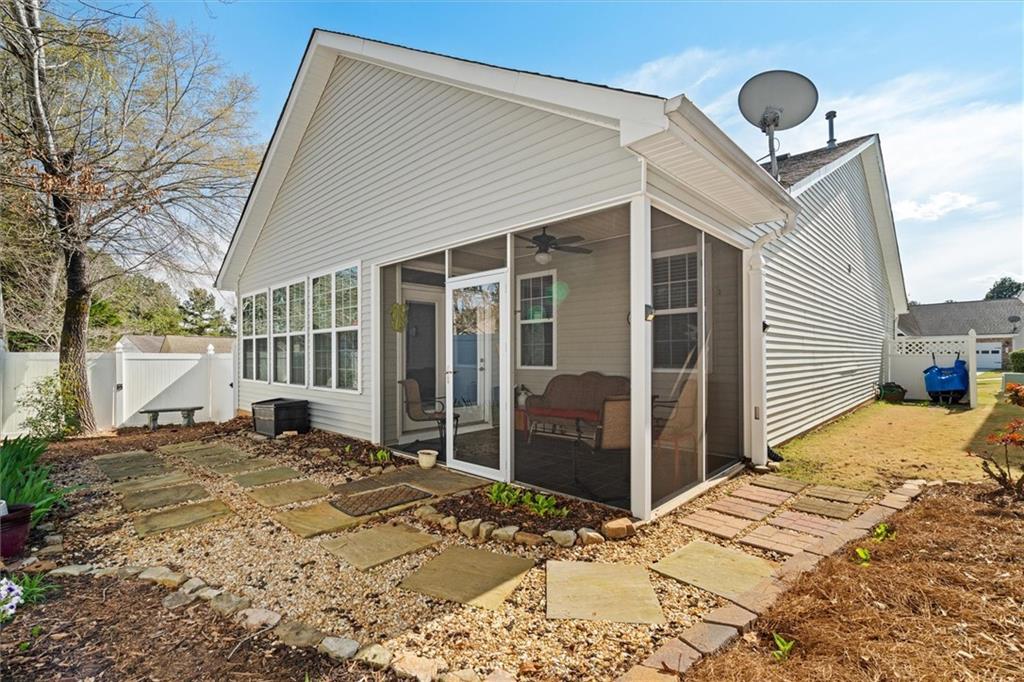 Welcome to this beautifully designed home located in the highly desirable Mirror Lake 55+ Active Adult Community. Where luxury, convenience, and a vibrant lifestyle come together! Step inside to a welcoming foyer with open floor plan that is filled with natural light, creating a warm and inviting atmosphere. This home features two bedrooms and two bathrooms, and a FLEX space for a Den or Home Office. Moving toward the heart of the home, you'll find an open-concept living space, a gourmet island kitchen with beautiful granite counter tops, and stainless steel appliances, dining area, sitting area, and a spacious family room. The primary suite is a true retreat, a large walk-in closet, and an ensuite bathroom with a walk-in shower. Additional highlights include a nice size laundry room and a two-car garage. The living area opens onto a private screened in patio, perfect for relaxing, entertaining, or gardening. Living here you'll enjoy a low-maintenance lifestyle surrounded by nature. The outdoor spaces are a true highlight, offering both comfort and seclusion. A few added upgrades include a new HVAC system, new water heater, new dishwasher, new refrigerator, new flooring in sunroom and laundry room.